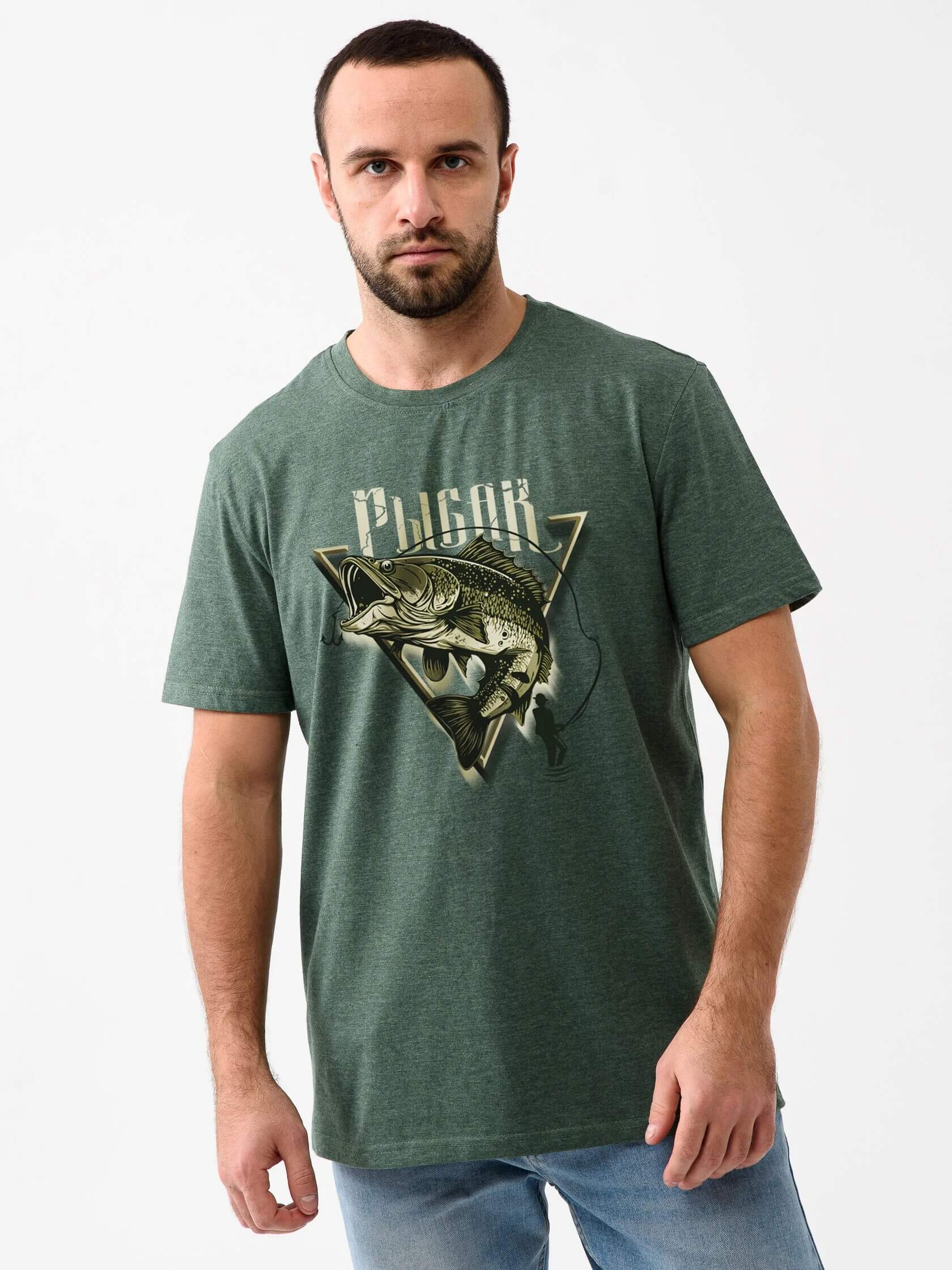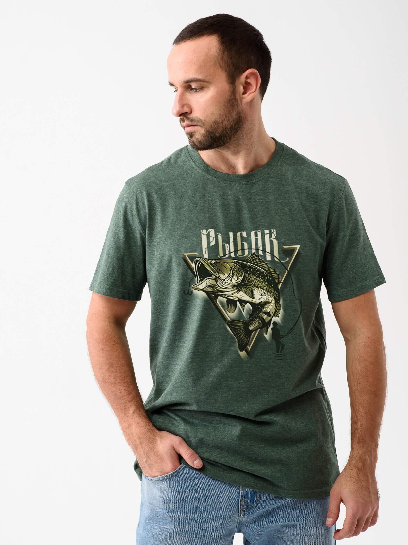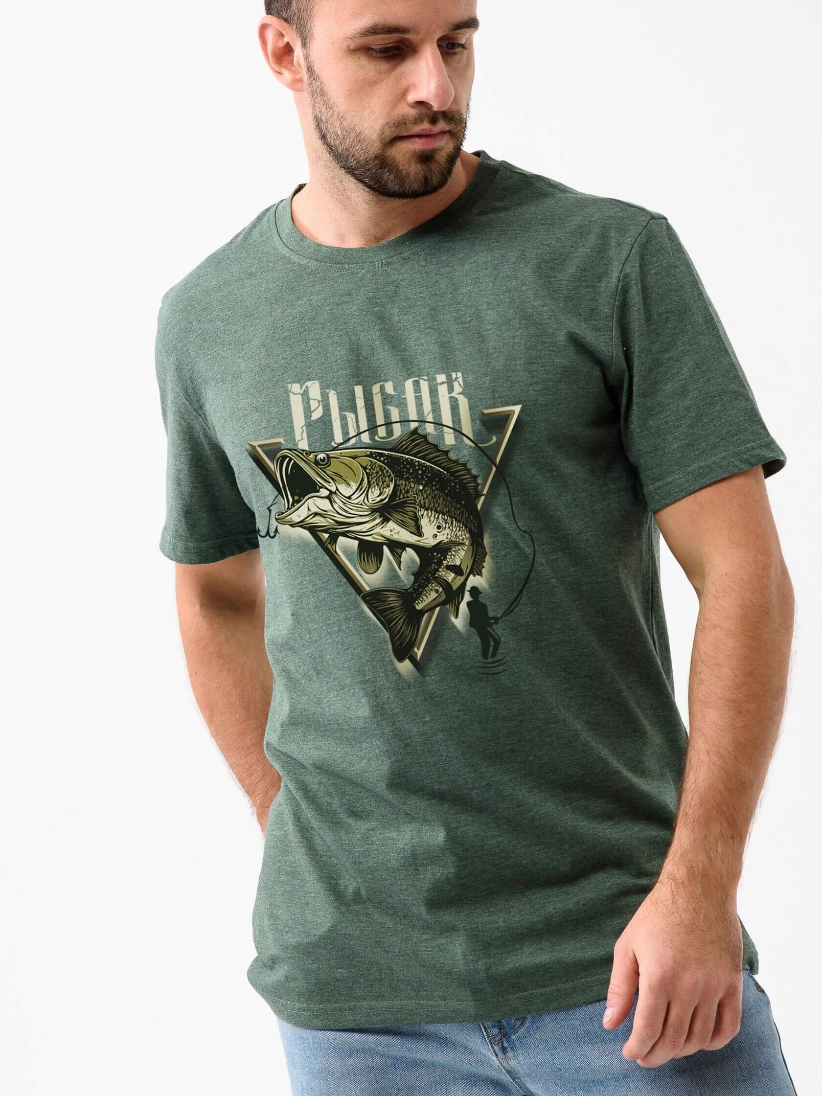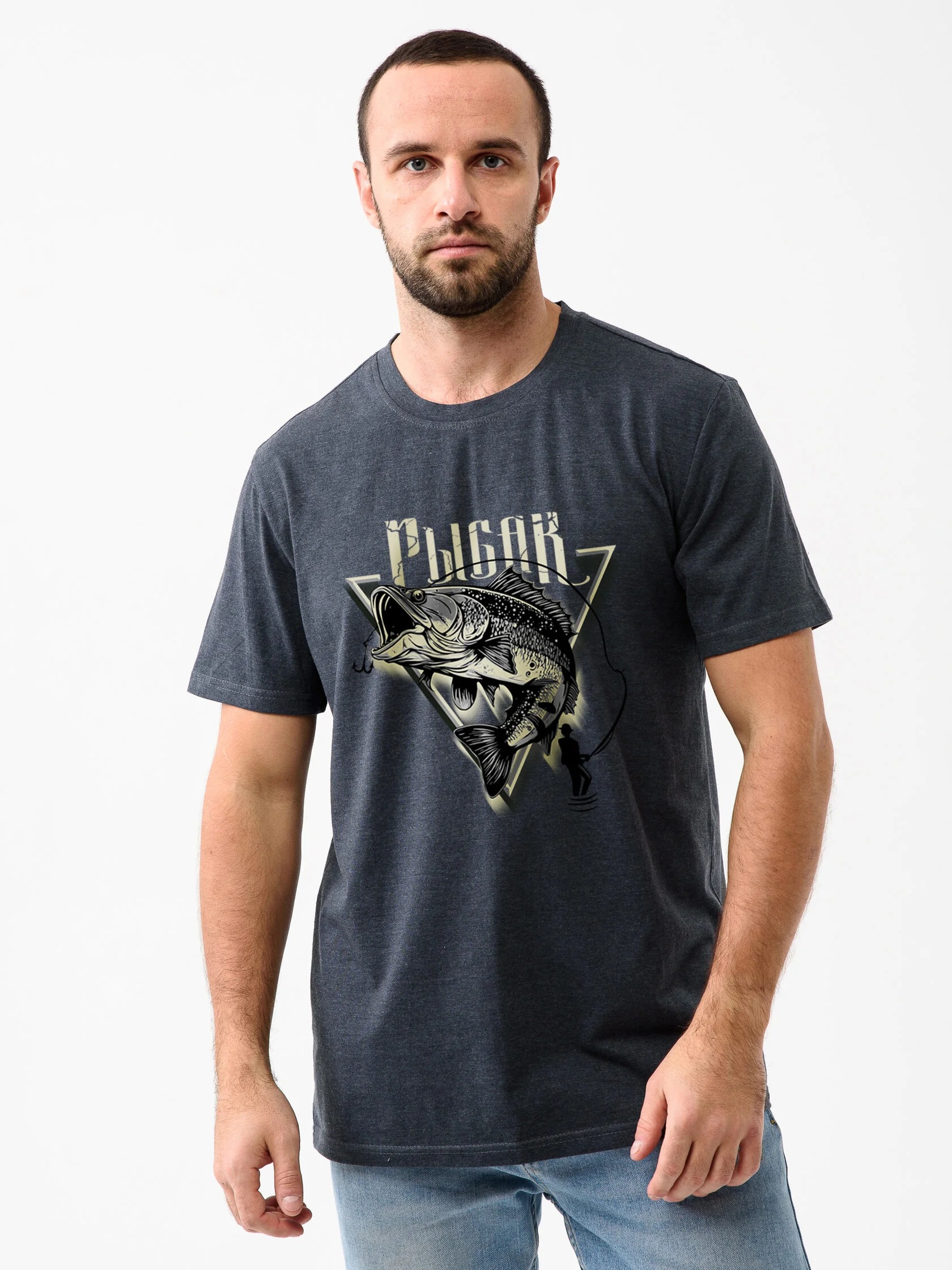 Мужская футболка "Рыбак" 2280-К / В ассортименте из кулирного хлопкового полотна. Мужская футболка с короткими рукавами, с надписью на груди.