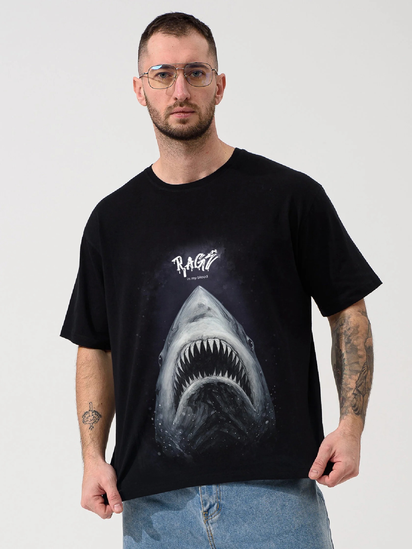 Мужская футболка "Акула" 2437-К / Черный из кулирного хлопкового полотна. Мужская футболка с короткими рукавами, с принтом на груди.