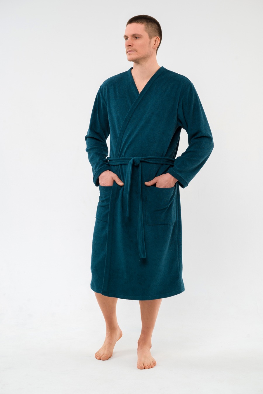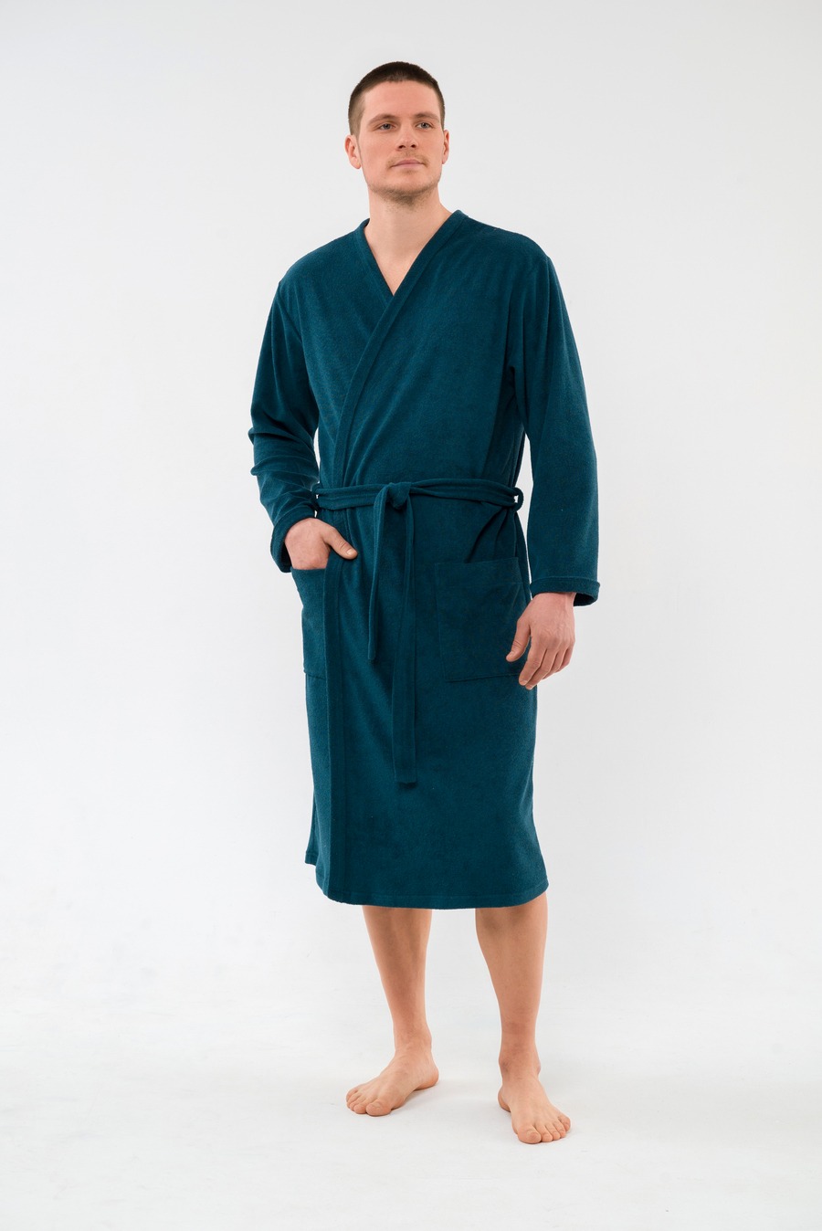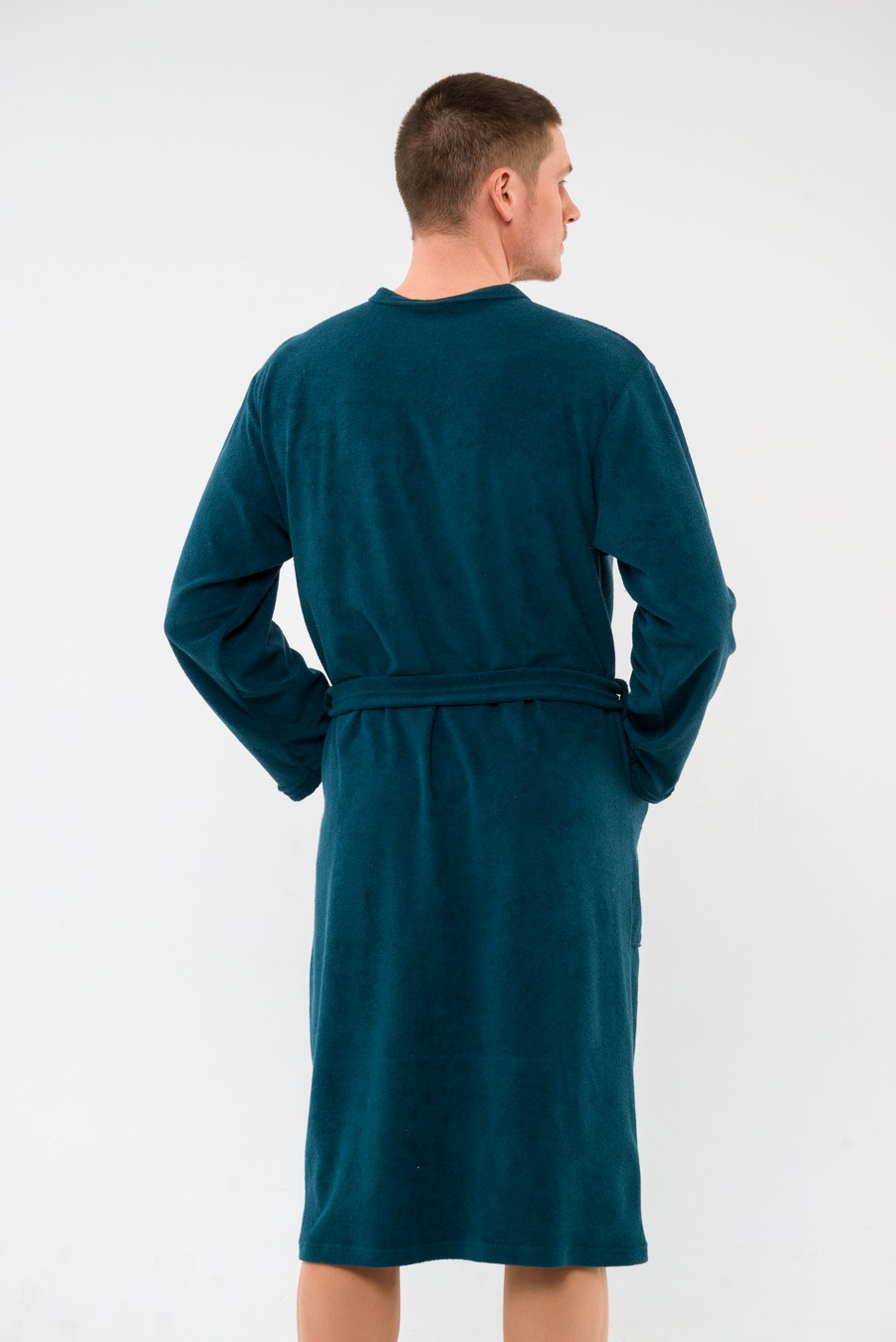 Халат мужской из махры Ренат изумруд на запах, с длинными рукавами.