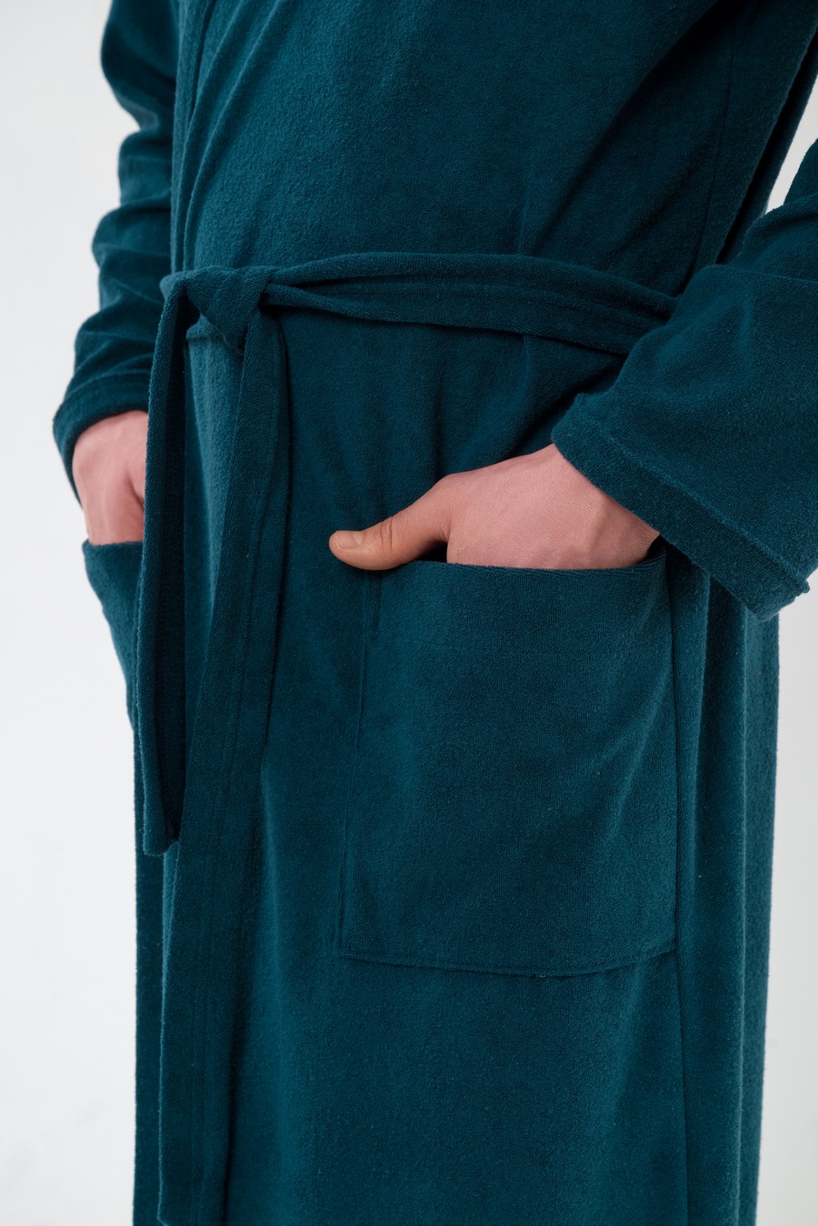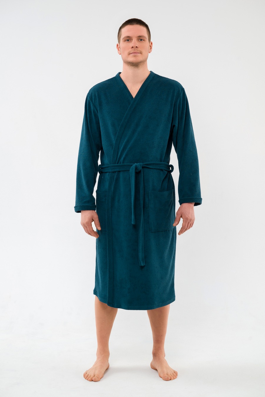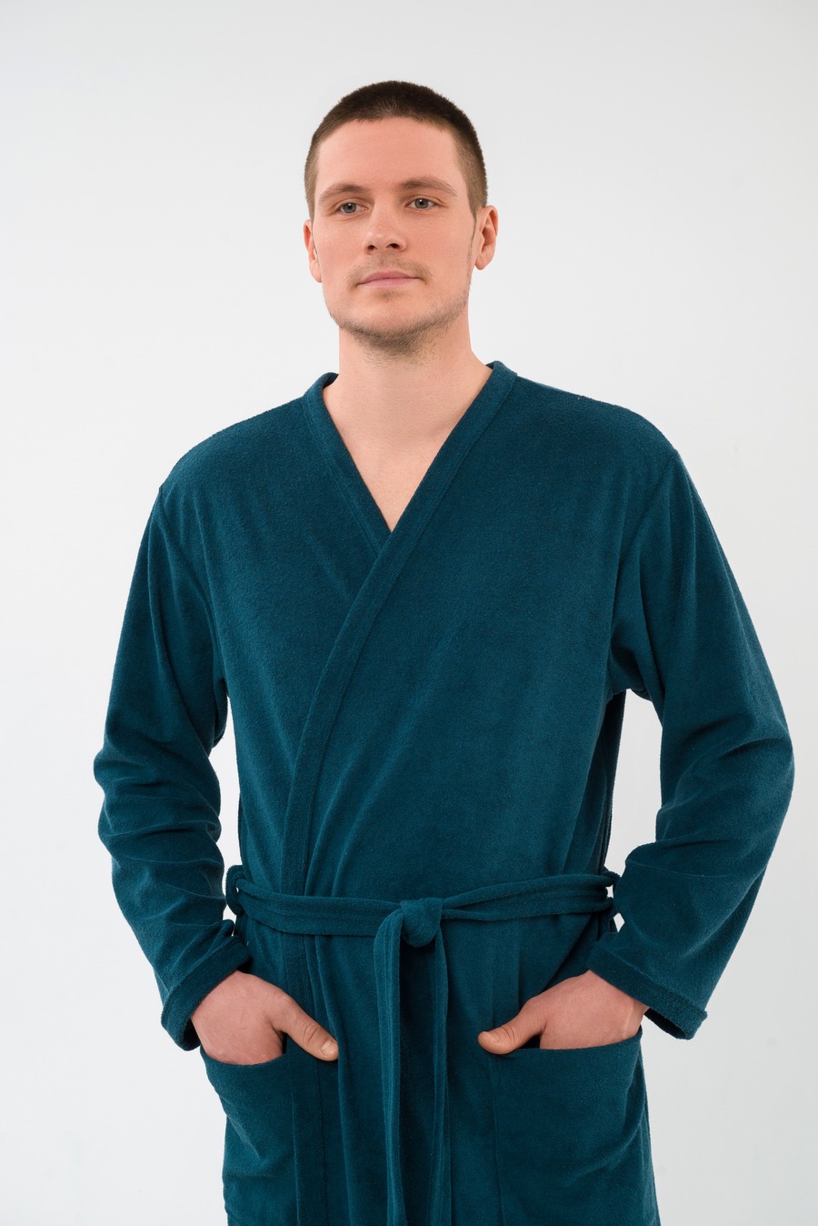 Халат мужской из махры Ренат изумруд на запах, с длинными рукавами.