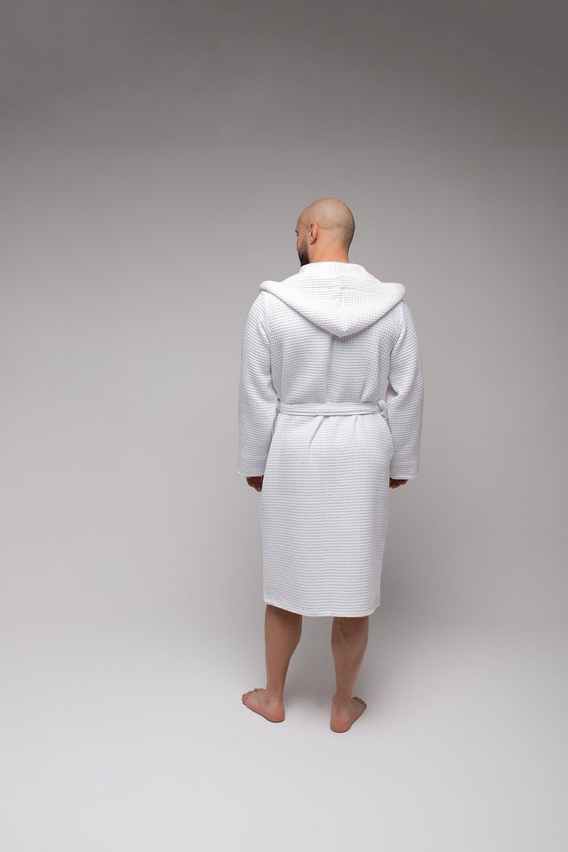 Халат достаточно легкий, а мелкие квадратики вафельной ткани создают воздушную подушку между халатом и кожей, за счет чего сохраняется комфортная температура тела, а после водных процедур кожа быстрее высыхает.