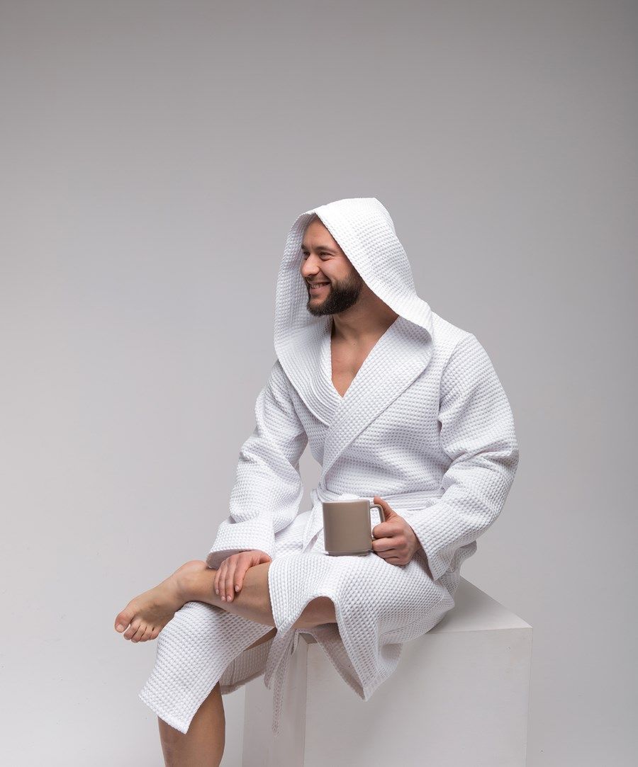 Вафельный халат также активно используется в гостиницах, в фитнес-центрах, салонах красоты, SPA. Это гигиенично, практично и выгодно: для стирки требуется меньше воды, чем для махровых, они быстрее сушатся, а ткань долго не изнашивается.