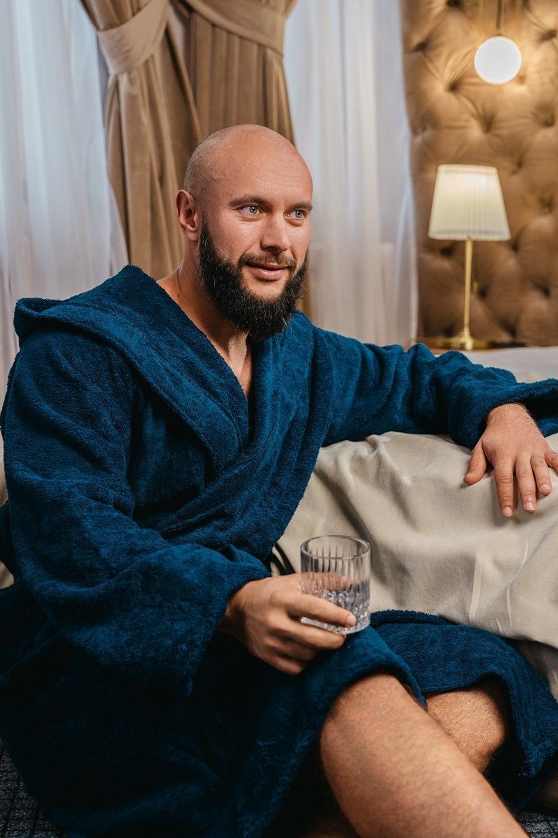 Стильный и удобный махровый халат для мужчин создан подарить максимум комфорта. Качественная махровая ткань выполнена из натурального хлопка в Узбекистане. Благодаря крою халата, он очень удобен, «сидит» свободно.