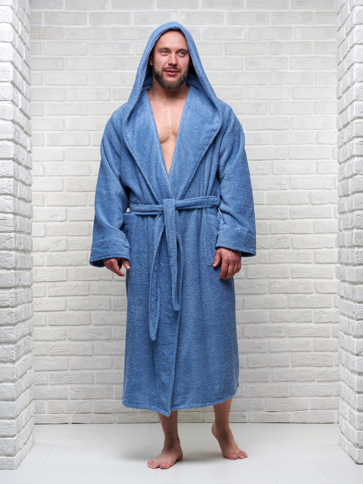 Махровая ткань из 100% хлопка идеально согревает и быстро высушивает кожу после водных процедур. Капюшон убережет шею и голову от сквозняков и резкой смене внешней температуры, особенно актуально при посещении бани в холодное время года.