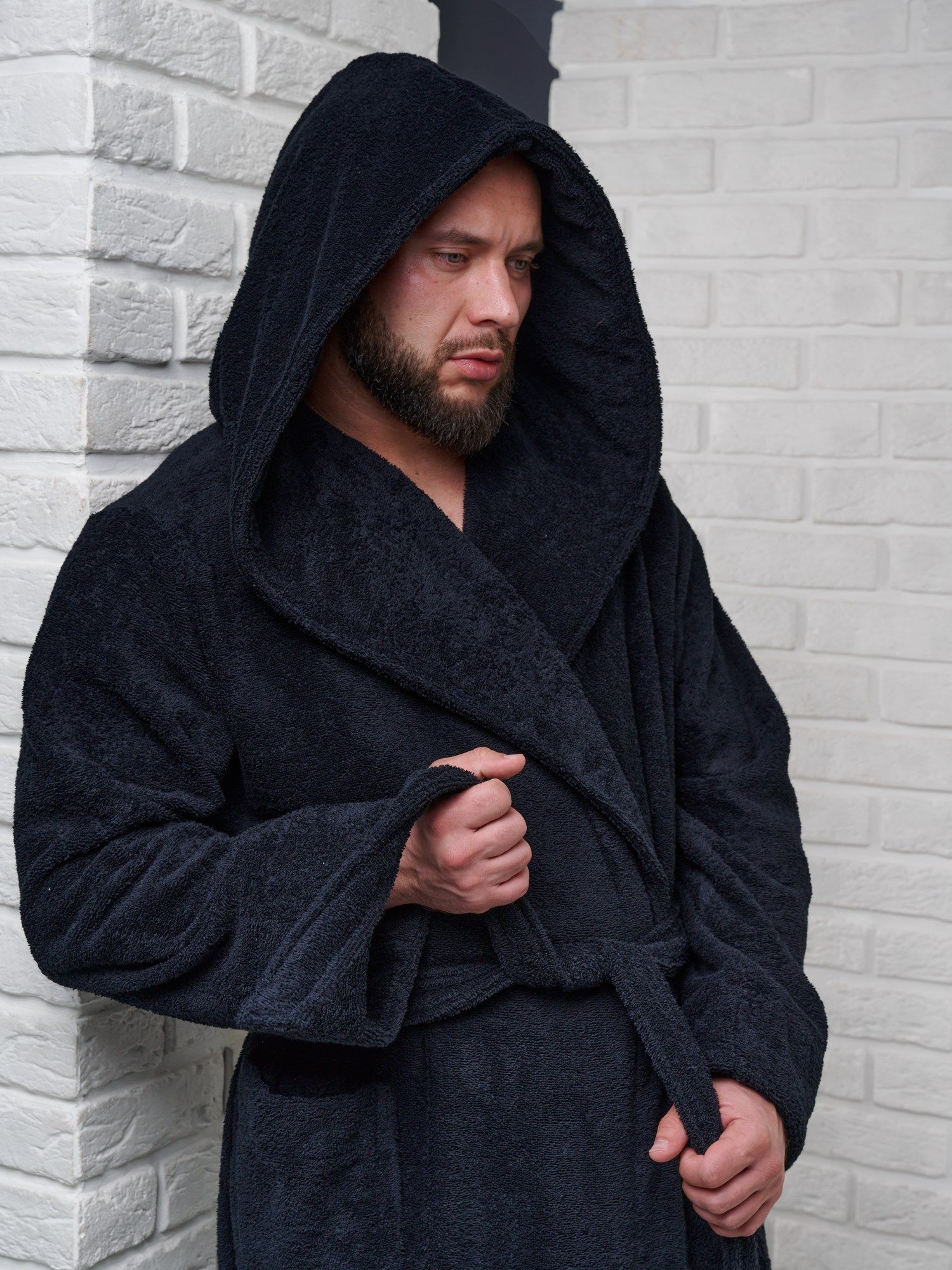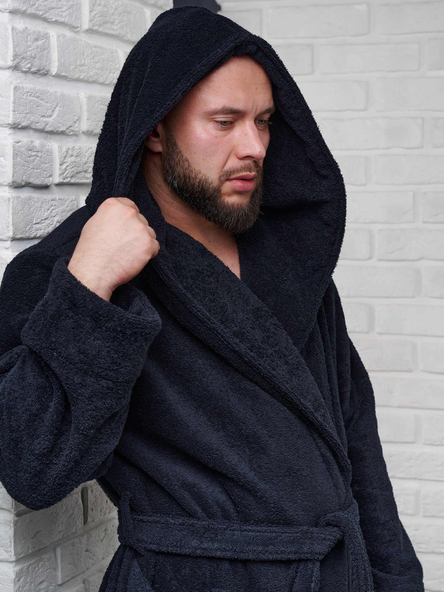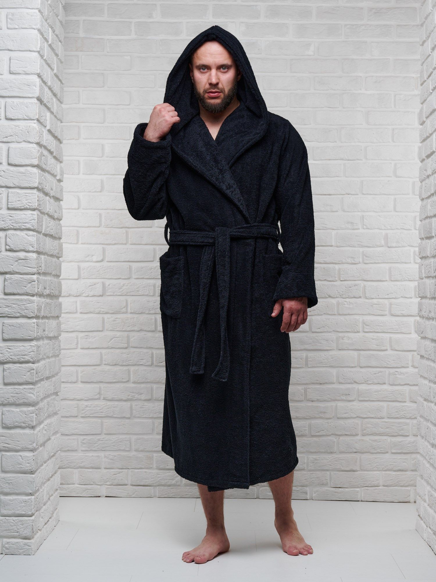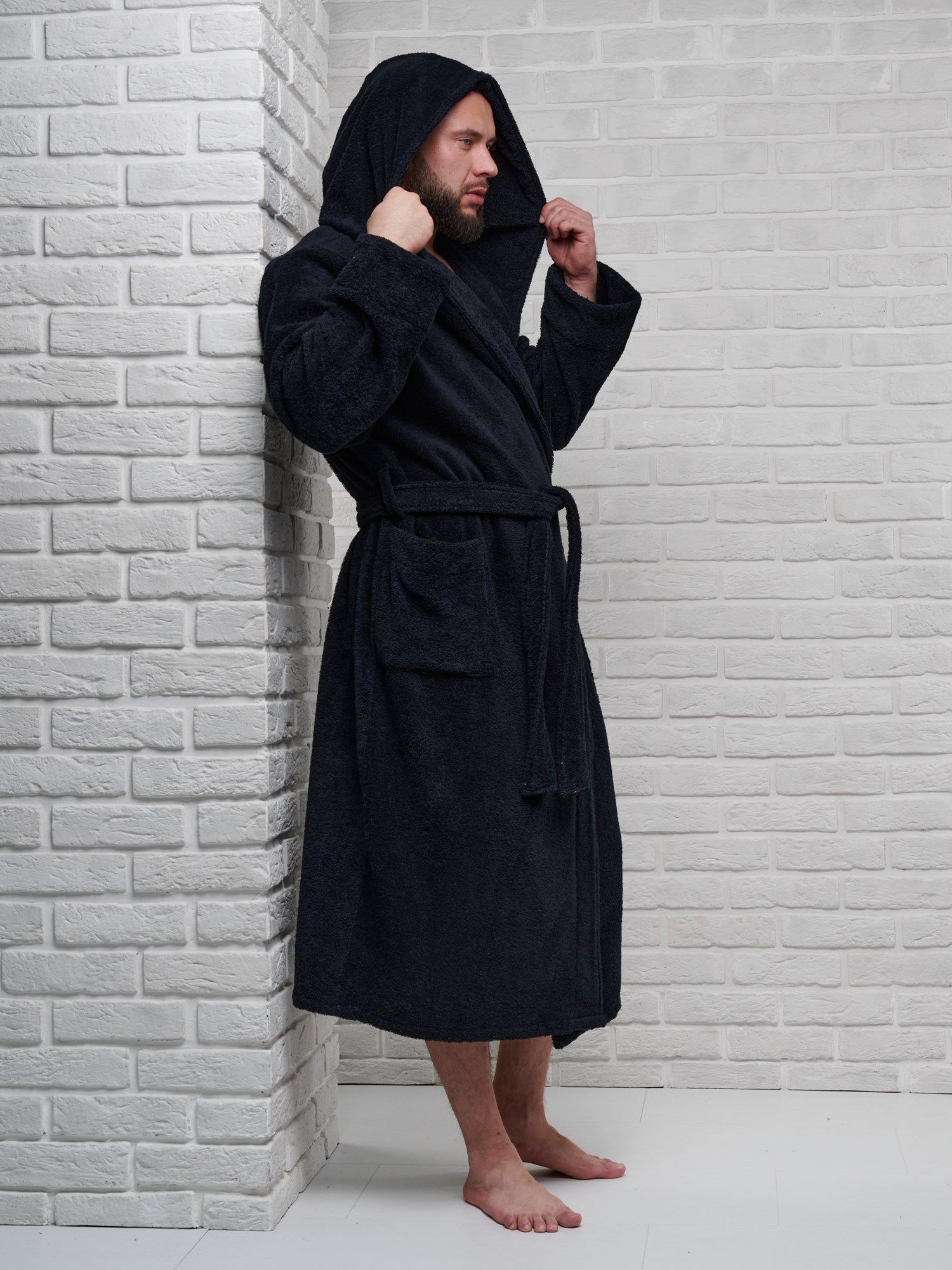 Махровая ткань из 100% хлопка идеально согревает и быстро высушивает кожу после водных процедур. Капюшон убережет шею и голову от сквозняков и резкой смене внешней температуры, особенно актуально при посещении бани в холодное время года.