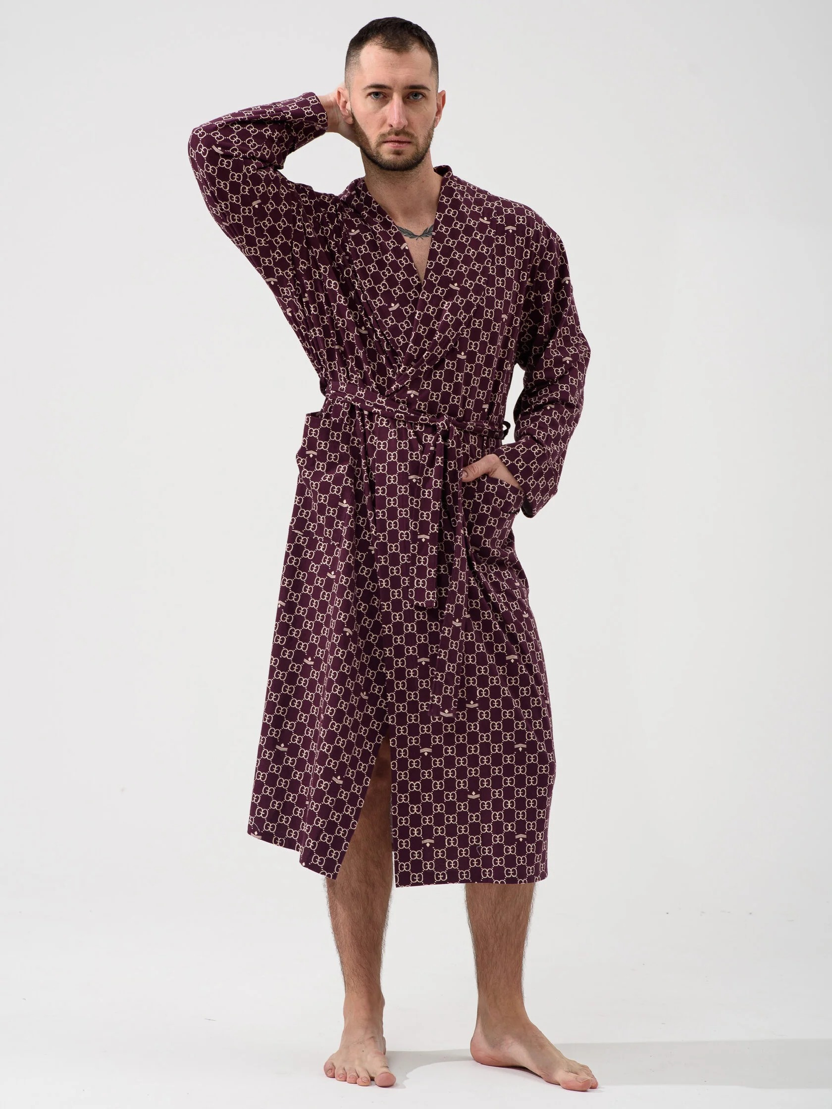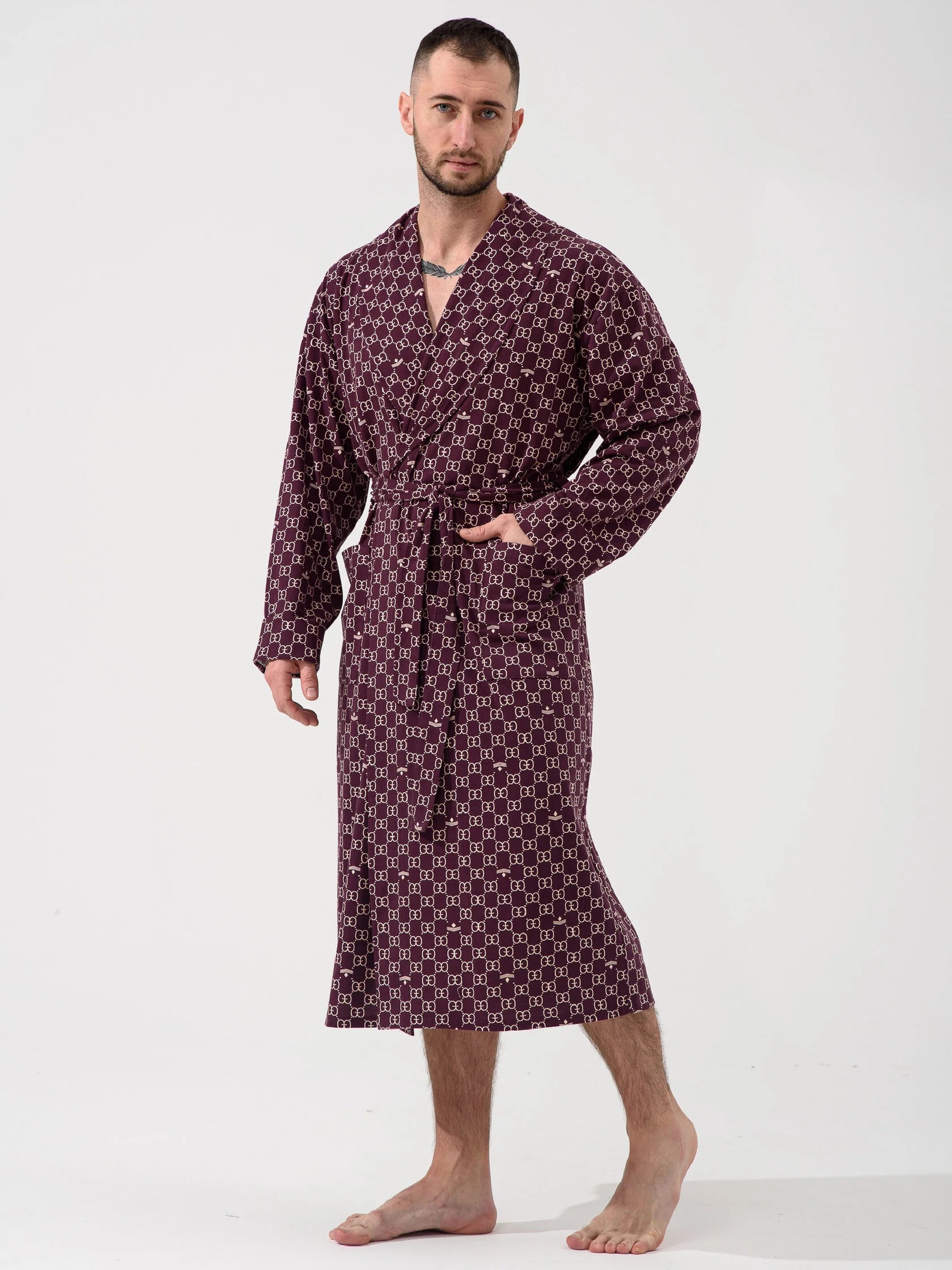 Комфортный домашний халат "Люкс" 2441-К / Бордовый из легкого трикотажного полотна, идеально подходящий для повседневного использования. Модель отличается практичным дизайном и высоким качеством исполнения.