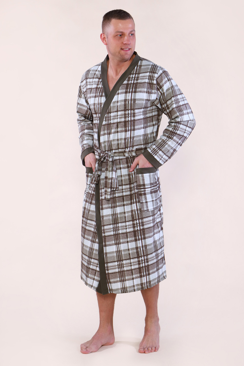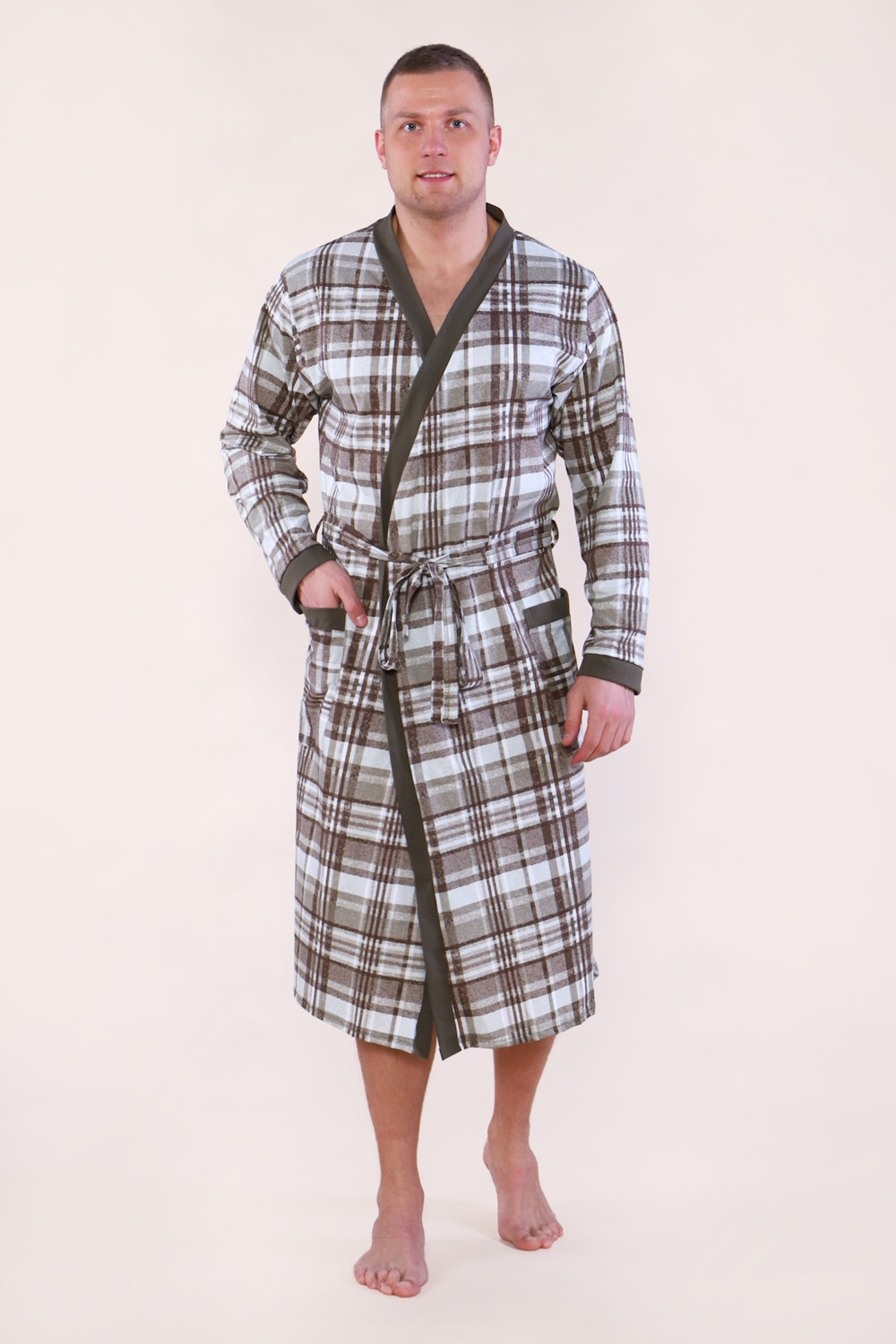 Мужской халат из кулирки — это практичная и комфортная домашняя одежда, изготовленная из 100% хлопка. Кулирка — мягкий трикотаж, который хорошо «дышит», не вызывает аллергии и подходит для ежедневного использования. Такие халаты обычно имеют свободный крой, длинные рукава и застёгиваются на запах с поясом.
