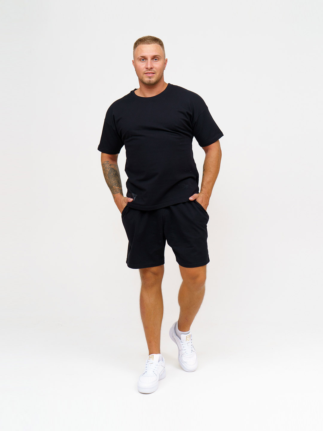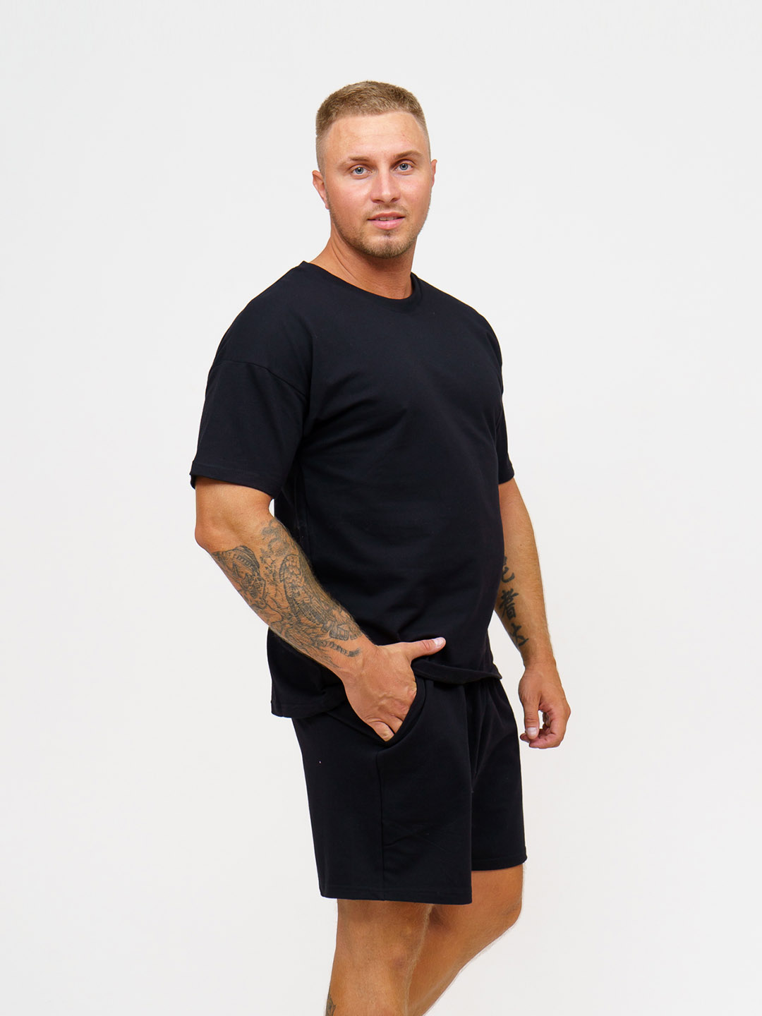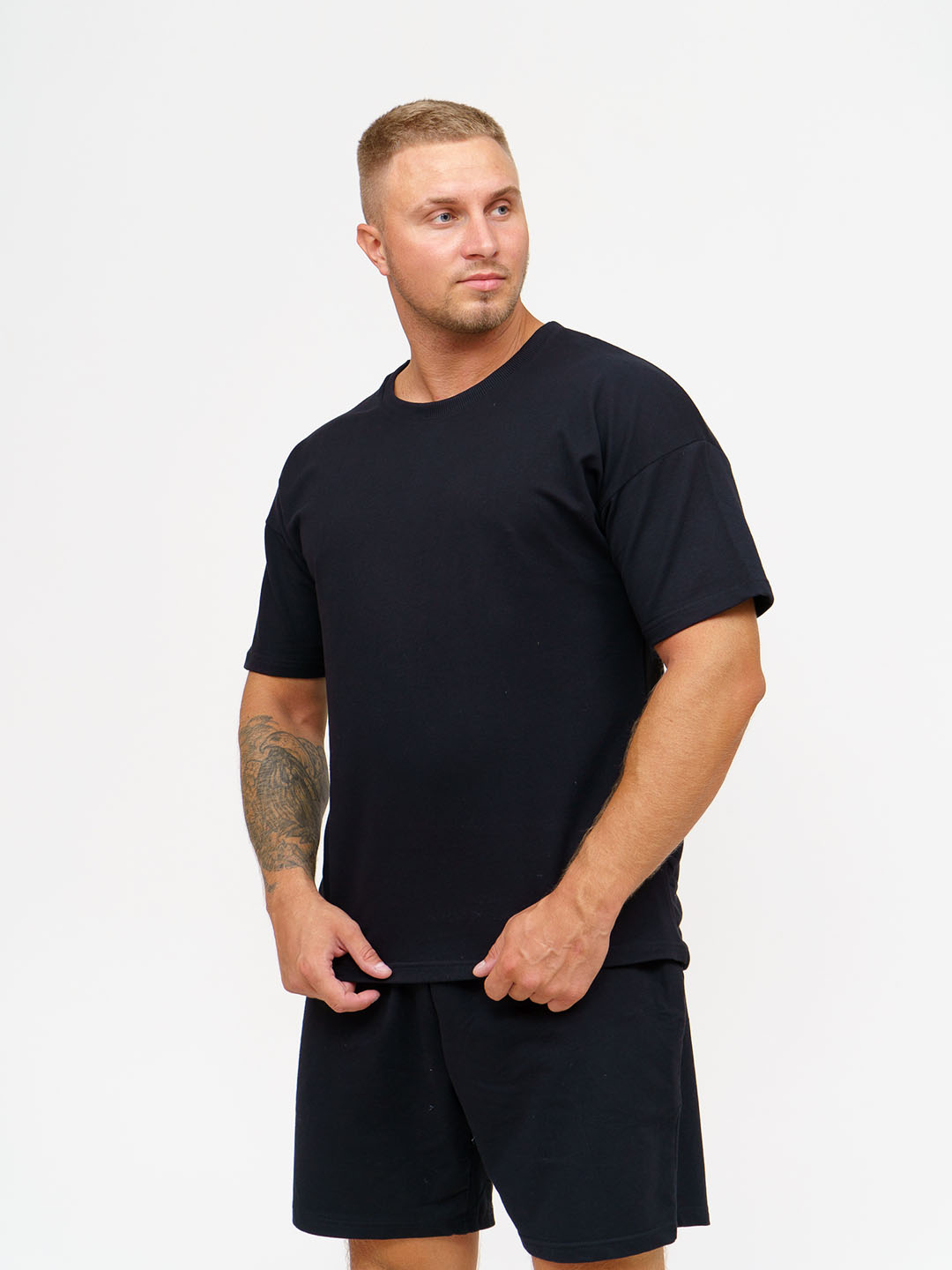 Мужской спортивный костюм с шортами - это самая востребованная летняя модель. Костюм мужской представляет собой футболку и шорты. Футболка со спущенным плечом и печатью. Шорты с карманами, удобной посадкой и шнурком. Спортивный костюм изготовлен из премиального трикотажа (футер) турецкого производства, без добавления ПЭ (полиэстера), внутри петельки из натурального хлопка, не цепляются. Состав: 95%-хлопок, 5%-лайкра. Благодаря добавлению лайкры костюм сохраняет форму после многочисленных стирок, не скатывается. Материал костюма мягкий, приятный к телу, воздухопроницаемый, гипоаллергенный. В летнем костюме удобно заниматься спортом, повседневными делами, активным отдыхом! Стирать и гладить с изнаночной стороны!