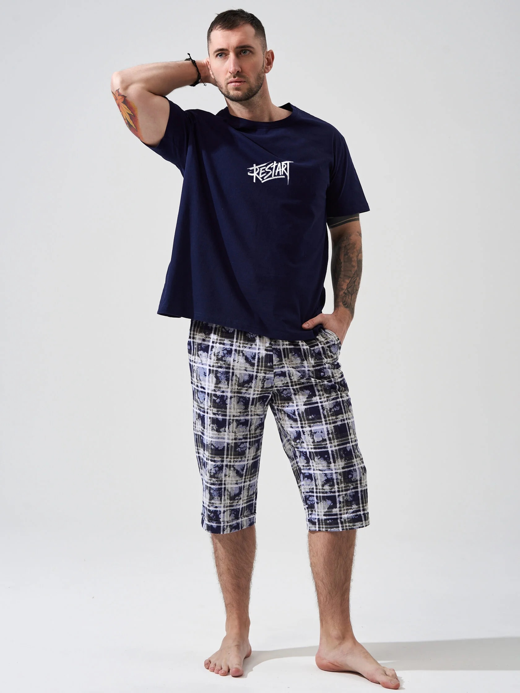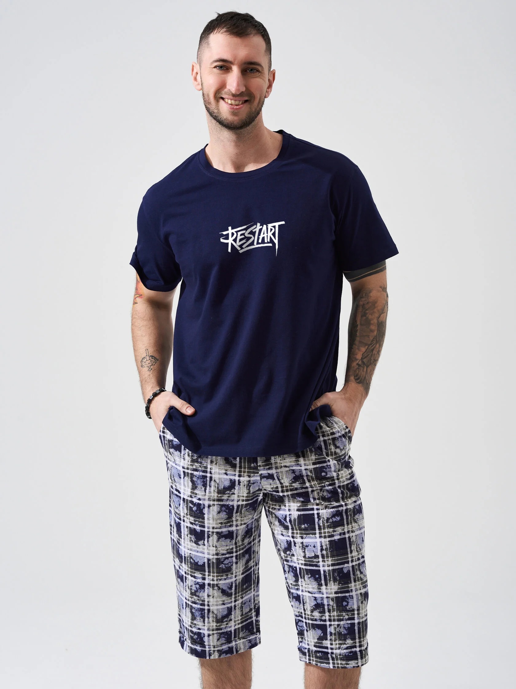 Мужской комплект "Рестарт" (бриджи) 2449-К отшивается из кулирного хлопкового полотна. Мужской летний костюм с бриджами - отличный вариант в качестве домашней одежды или для прогулок в теплое время года.