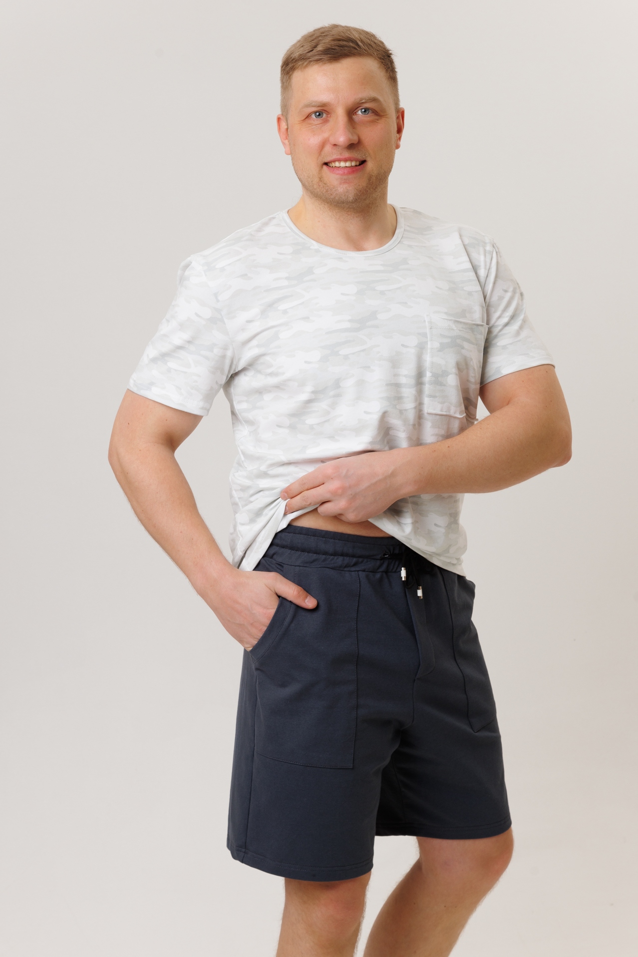 Мужские костюмы с шортами из футера — это практичная и комфортная одежда, подходящая для спорта, активного отдыха и повседневной носки.