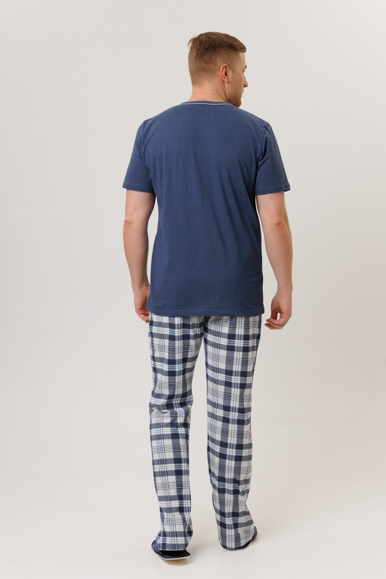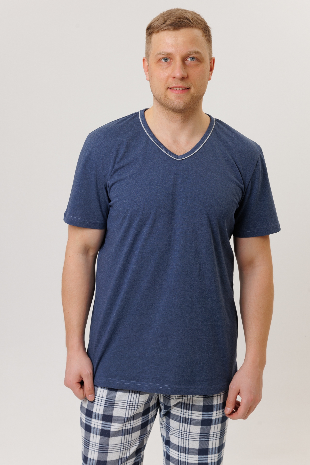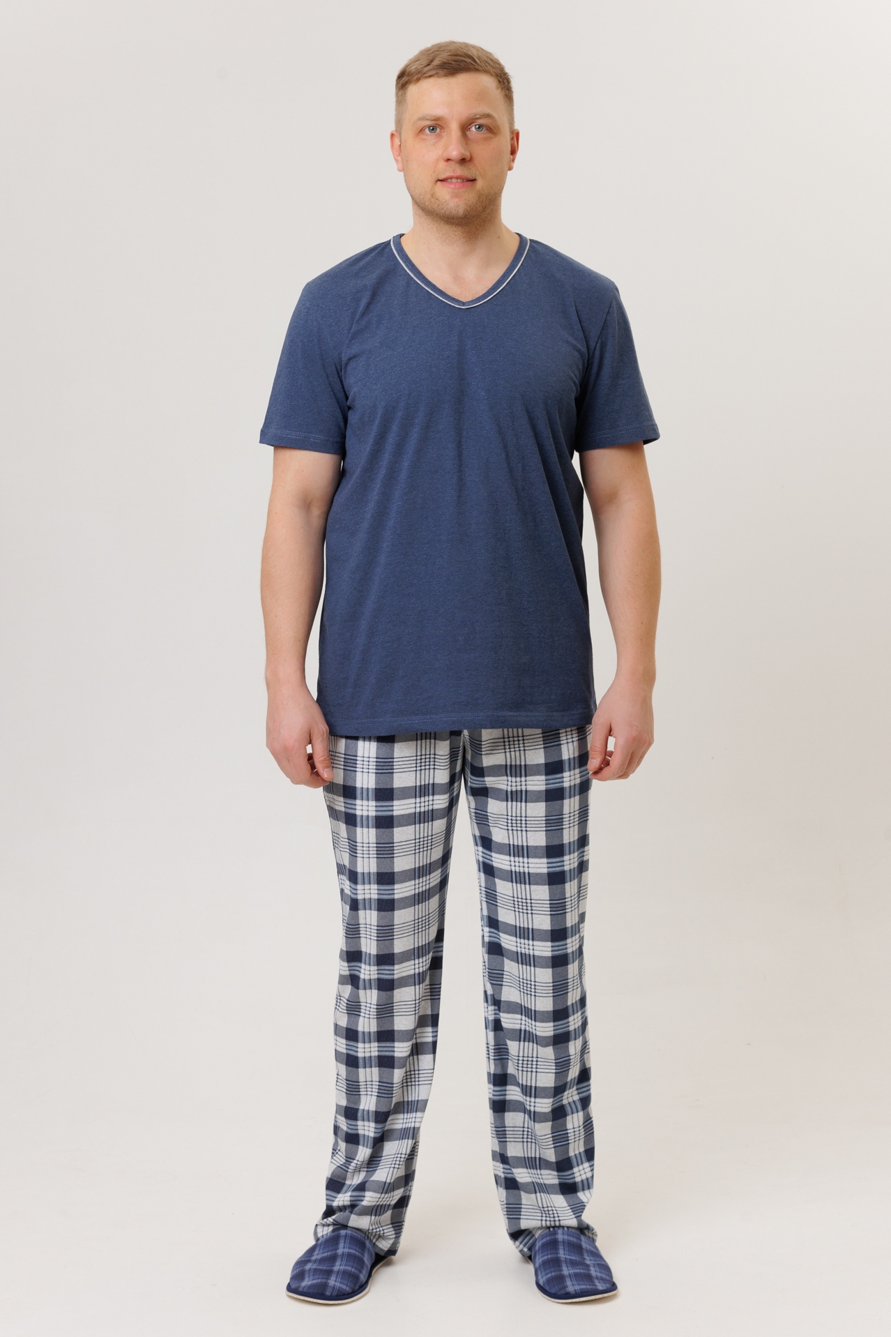 Мужской костюм из кулирки с брюками — это комплект из футболки и свободных брюк, изготовленный из 100% хлопка. Кулирка — тонкое трикотажное полотно, которое хорошо тянется, не мнётся и позволяет коже дышать. Такие костюмы подходят для дома, отдыха, спорта.