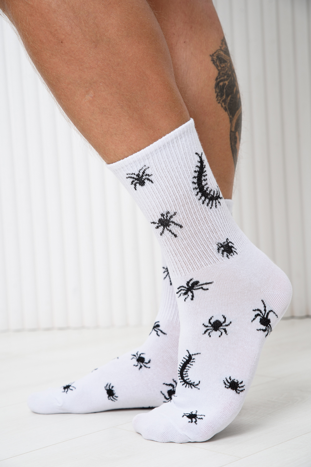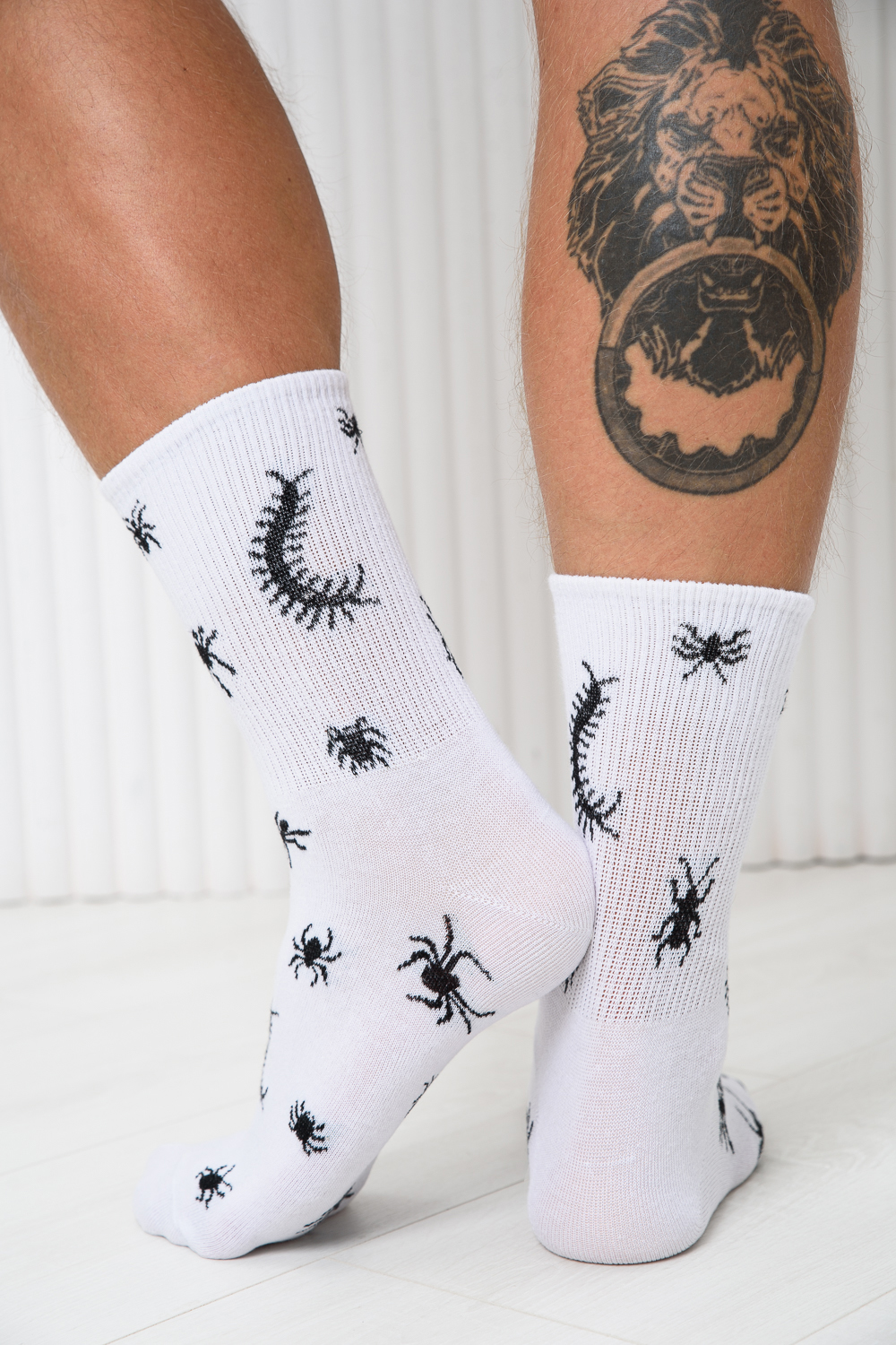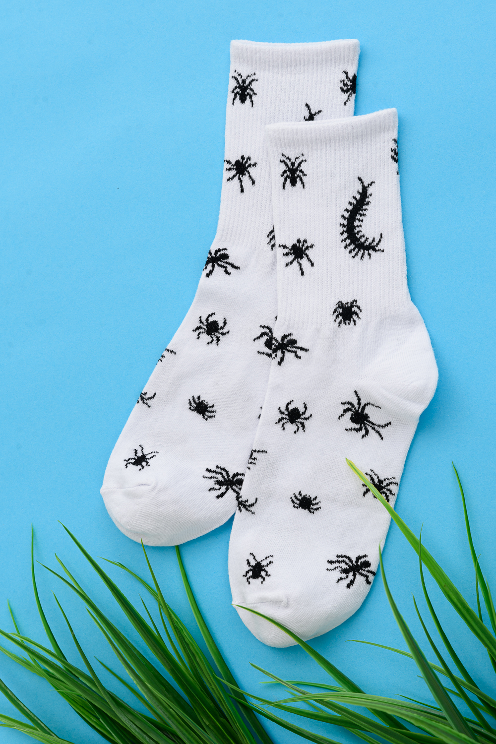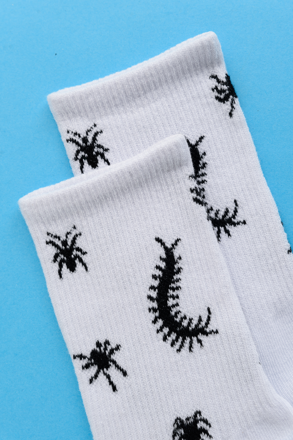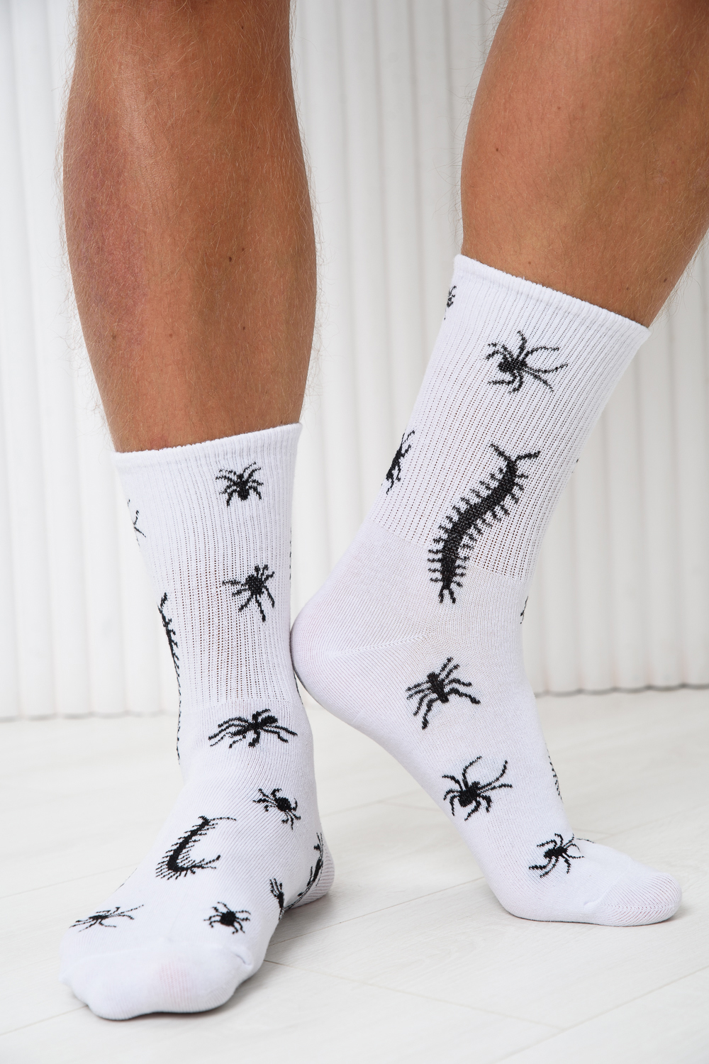 Комплект носков с резинкой по всей верхней части. По всему носку изображение насекомых. В комплекте 2 пары.