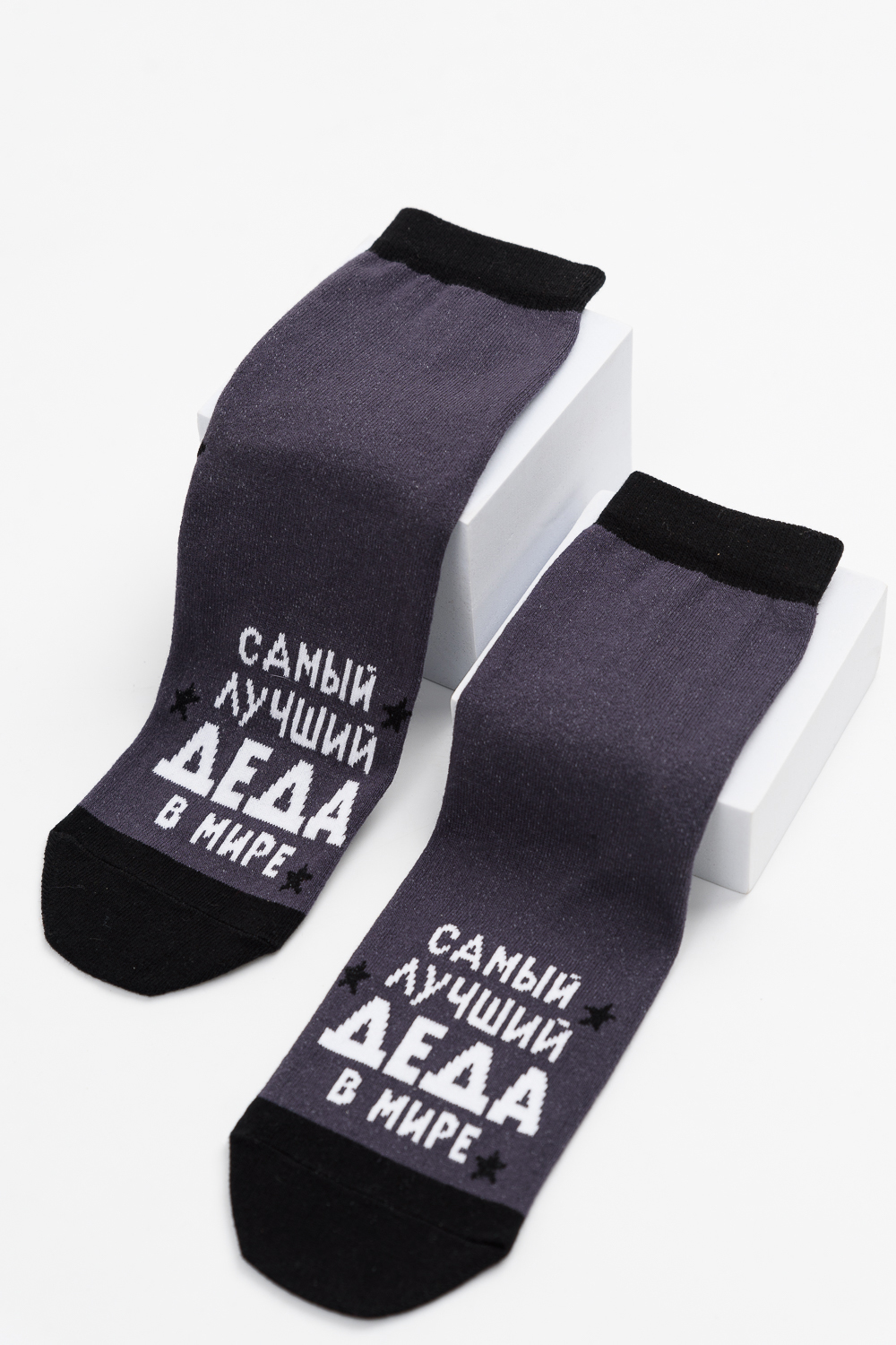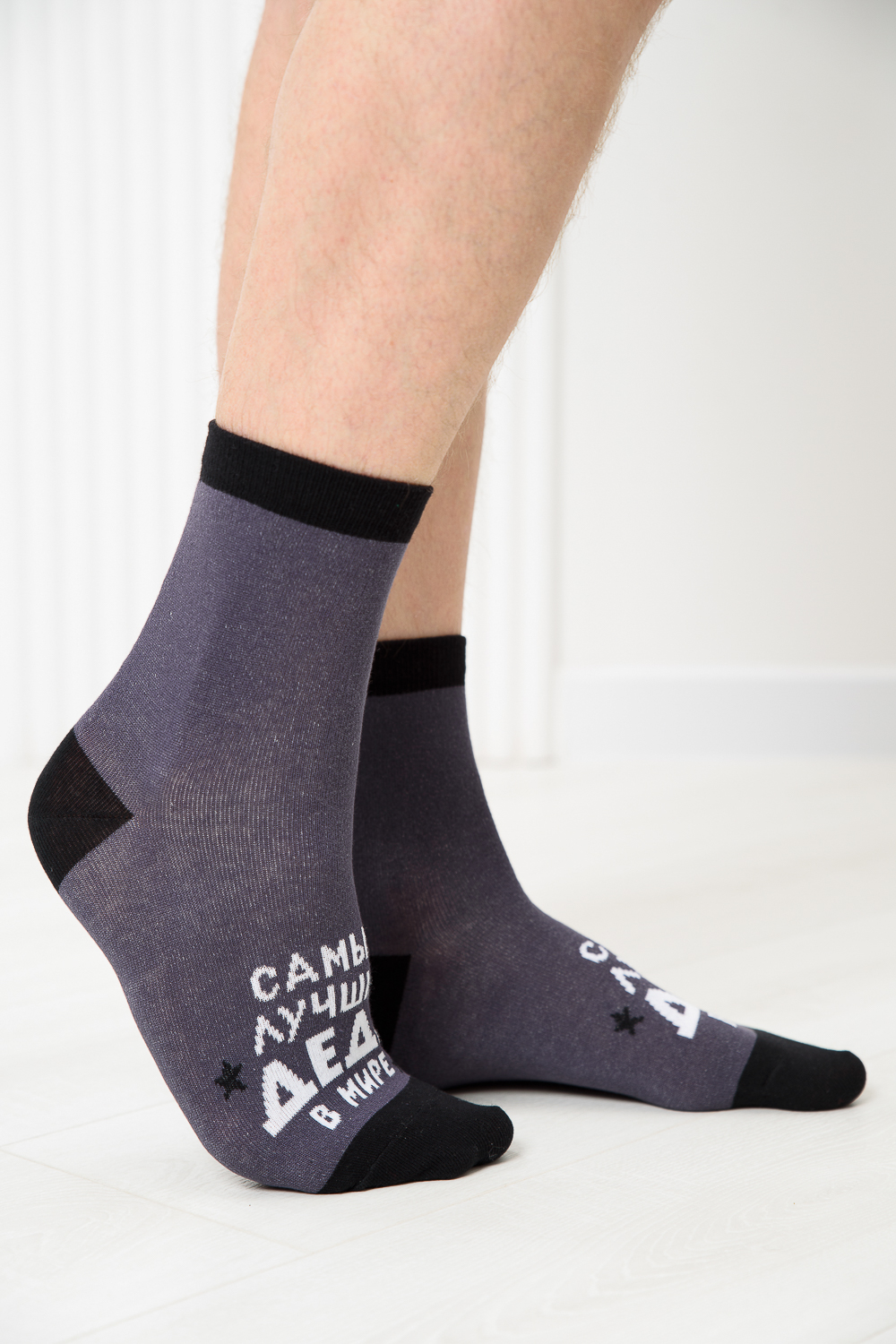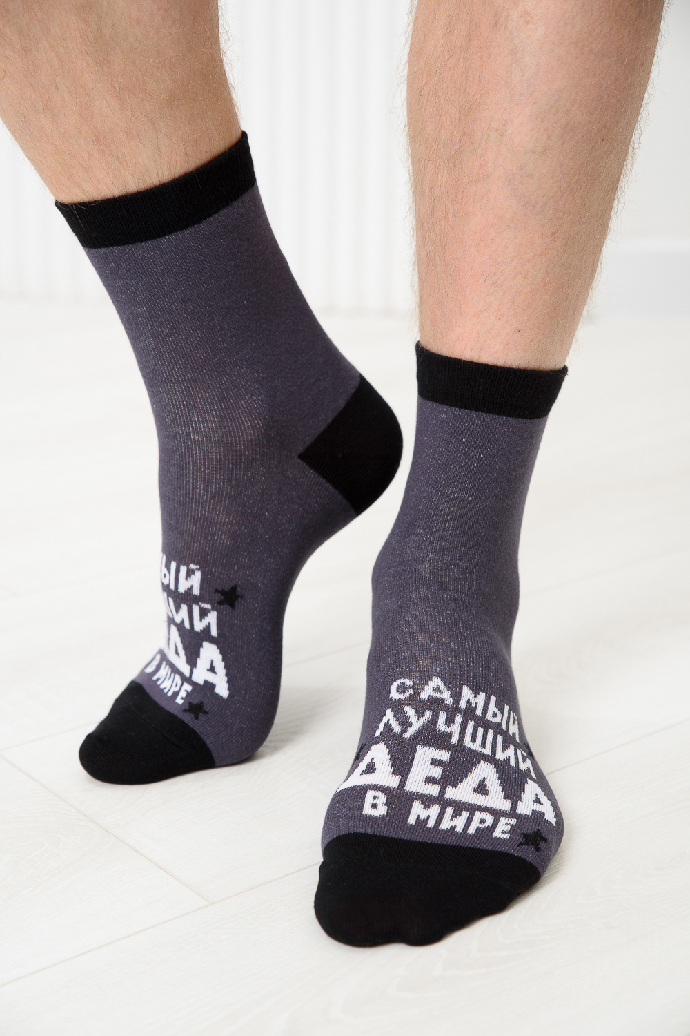 Мужские носки, комплект 2 пары. Мысок и пятка носка выполнены из другого цвета. На верхней части носка надпись Лучший деда в мире.