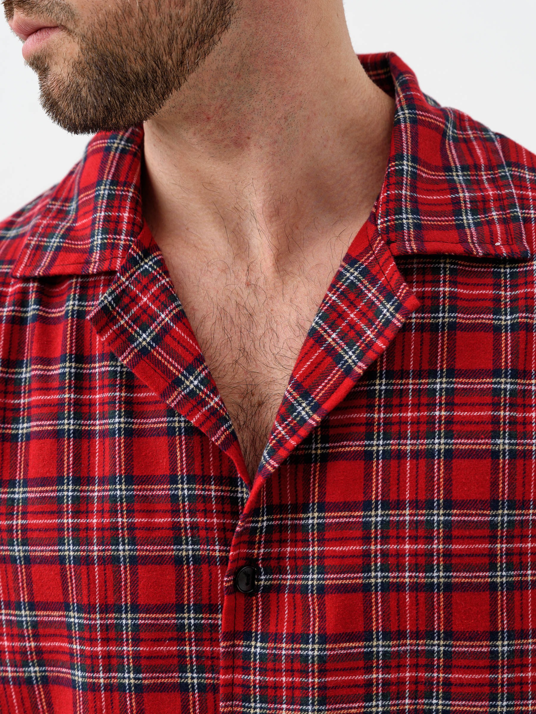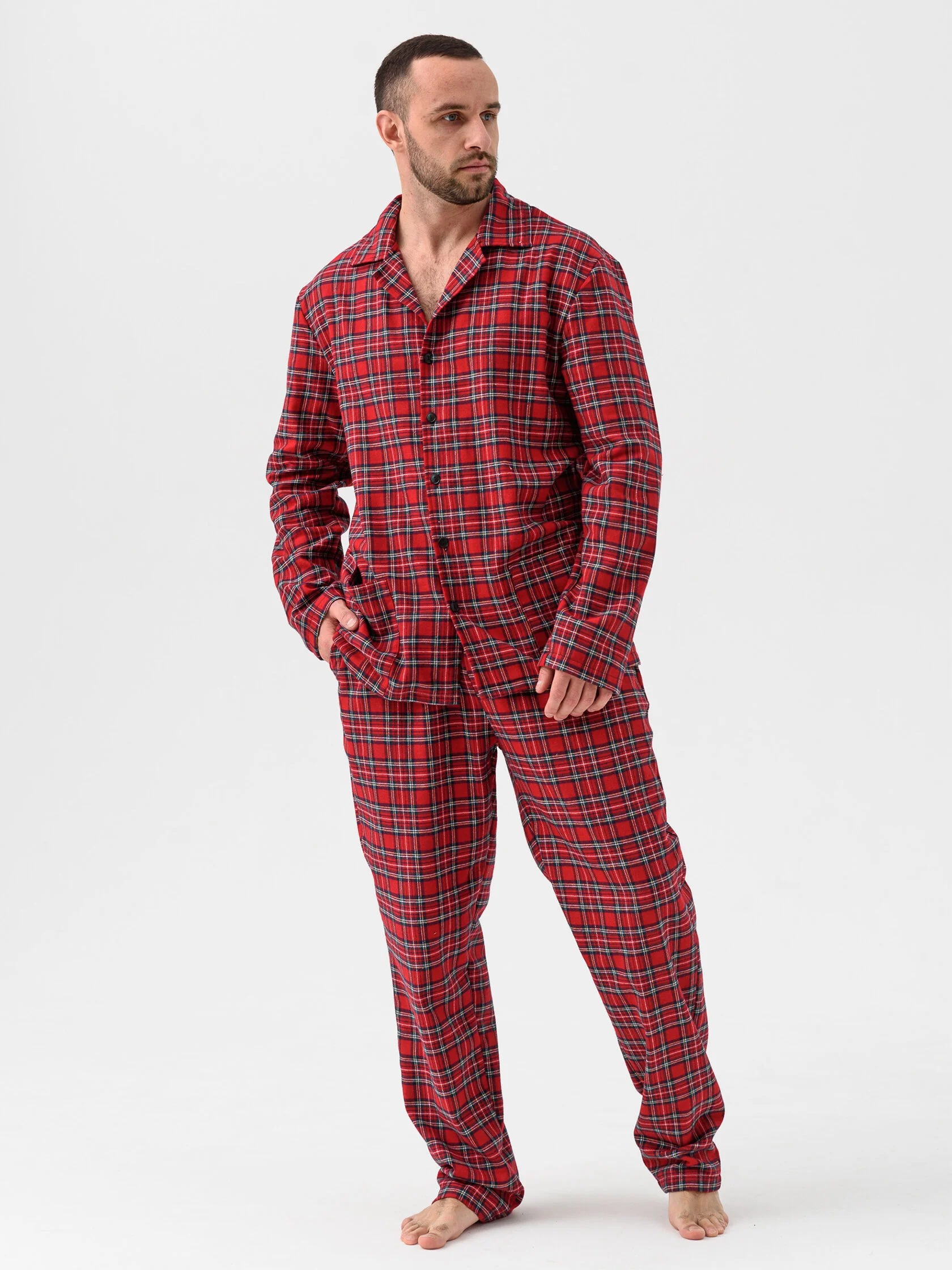 Мужская пижама "Добрый вечер" 2162-Ф / Бордовый - идеальный вариант костюма для повседневного домашнего использования и сна. Пижама мужская со штанами теплая состоит из брюк прямого кроя и куртки с длинным рукавом на пуговицах с отложным воротником.