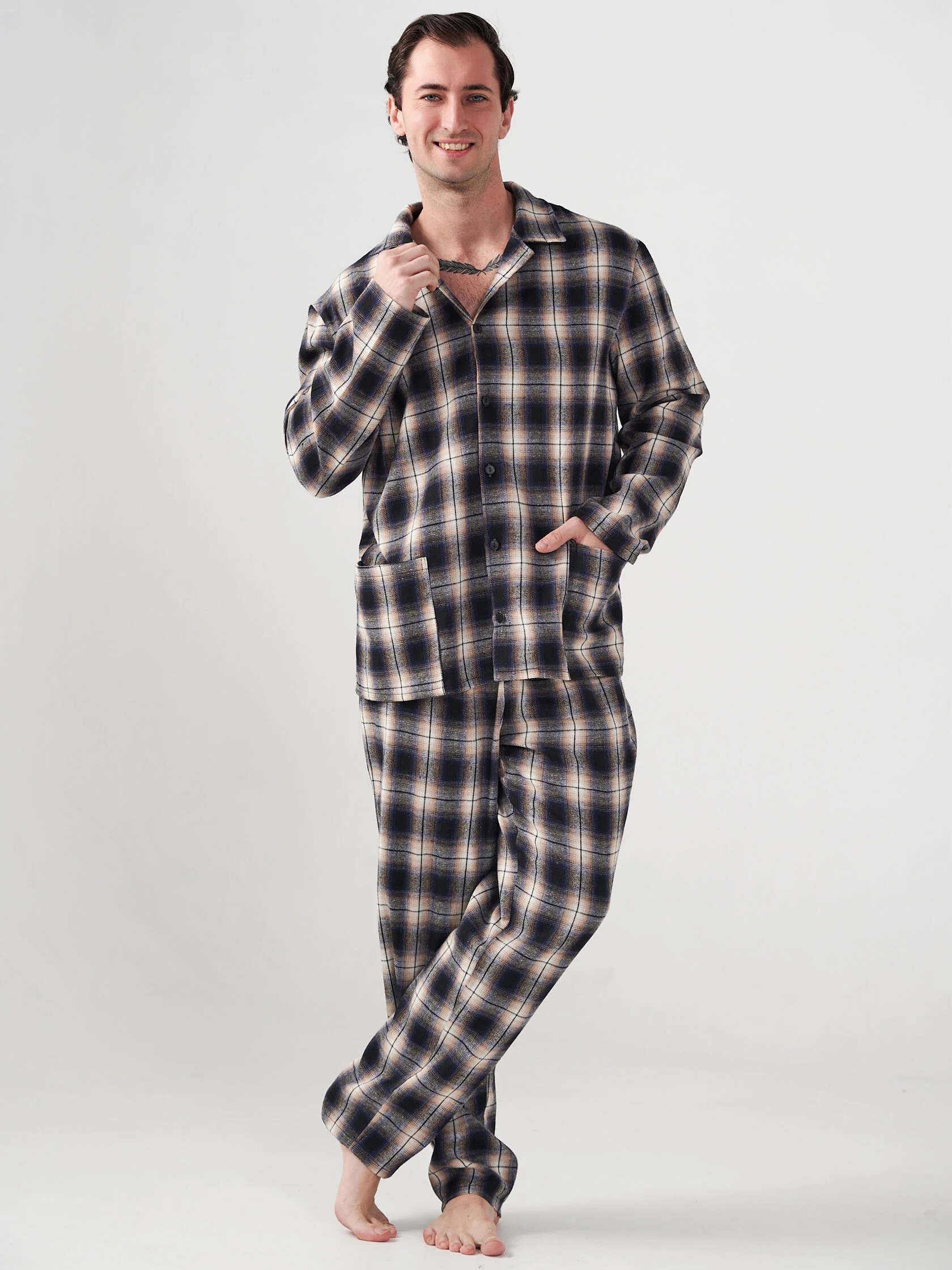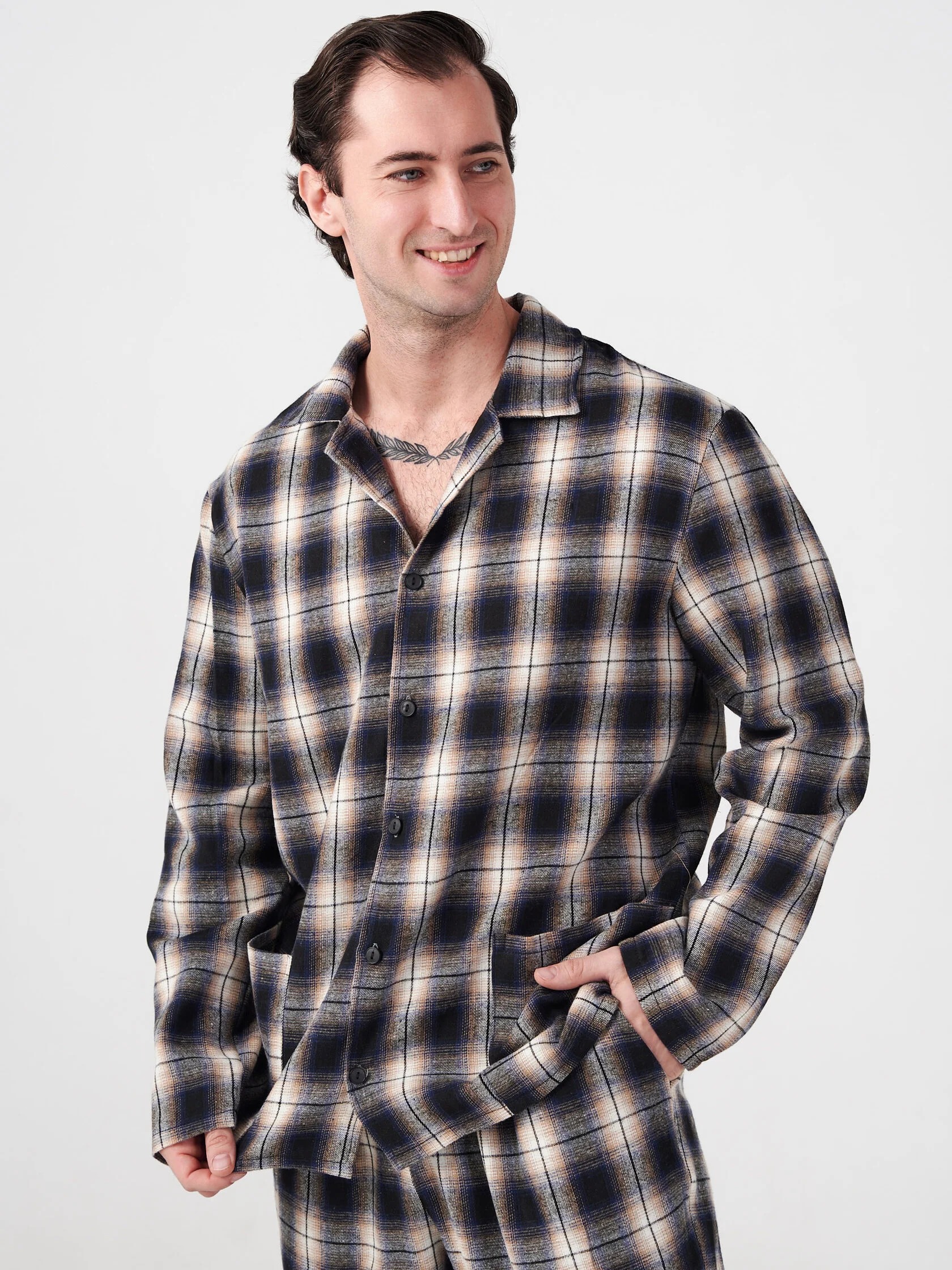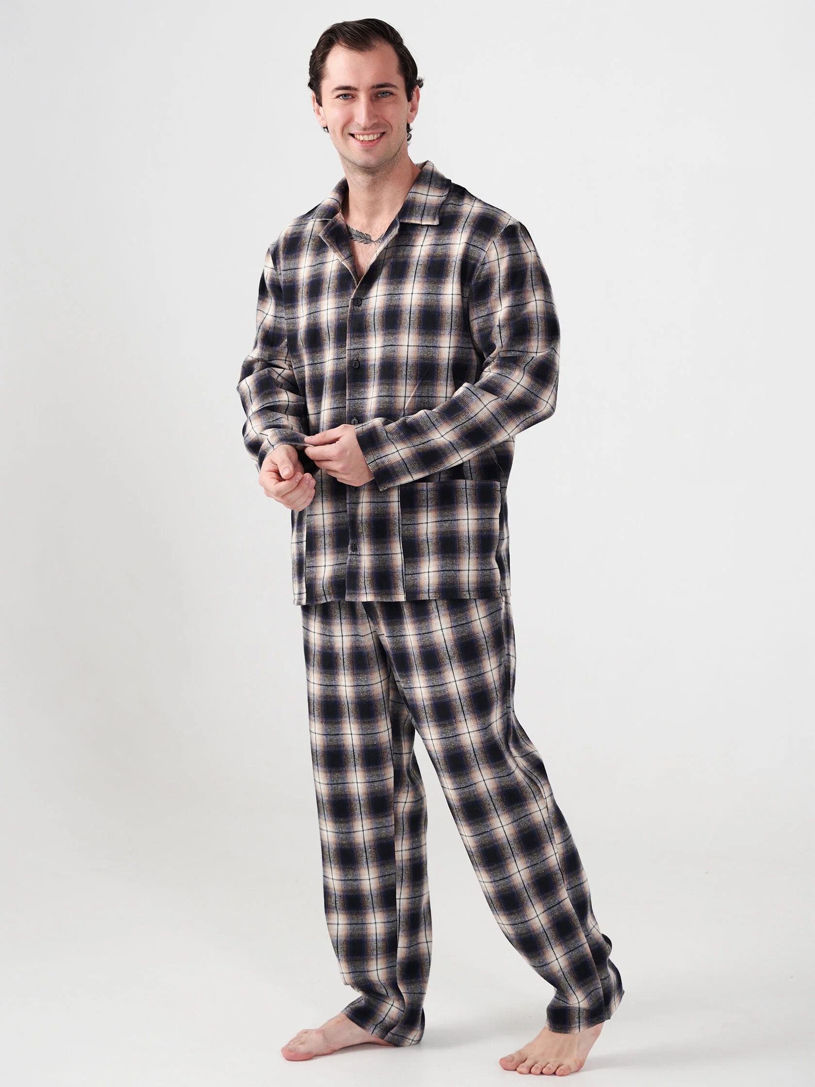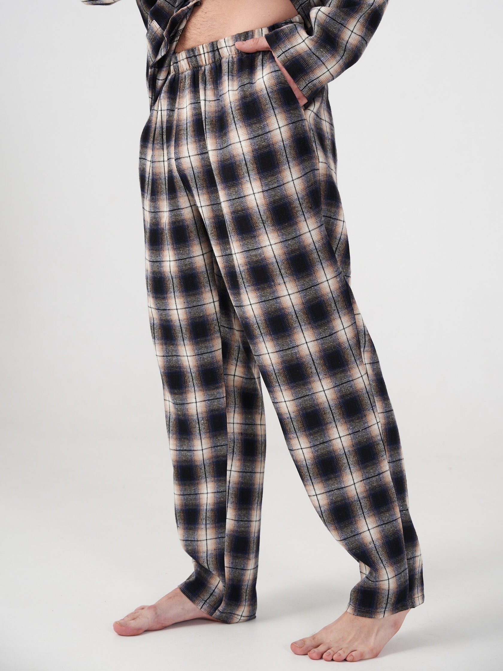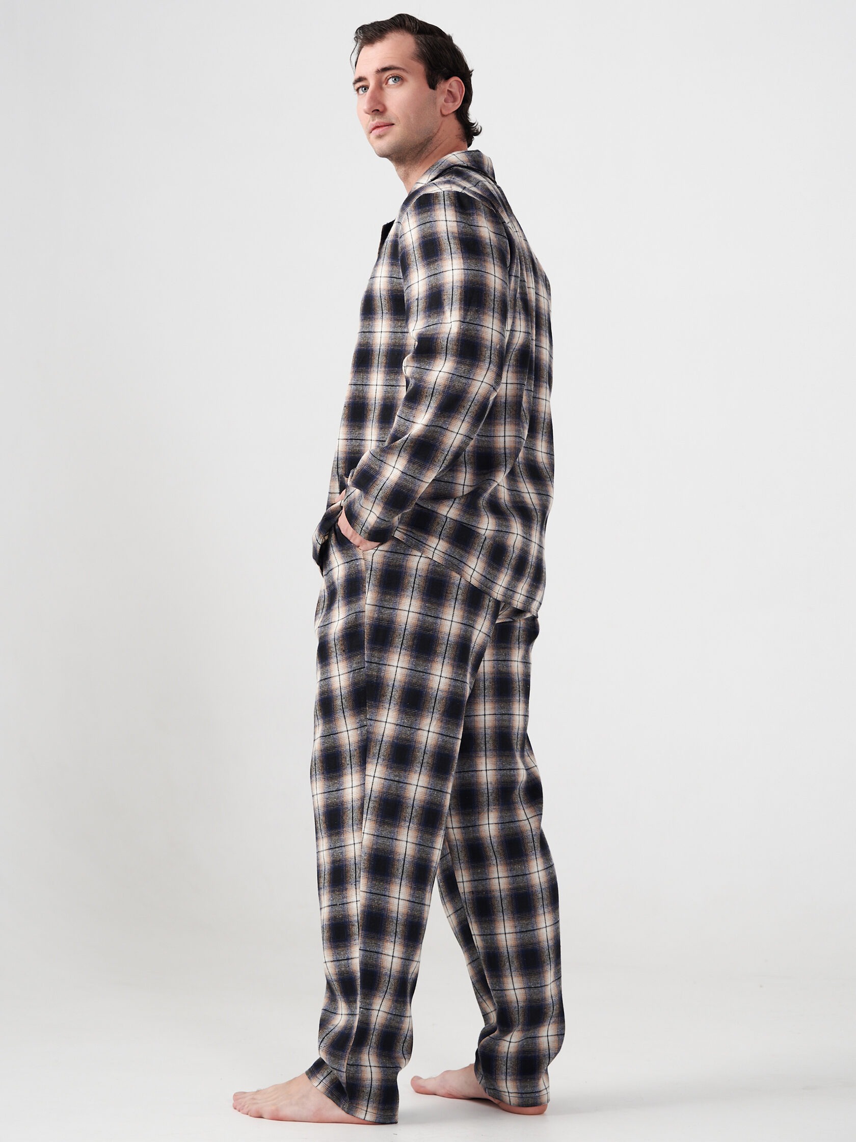 Мужская пижама "Добрый вечер" 2162-Ф / Темно-синий - идеальный вариант костюма для повседневного домашнего использования и сна. Пижама мужская со штанами теплая состоит из брюк прямого кроя и куртки с длинным рукавом на пуговицах с отложным воротником.