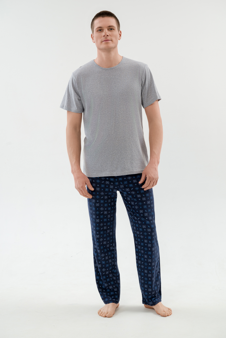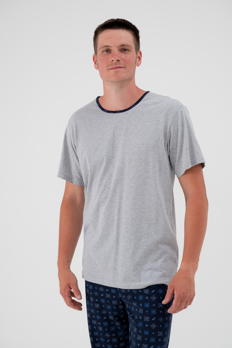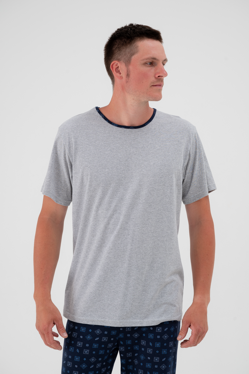 Уютная мужская пижама из мягкой футболки с коротким рукавом и комфортных брюк из кулирки — идеальный выбор для спокойного сна и домашнего отдыха, обеспечивающий максимальный комфорт и свободу движений. Нежный материал приятно прилегает к телу, не вызывает раздражения, а продуманный крой позволяет чувствовать себя расслабленно, делая эту пижаму вашим любимым домашним комплектом.