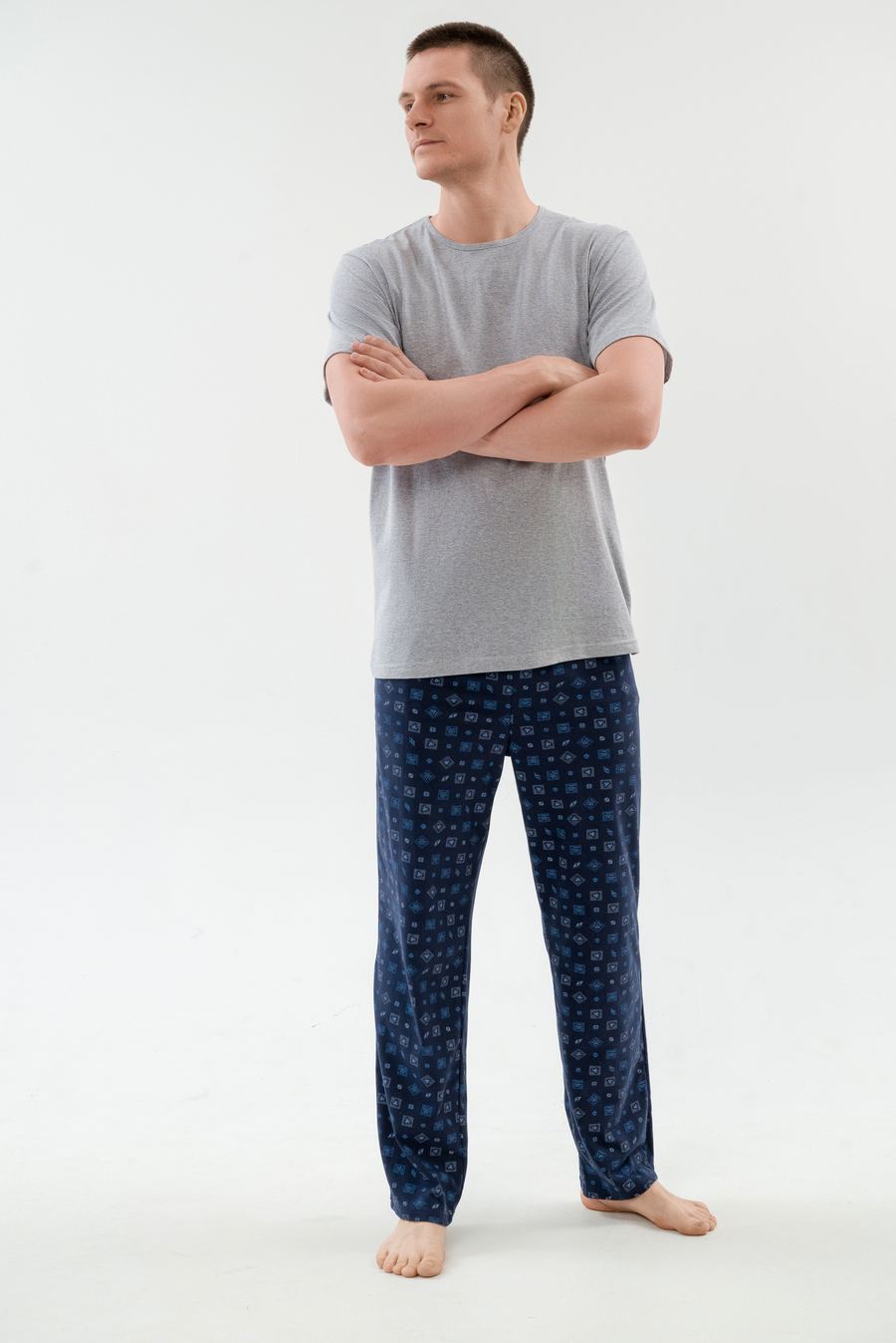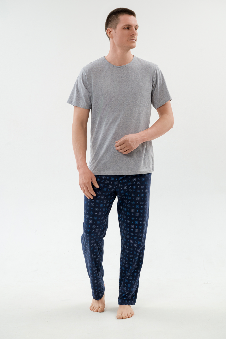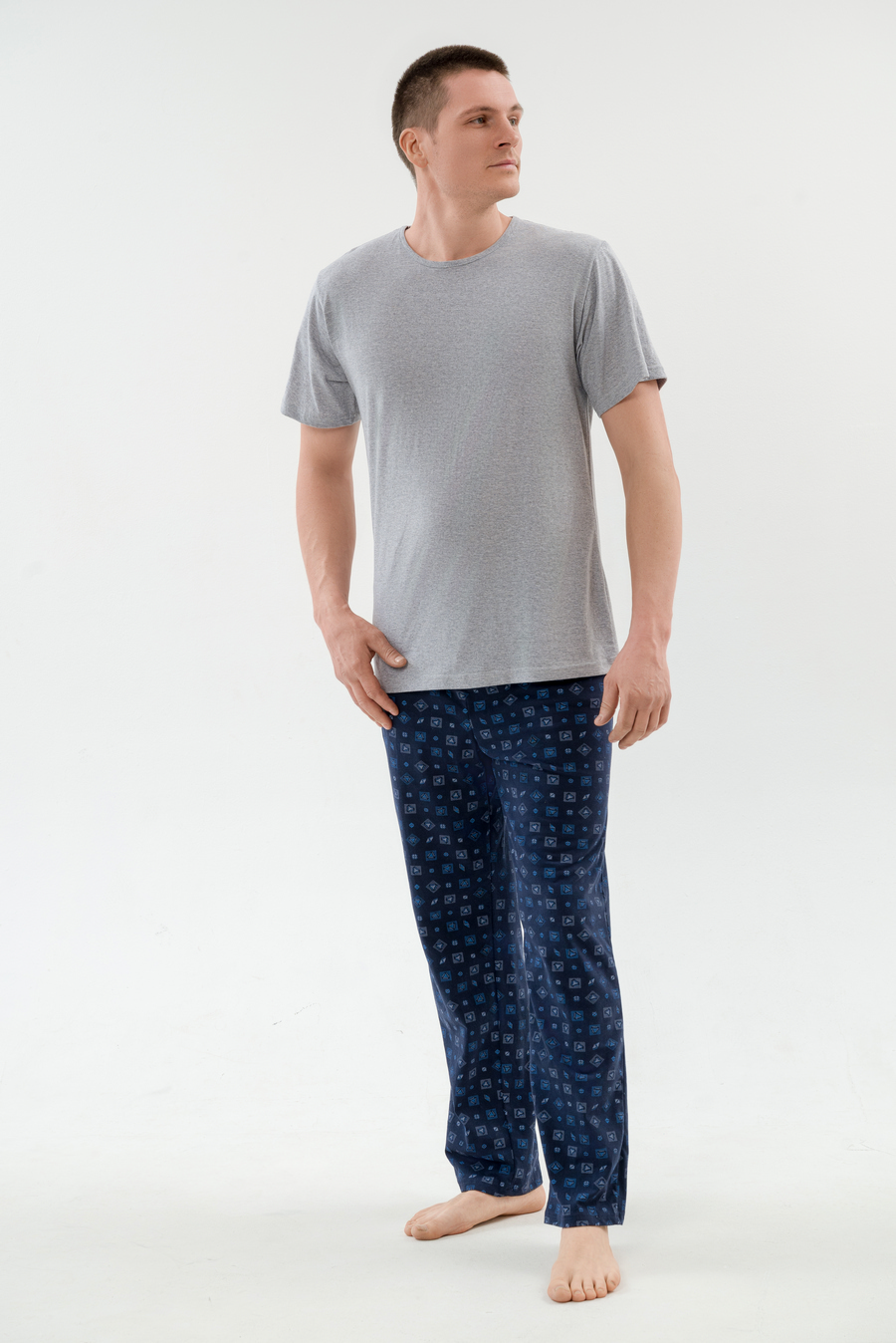 Уютная мужская пижама из мягкой футболки с коротким рукавом и комфортных брюк из кулирки — идеальный выбор для спокойного сна и домашнего отдыха, обеспечивающий максимальный комфорт и свободу движений. Нежный материал приятно прилегает к телу, не вызывает раздражения, а продуманный крой позволяет чувствовать себя расслабленно, делая эту пижаму вашим любимым домашним комплектом.