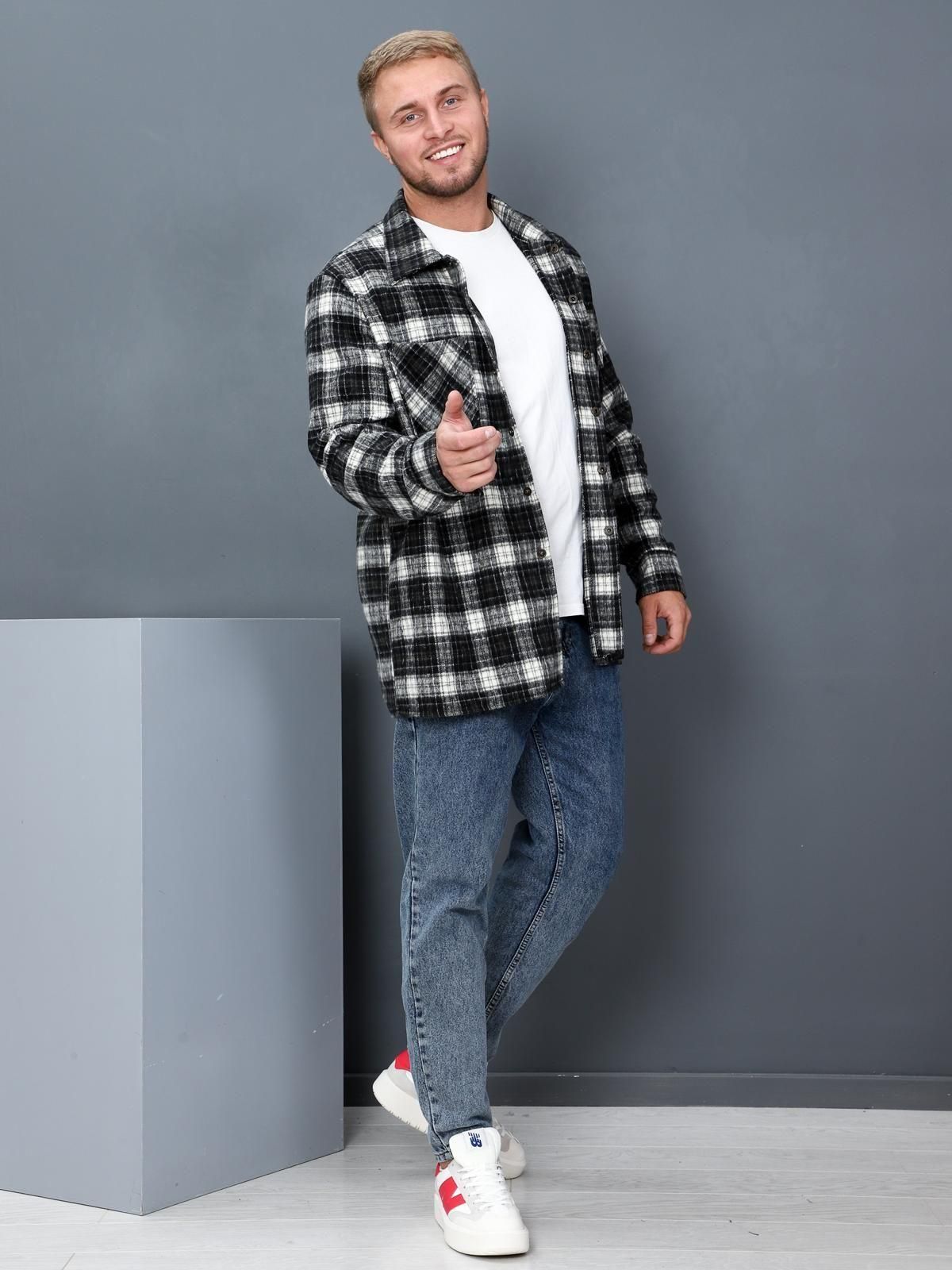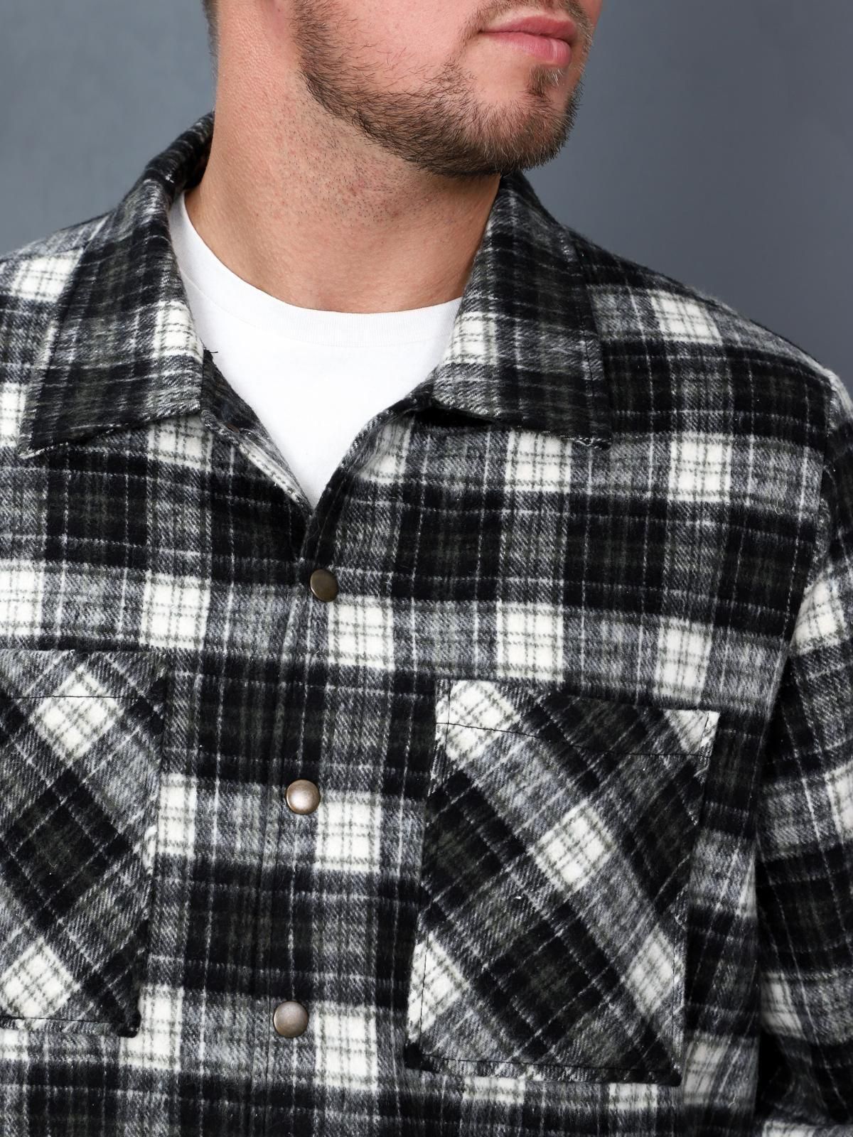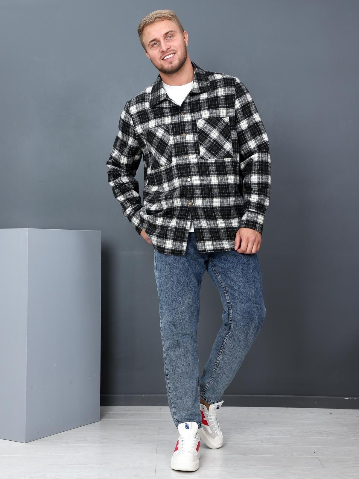 Рубашка мужская Никос - шерстяная в клетку. Рубашка имеет свободный крой, накладные карманы на полочках, длинные рукава и застегивается на пуговицы. Воротник классический, с отложными краями.