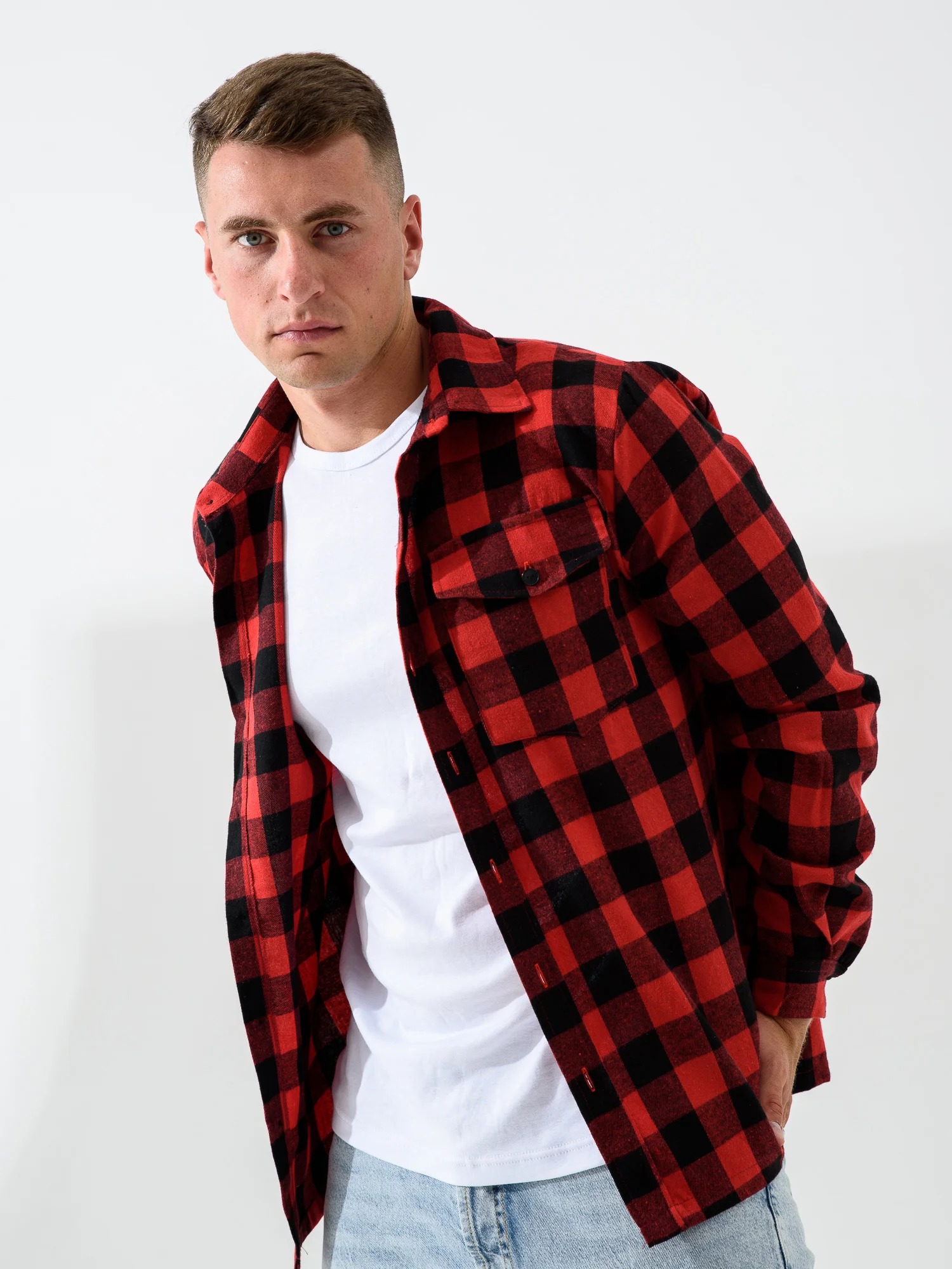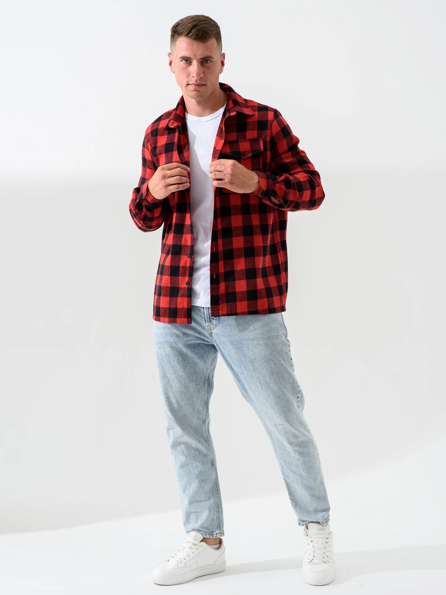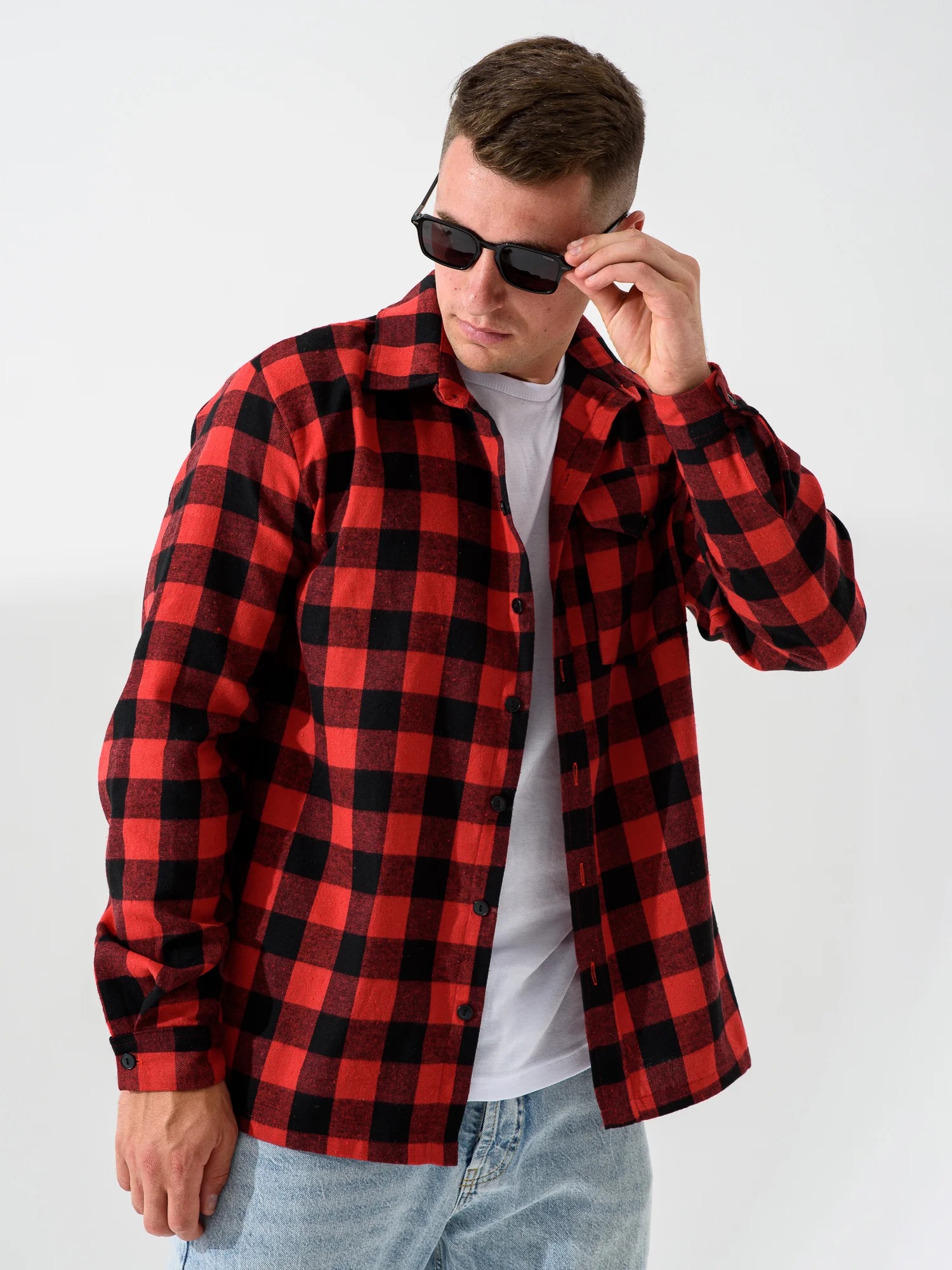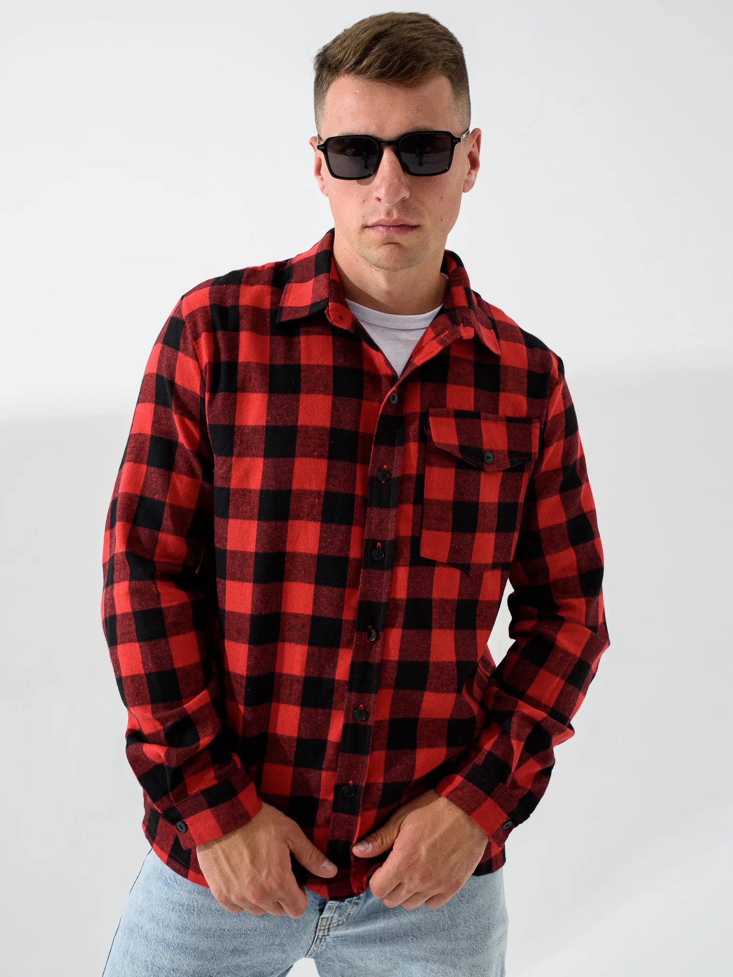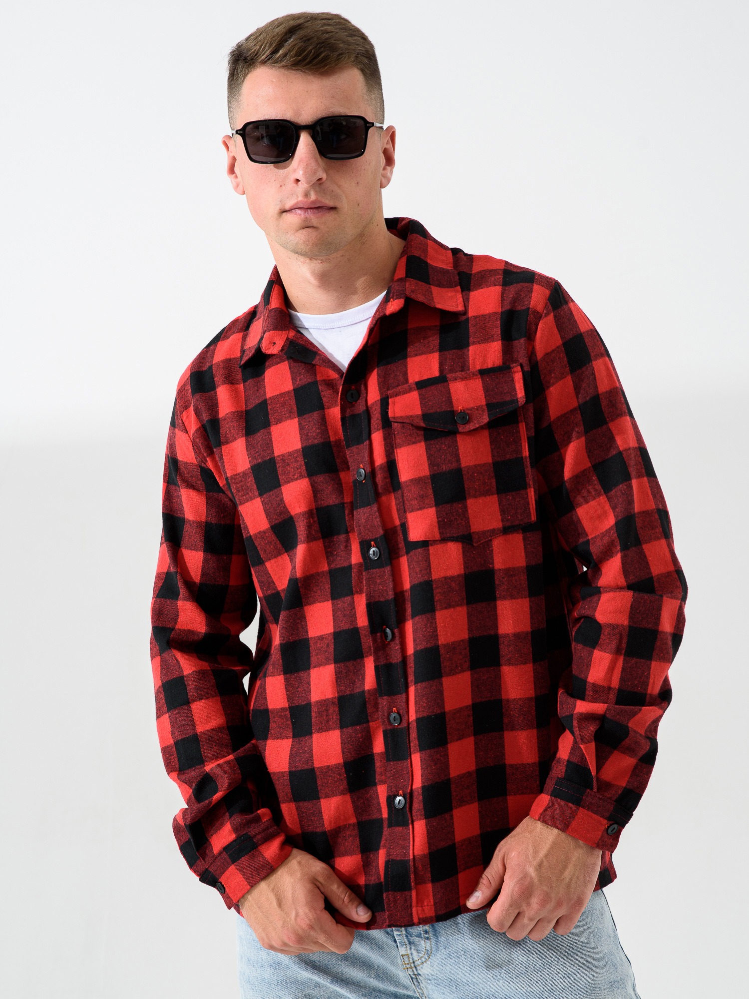 Мужская сорочка верхняя "Имидж" 2185-Ф / Красный с длинными рукавами и застежкой на пуговицы. Мужская рубашка отшивается из теплой фланели.