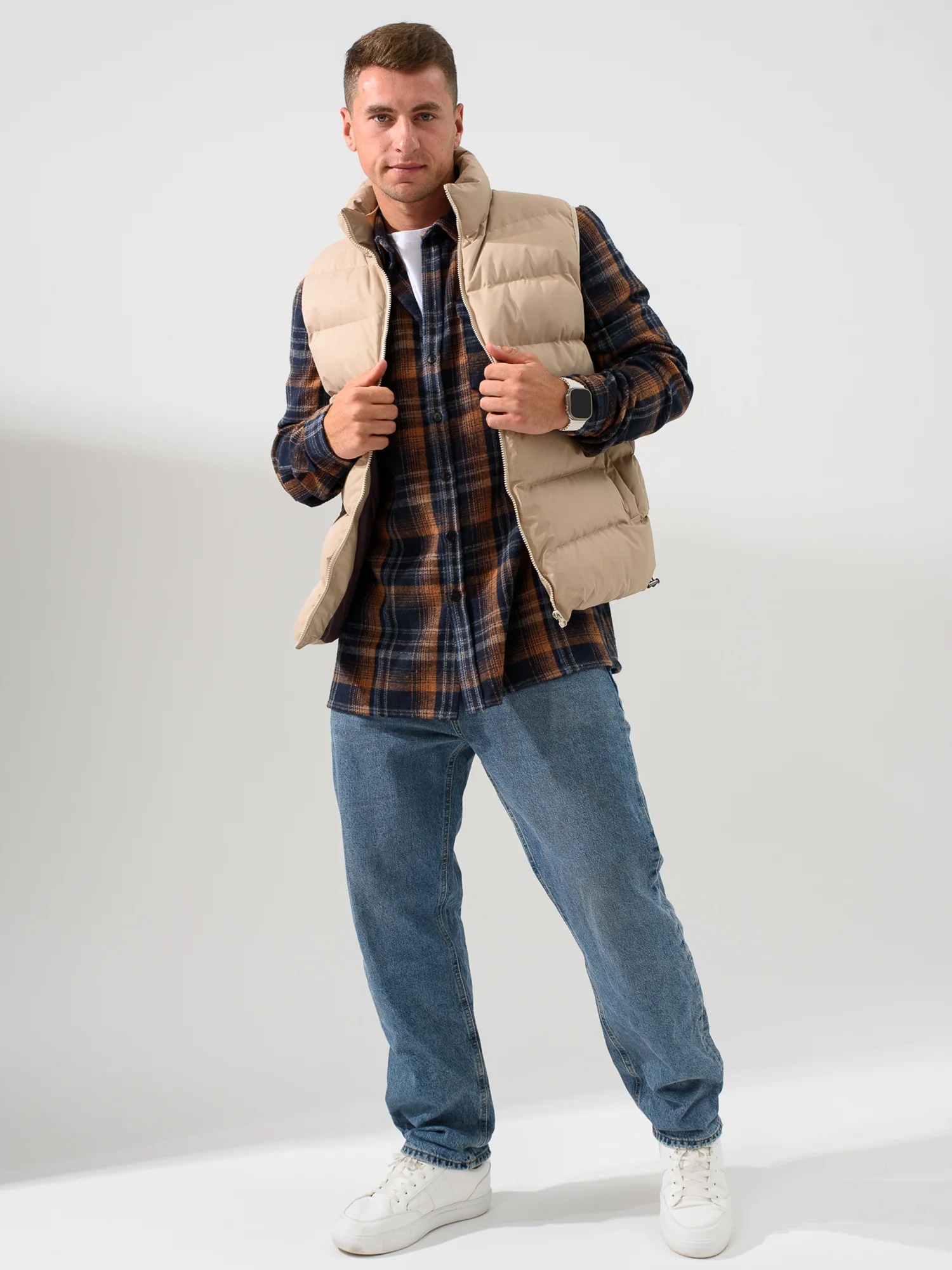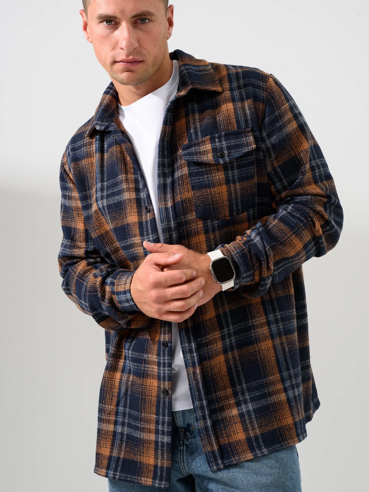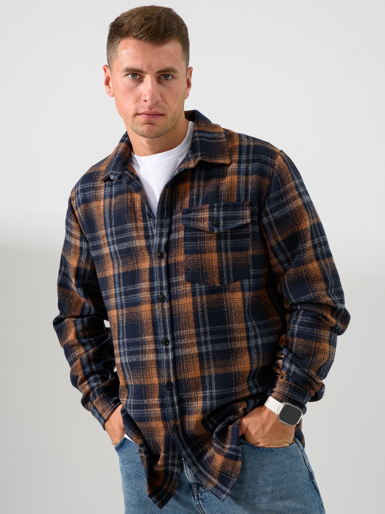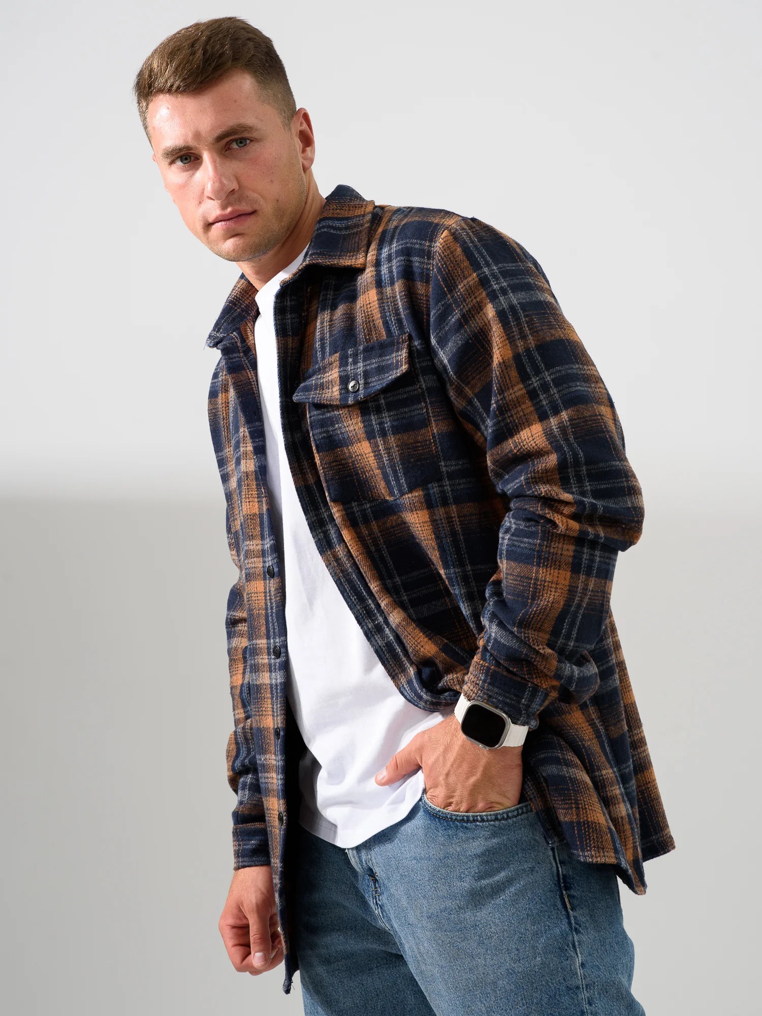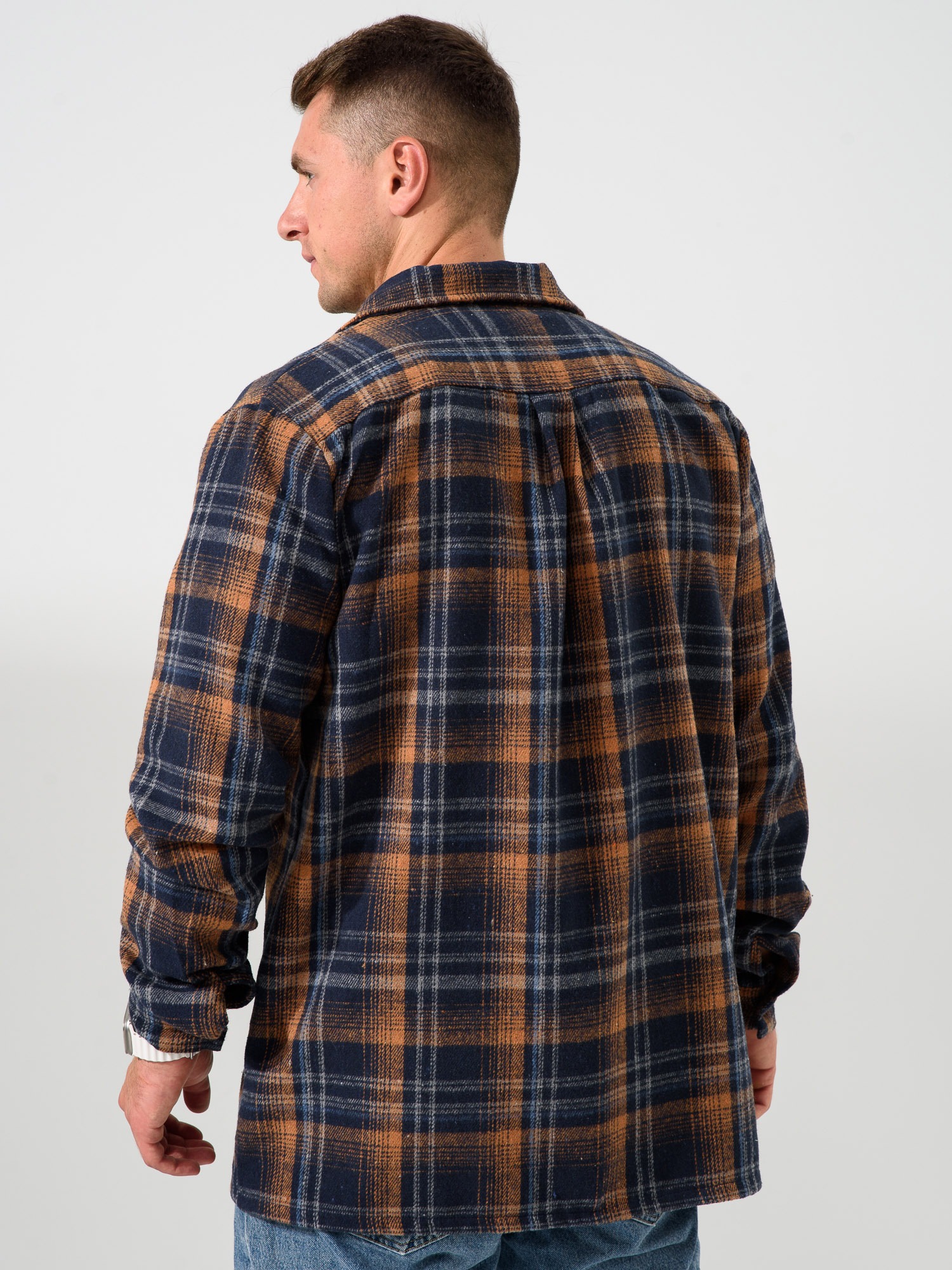 Мужская сорочка верхняя "Скандинавия" 2381-Ф / Сине-оранжевый с длинными рукавами и застежкой на пуговицы. Мужская рубашка отшивается из теплой фланели.
