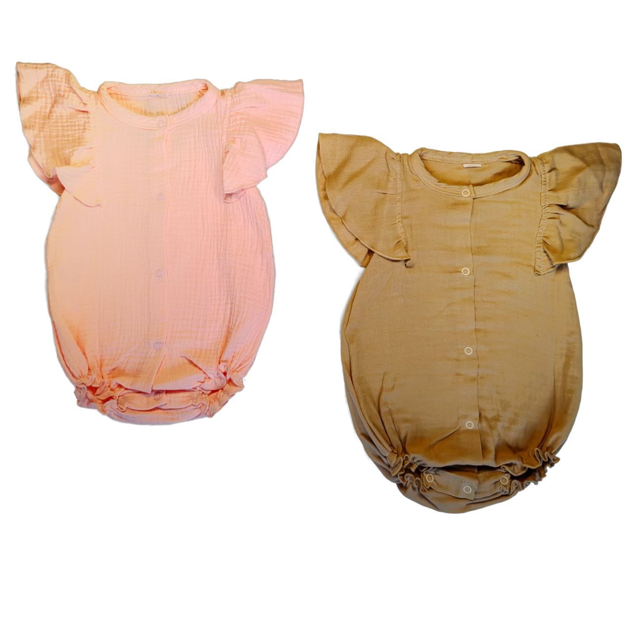 Детский комбинезон из муслина с открытыми ножками. Материал — 100% хлопок, лёгкий и дышащий. Удобный крой, подходит для лета, не раздражает кожу.