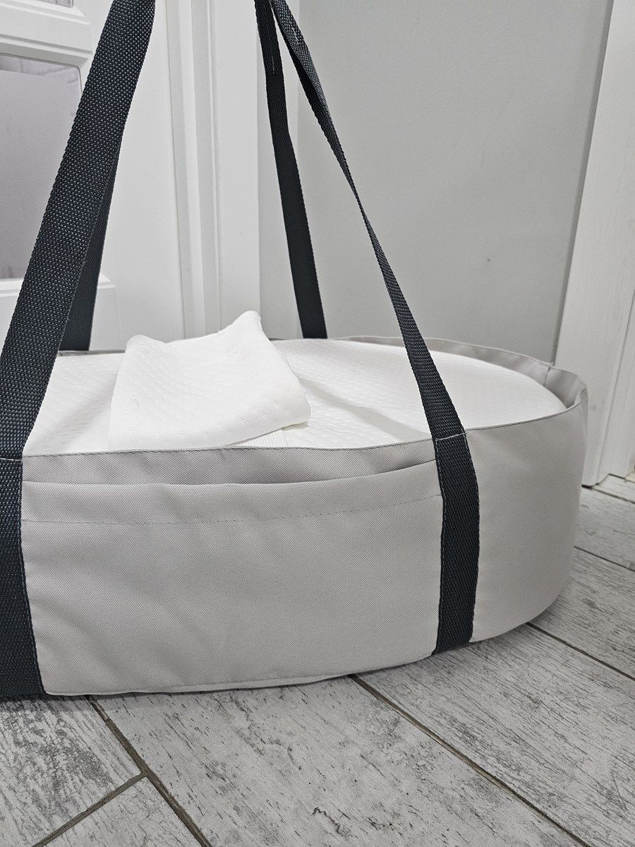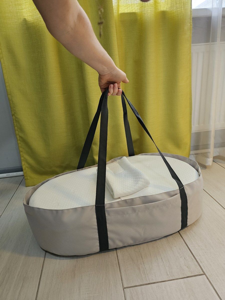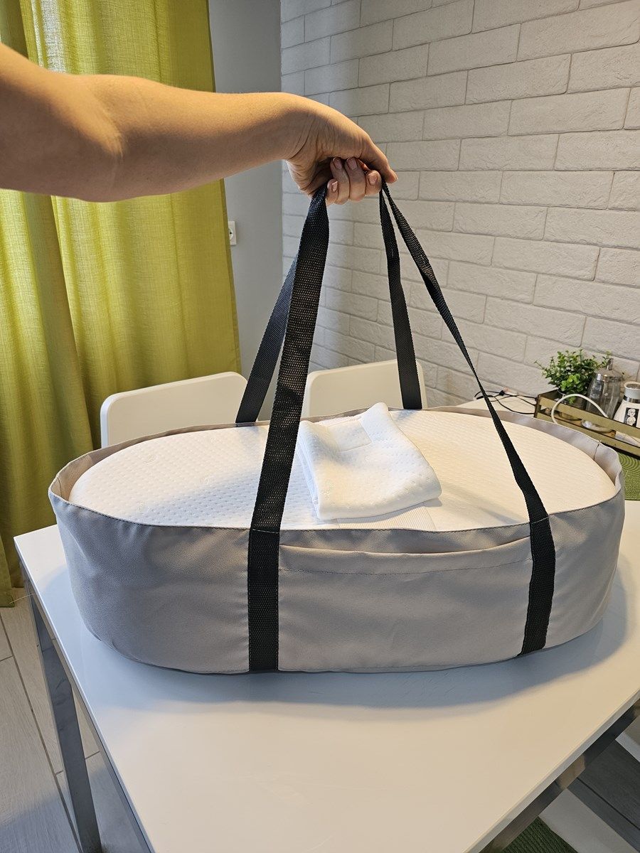 Удобная сумка предназначена для переноски кокона без ребёнка! Благодаря переноске, Вы сможете без труда переносить кокон в другое помещение, автомобиль, а также брать его с собой в поездки. За счет высоких бортов переноски внутренний чехол подушки будет чистым. Подушка-кокон удобно и плотно размещается внутри переноски, подходит для размеров кокона 74*38. Широкие и прочные лямки переноски очень удобны при частом использовании. Материал переноски выполнен из водоотталкивающей ткани оксфорд.