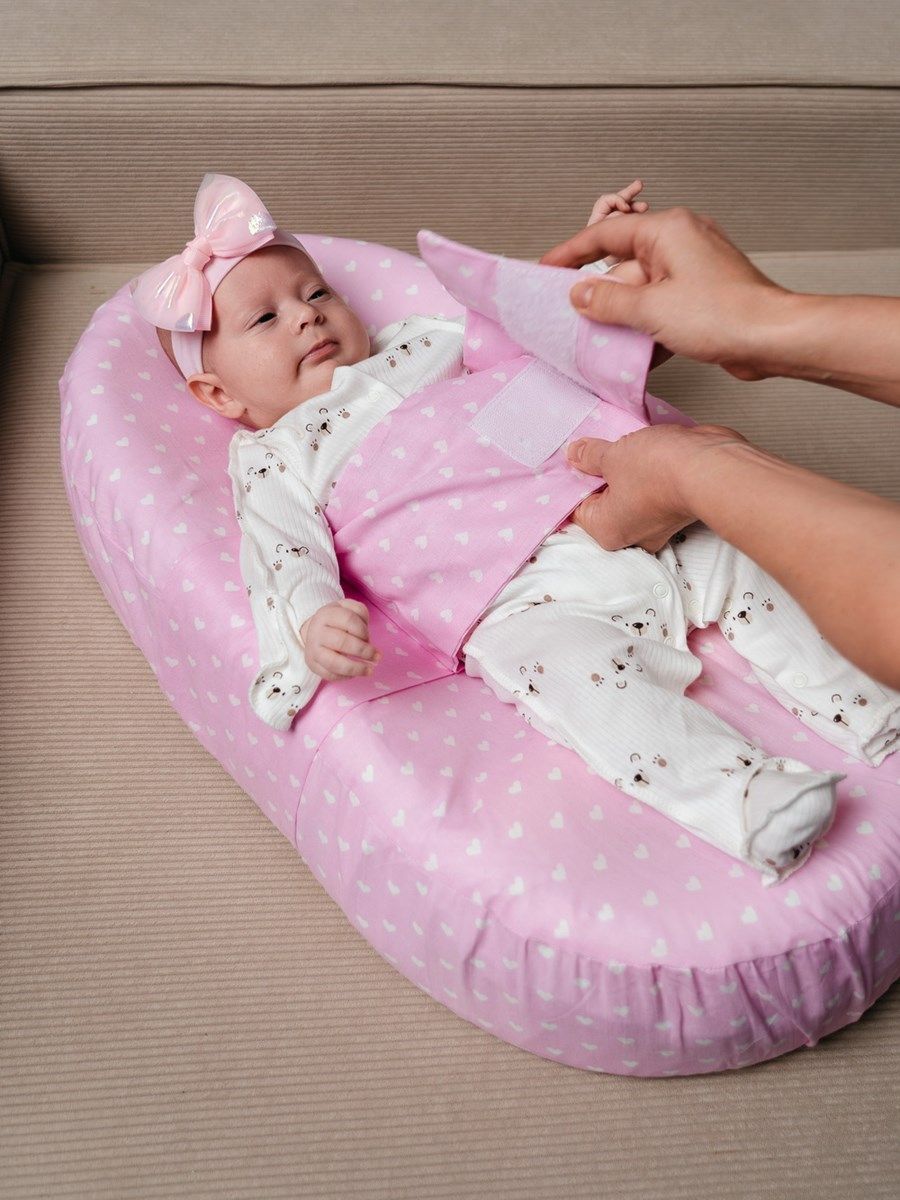 Удобная люлька создана для новорожденных и удобна тем, что её можно расположить как в кроватке, так и на диване. Инновационный материал с «эффектом памяти» мягкий и упругий, поэтому бережно поддержит малыша. Анатомическая форма люльки выполнена с учетом особенностей новорожденного, наличие упругих бортиков обеспечит те самые ощущения ,как у мамы в животике, благодаря которым малыш будет чувствовать себя особенно спокойно , а его сон станет крепче. В комплект входит валик под ноги, который поможет создать «привычное положение», чтобы сон малыша был спокойнее, а широкий пояс на липучке поможет зафиксировать малыша для безопасности. Верхняя поверхность внутреннего чехла выполнена из мулетона - махровой ткани с водонепроницаемой мембраной, которая надежно защитит кокон от влаги. Съёмная бязевая наволочка из 100% хлопка мягкая и шелковистая, ее эластичность создаст максимально комфортные ощущения, не сковывая движений малыша.