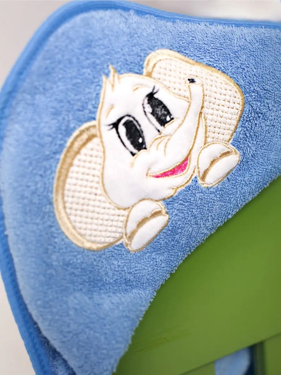 Полотенце махровое с уголком / Слоник выполнено из махрового полотна - 100% натуральный хлопок. Полотенце с уголком детское обеспечивает его мягкость, впитываемость и долговечность. Махровое полотно создает приятные ощущения при использовании и сохраняет свои свойства даже после многократных стирок. Такое полотенце станет отличным выбором для купания ребенка, а милый дизайн в виде уголка делает его особенно привлекательным и будет являться отличным подарком для молодых родителей. Полотенце декорировано авторской вышивкой и аппликацией. Края полотенца обработаны декоративным кантом. Внутренняя часть уголка закрыта полотном, что исключает соприкосновение кожи ребенка с вышивкой.