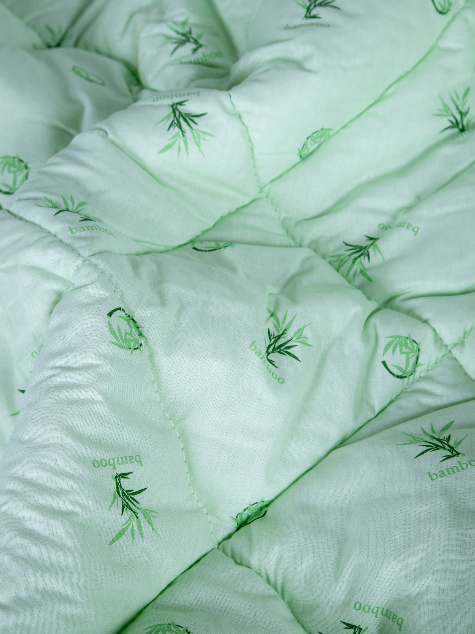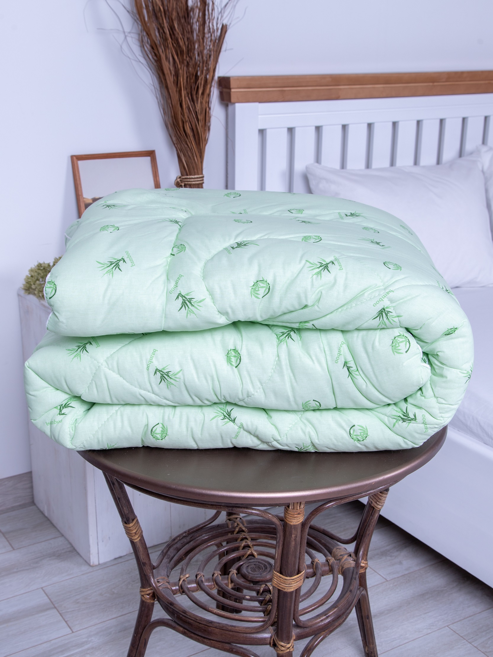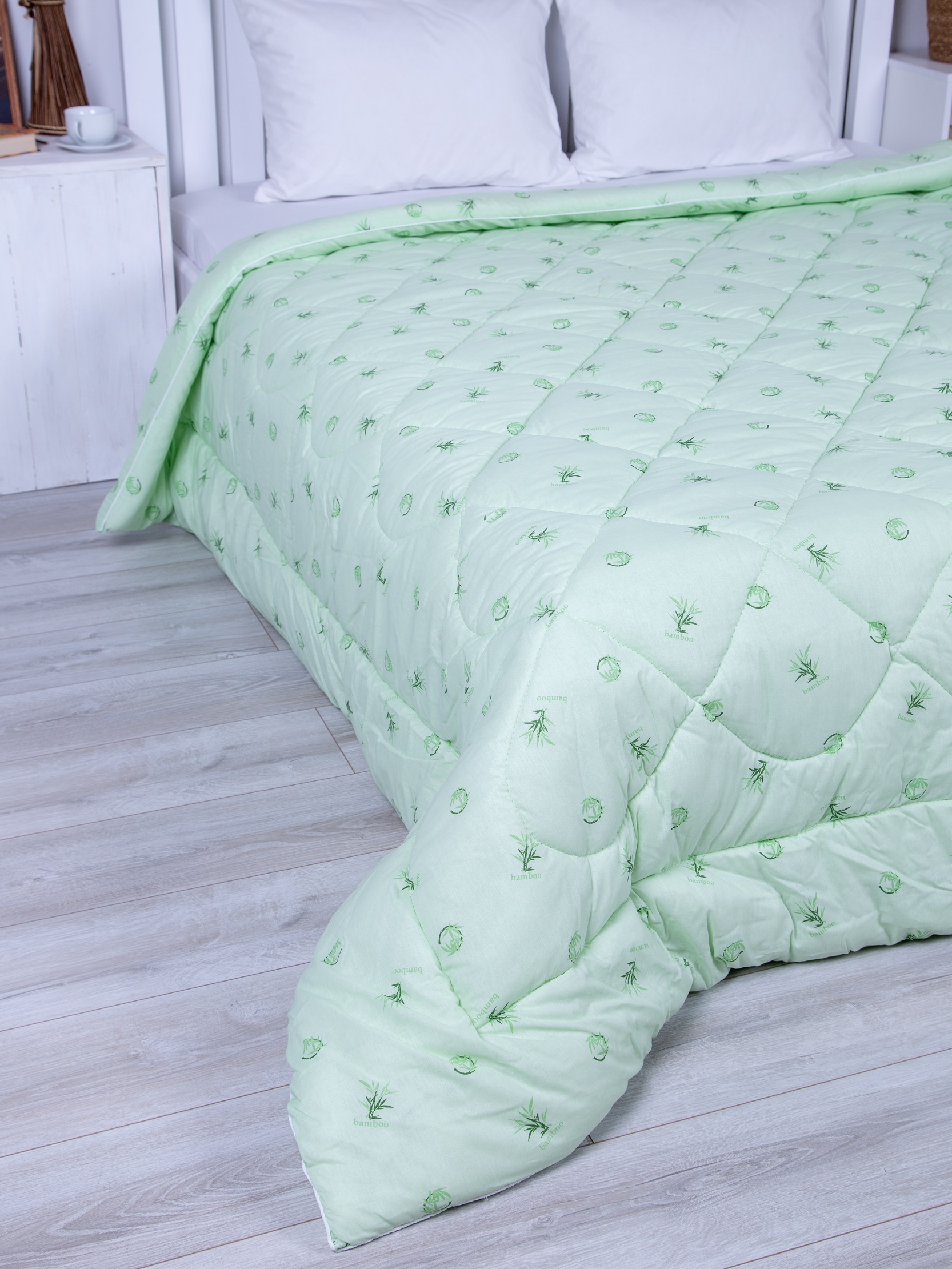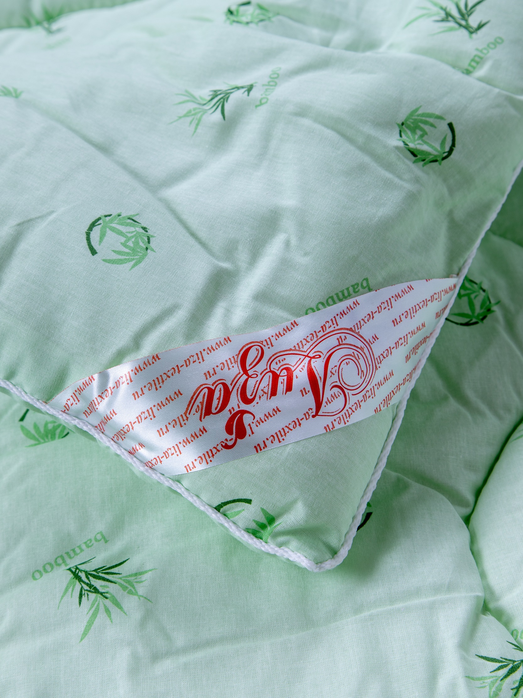 Одеяло стёганое "Бамбуковое волокно" с наполнением из бамбукового волокна, утолщенное - плотность не менее 400 гр/кв.м. Одноигольная стежка, очень теплое и мягкое, прекрасно дышит и обладает антибактерицидным эффектом. Отделочный элемент - вшивной кант. Упаковка - сумка ПВХ с ручками.
