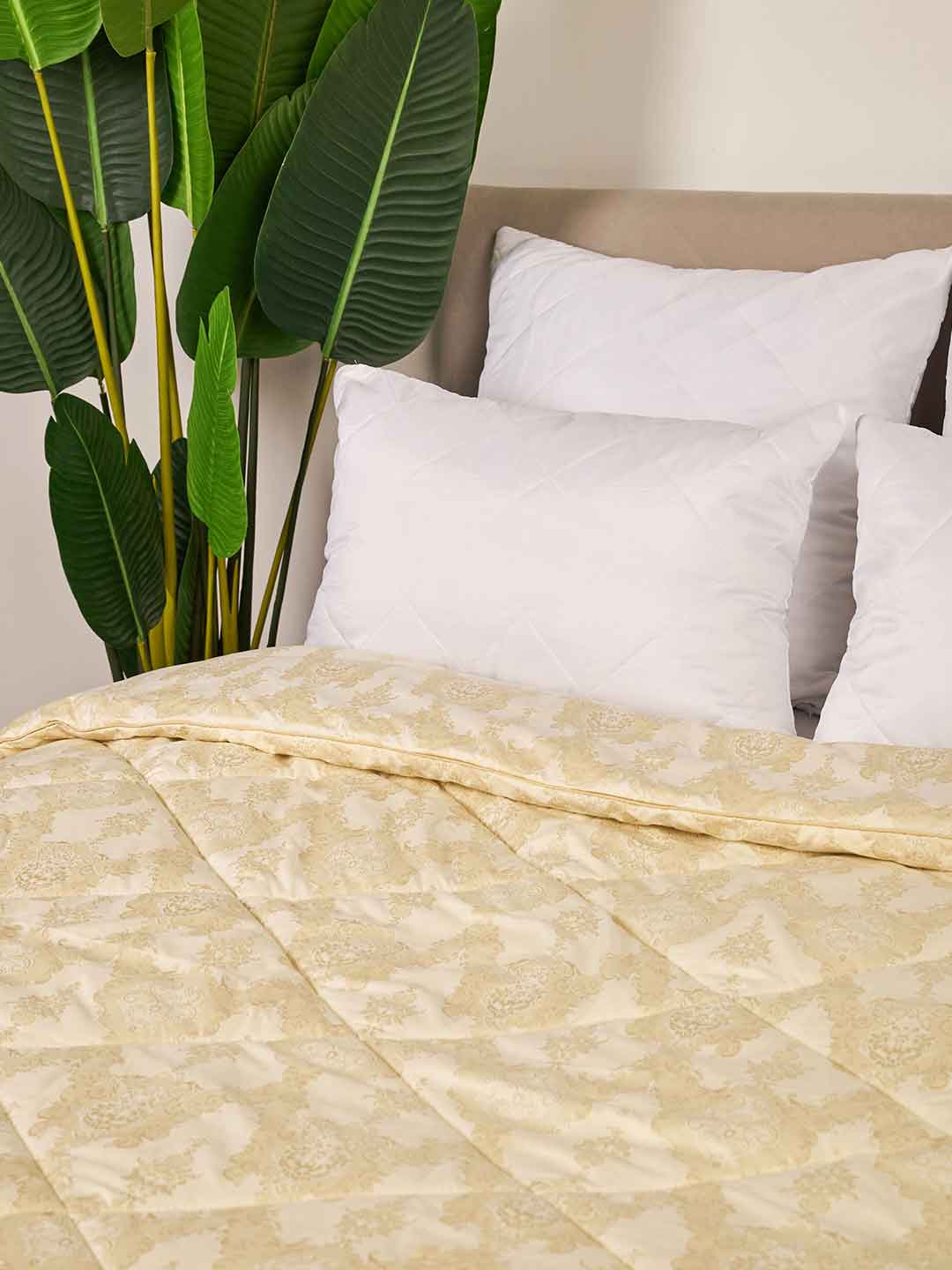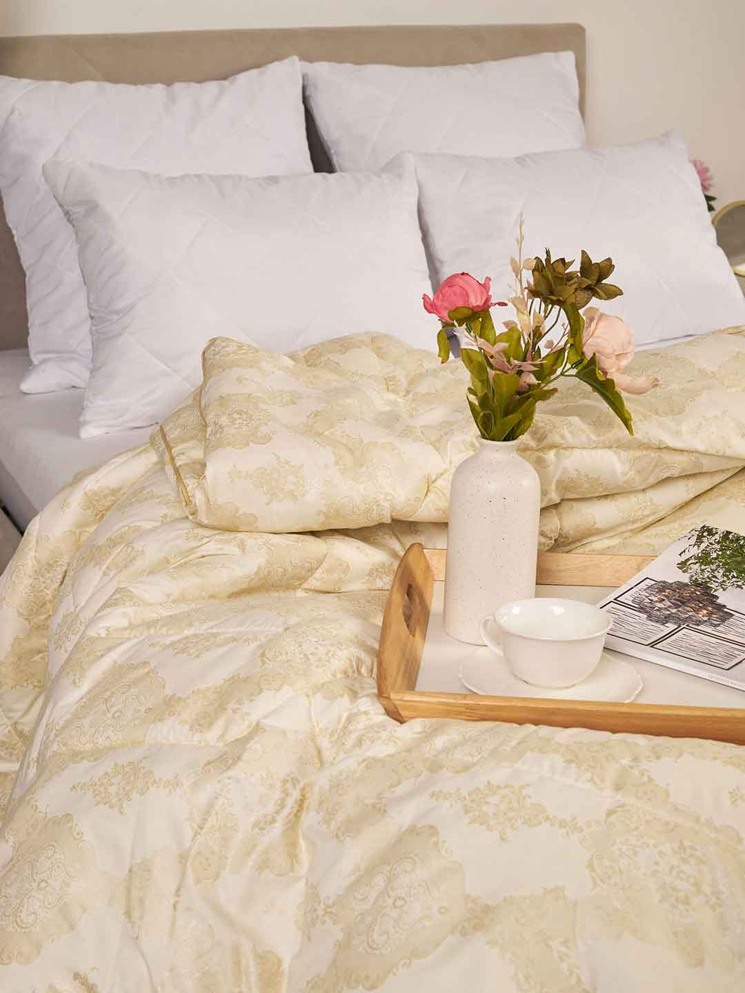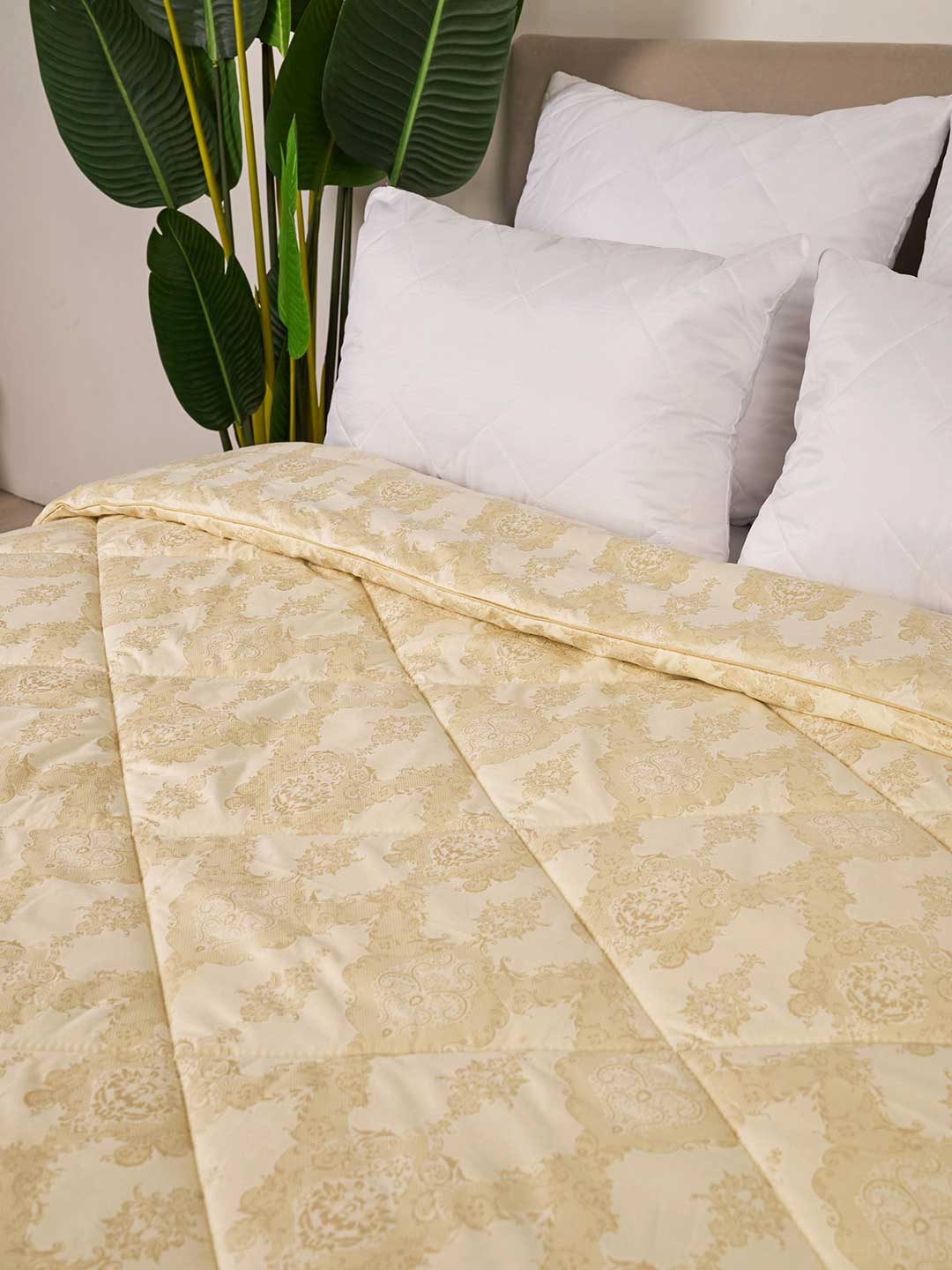 Одеяло "Сон" облегченное, обладает необычайной мягкостью, легкостью и шелковистостью, прекрасно сохраняет тепло. Козья шерсть, входящая в состав наполнителя, является экологически чистым и натуральным материалом. Она способствует комфортному здоровому сну.