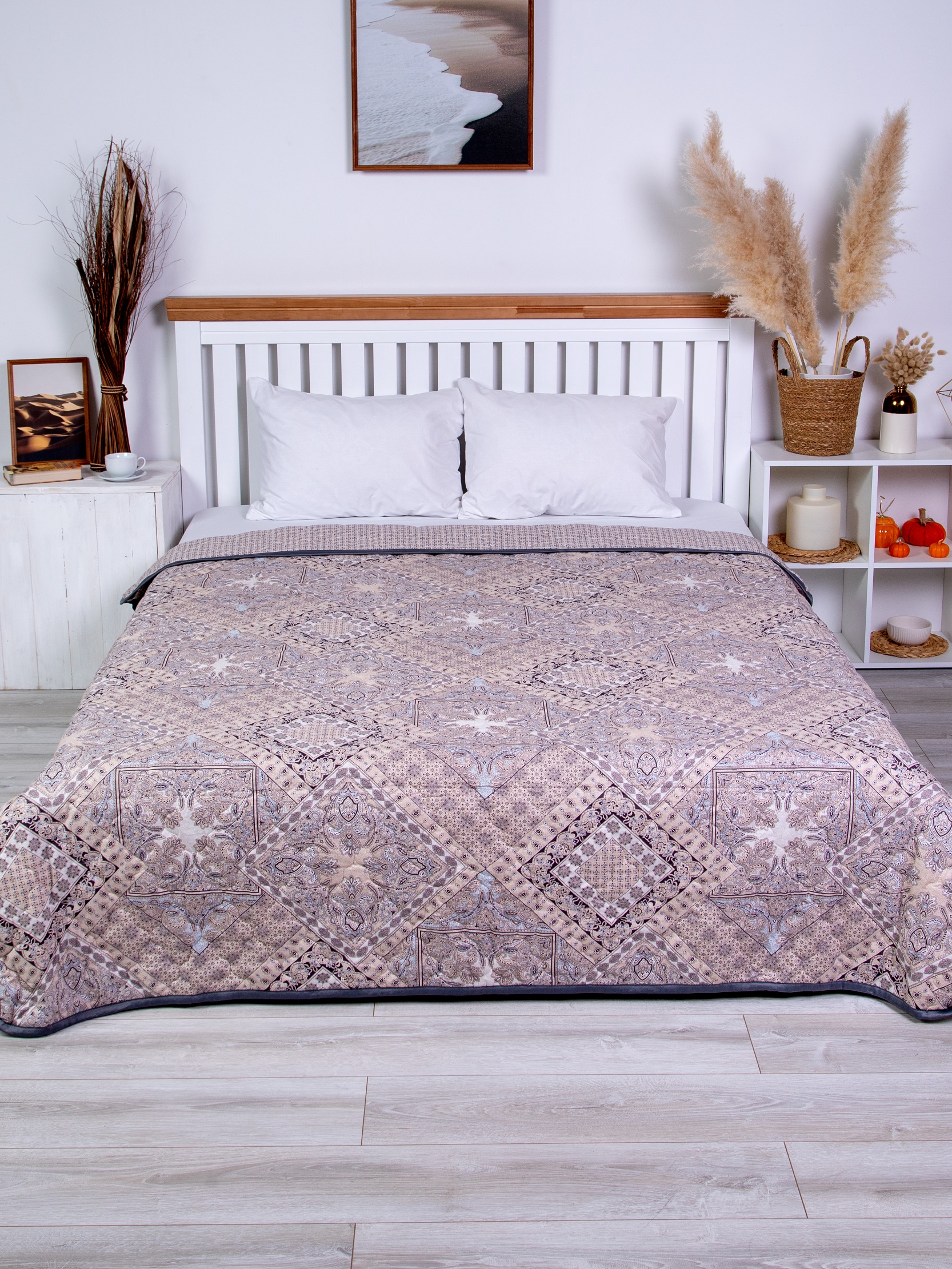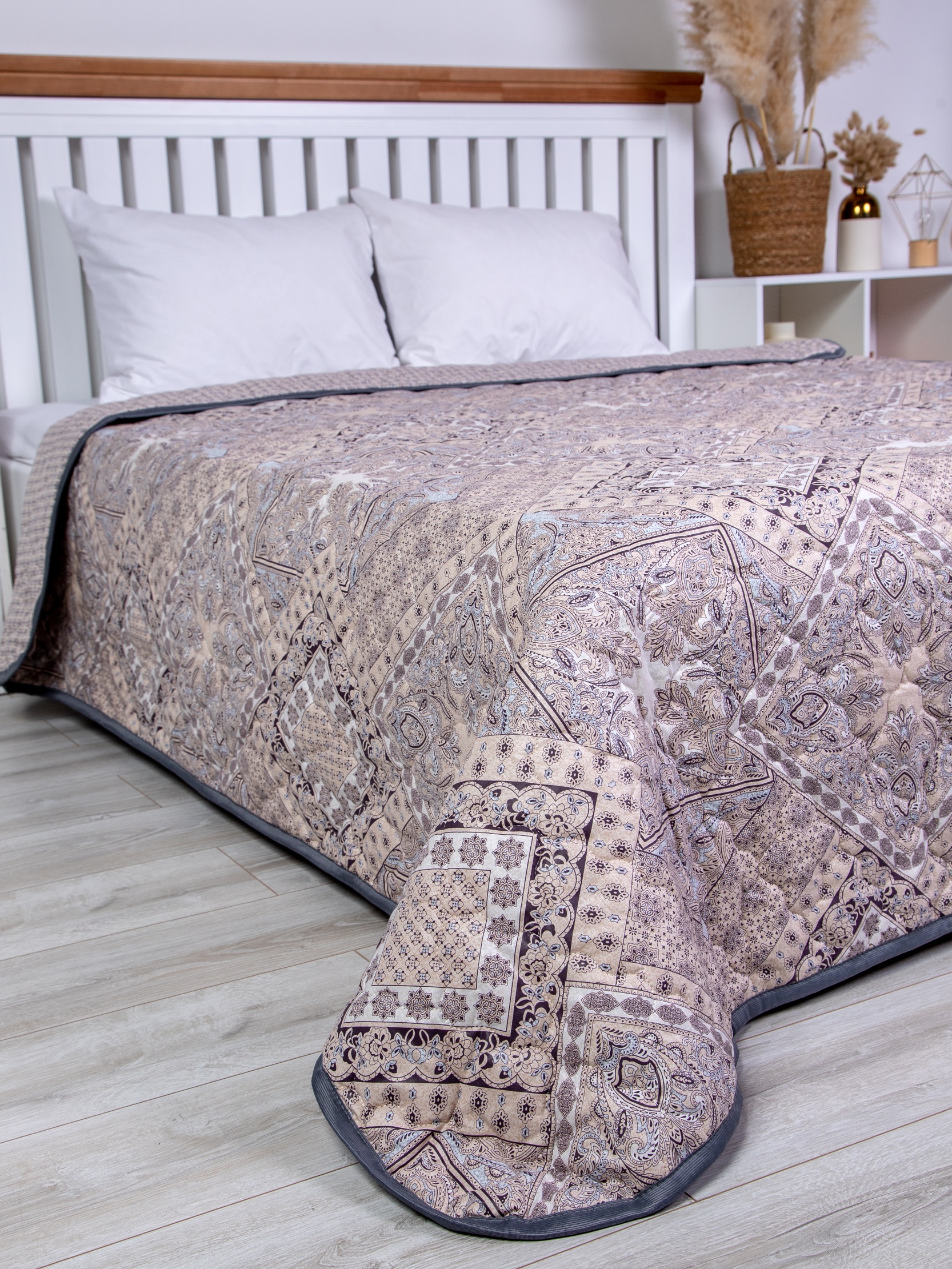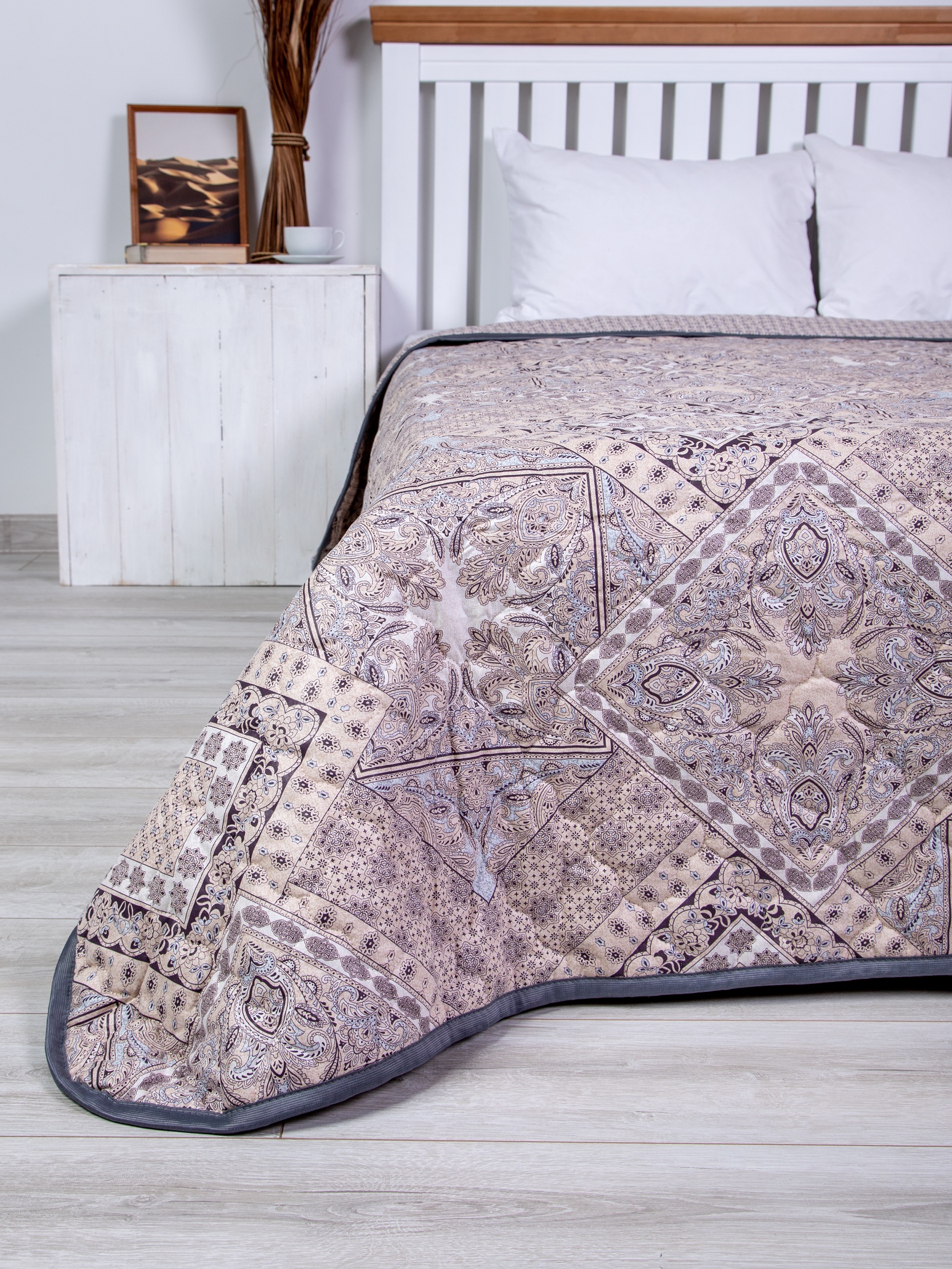 Одеяло с наполнением из термофиксированного льняного волокна плотностью 150 гр/кв.м. окантовано широкой тесьмой. Прекрасное облегченное одеяло-покрывало. Волокна льна - это экологически чистый растительный наполнитель, не вызывающий аллергии. Одеяло прекрасно "дышит" и сохраняет тепло. Изделие премиум-класса. Упаковка - сумка ПВХ с ручками.