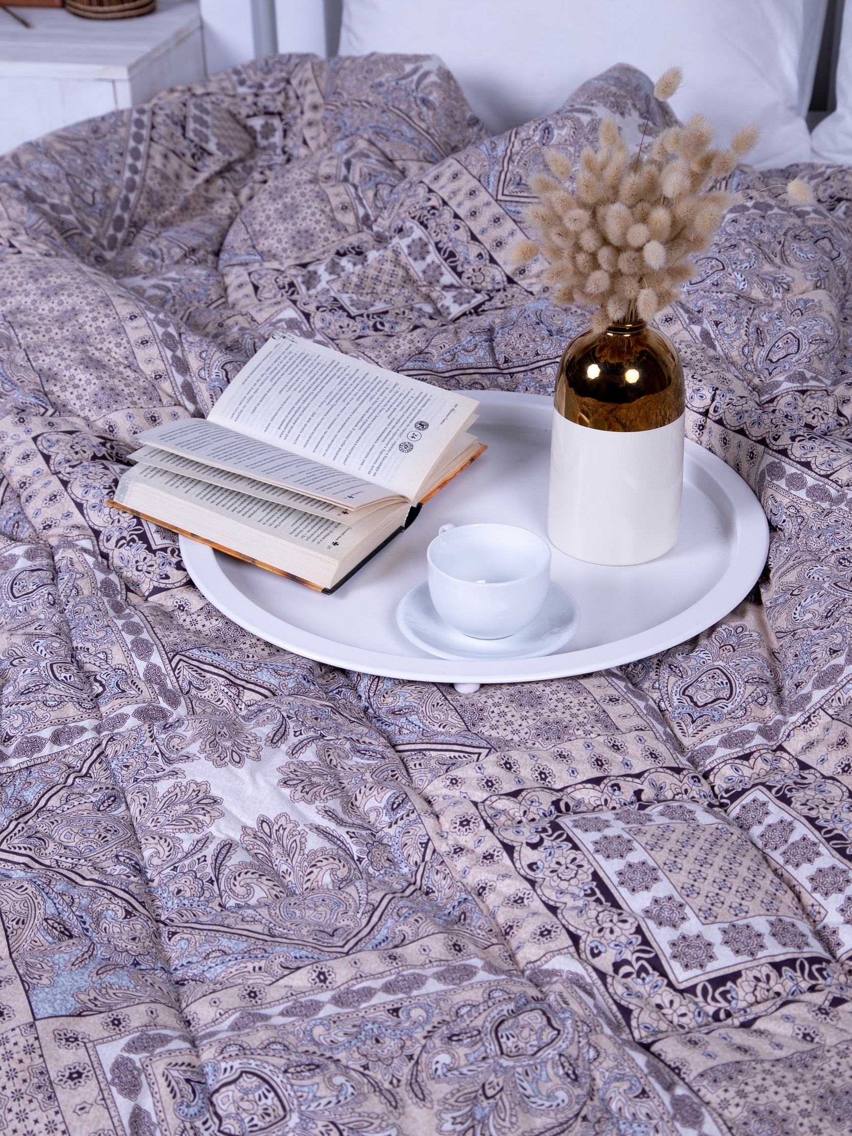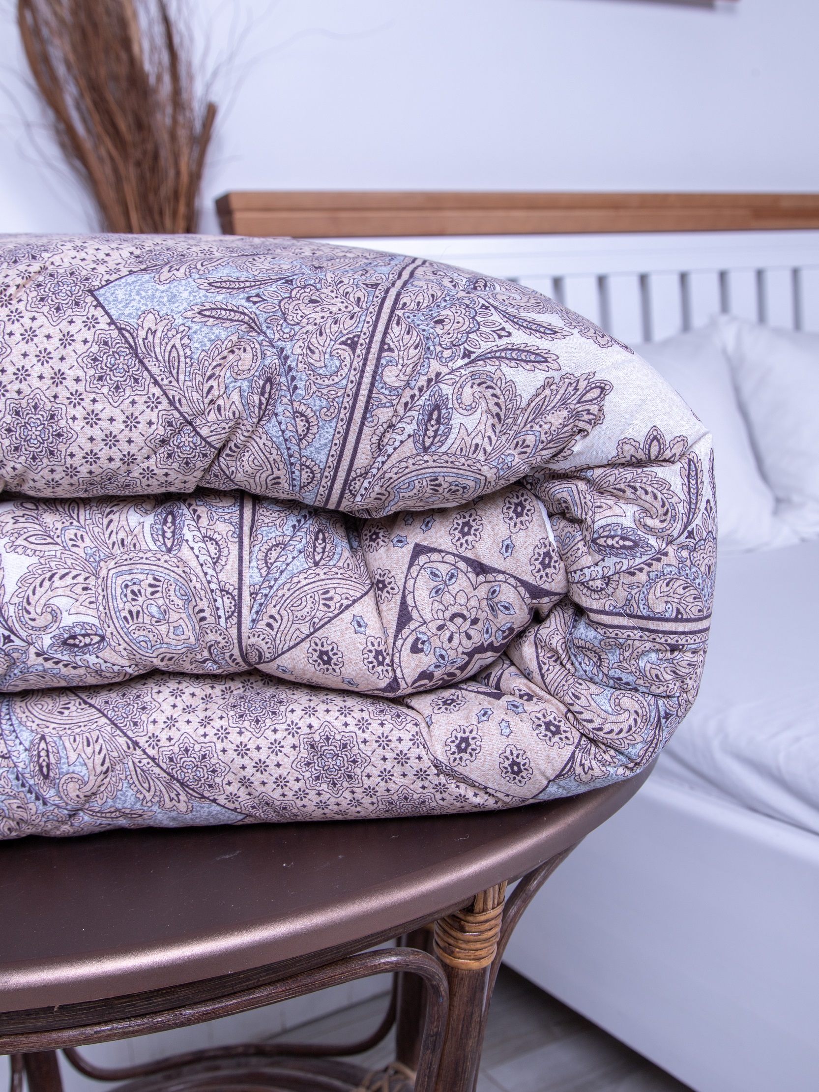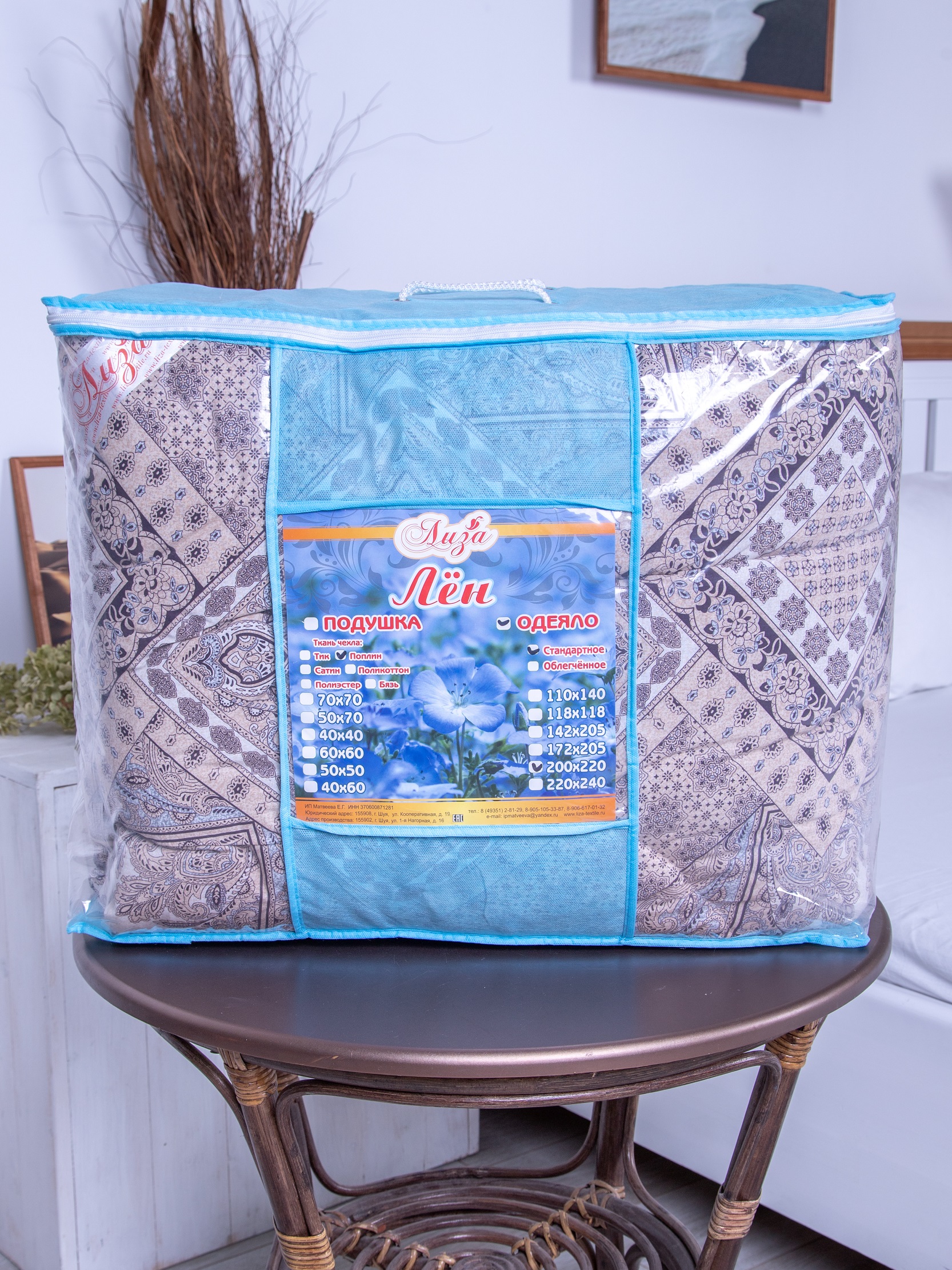 Одеяло с наполнением из термофиксированного льняного волокна плотностью 400 гр/кв.м. Волокна льна - это экологически чистый растительный наполнитель, не вызывающий аллергии. Одеяло прекрасно "дышит" и сохраняет тепло, легкое и мягкое. Изделие премиум-класса. Отделочный элемент - вшивной кант. Упаковка - сумка ПВХ с ручками.