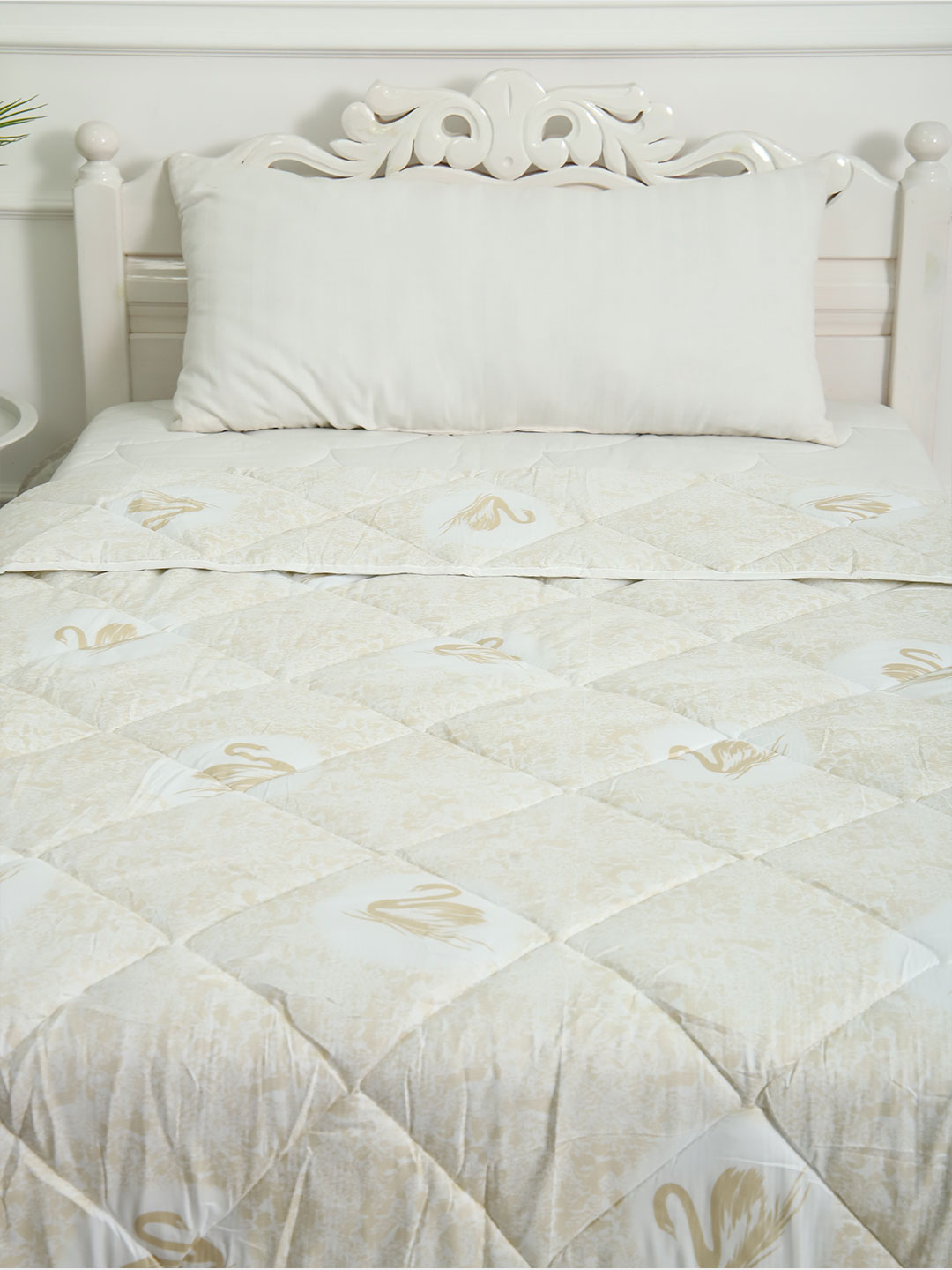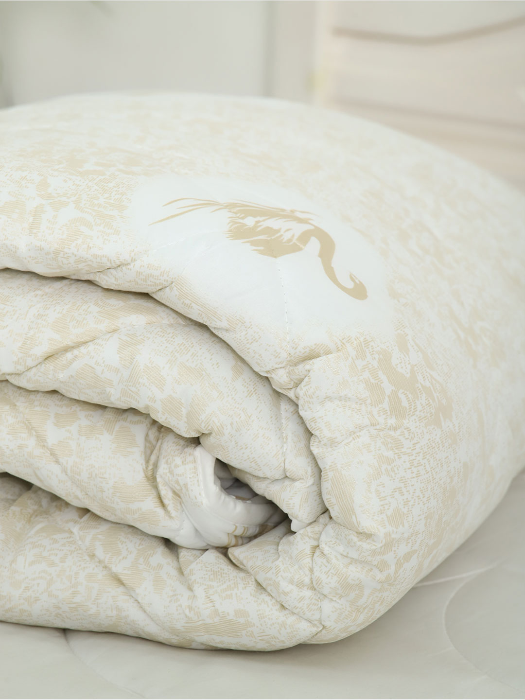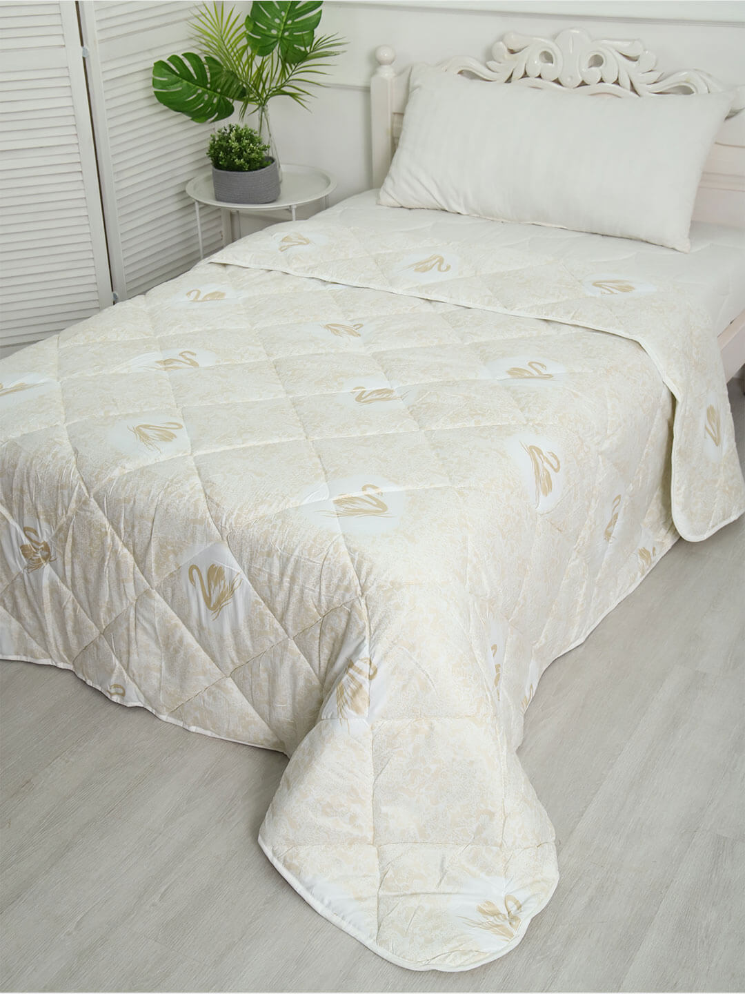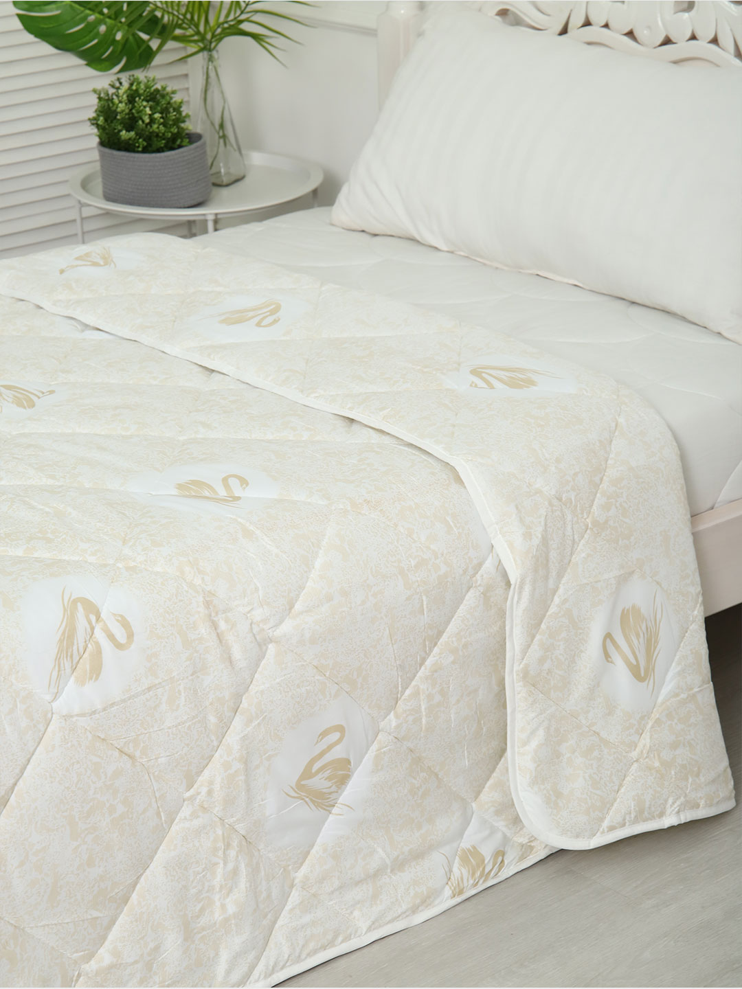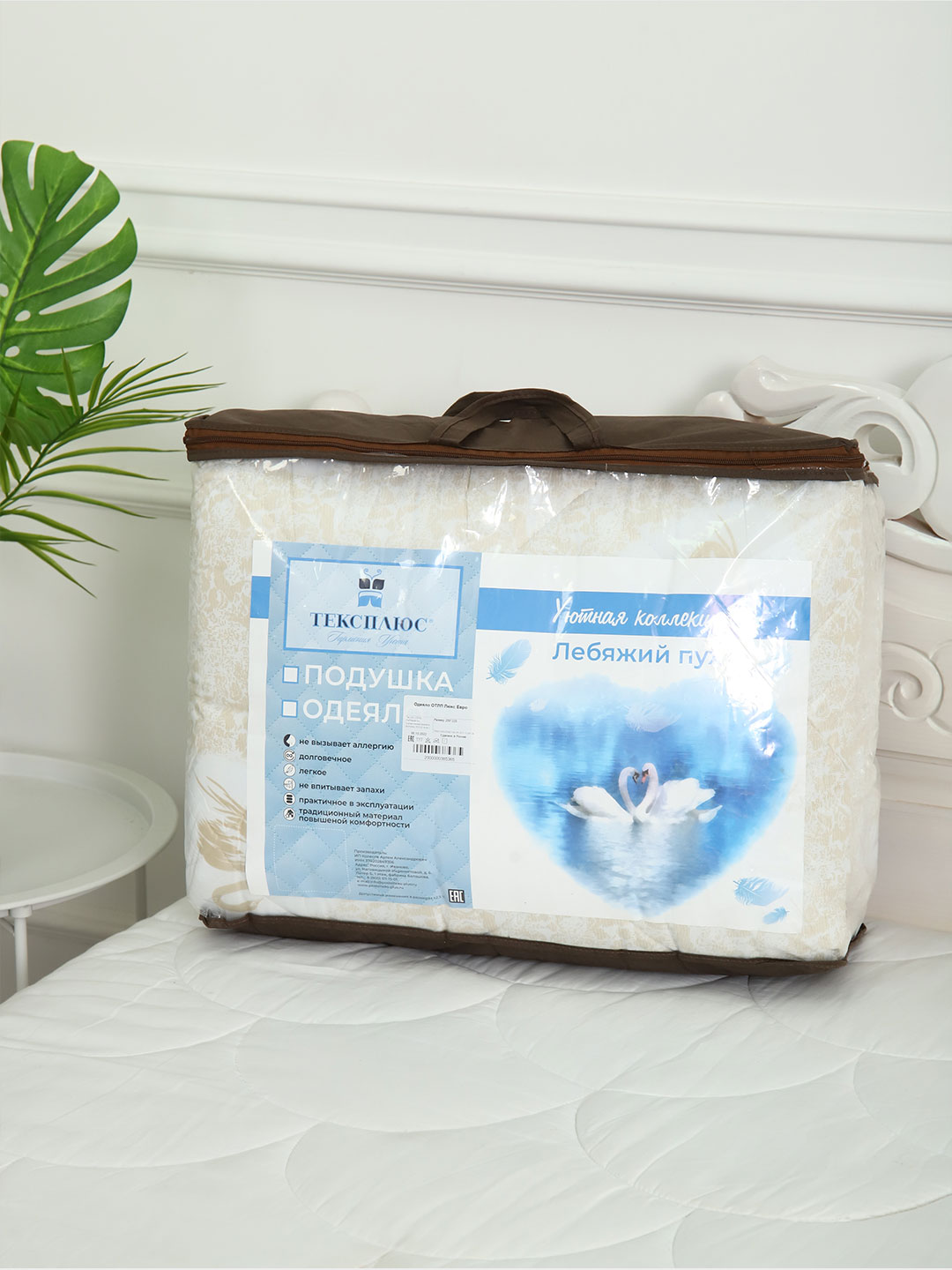 Изделие обладает необычайной мягкостью, легкостью и шелковистостью, прекрасно сохраняет тепло. Лебяжий пух, входящий в состав наполнителя, являясь экологически чистым натуральным материалом, способствуют комфортному расслабленному сну.
