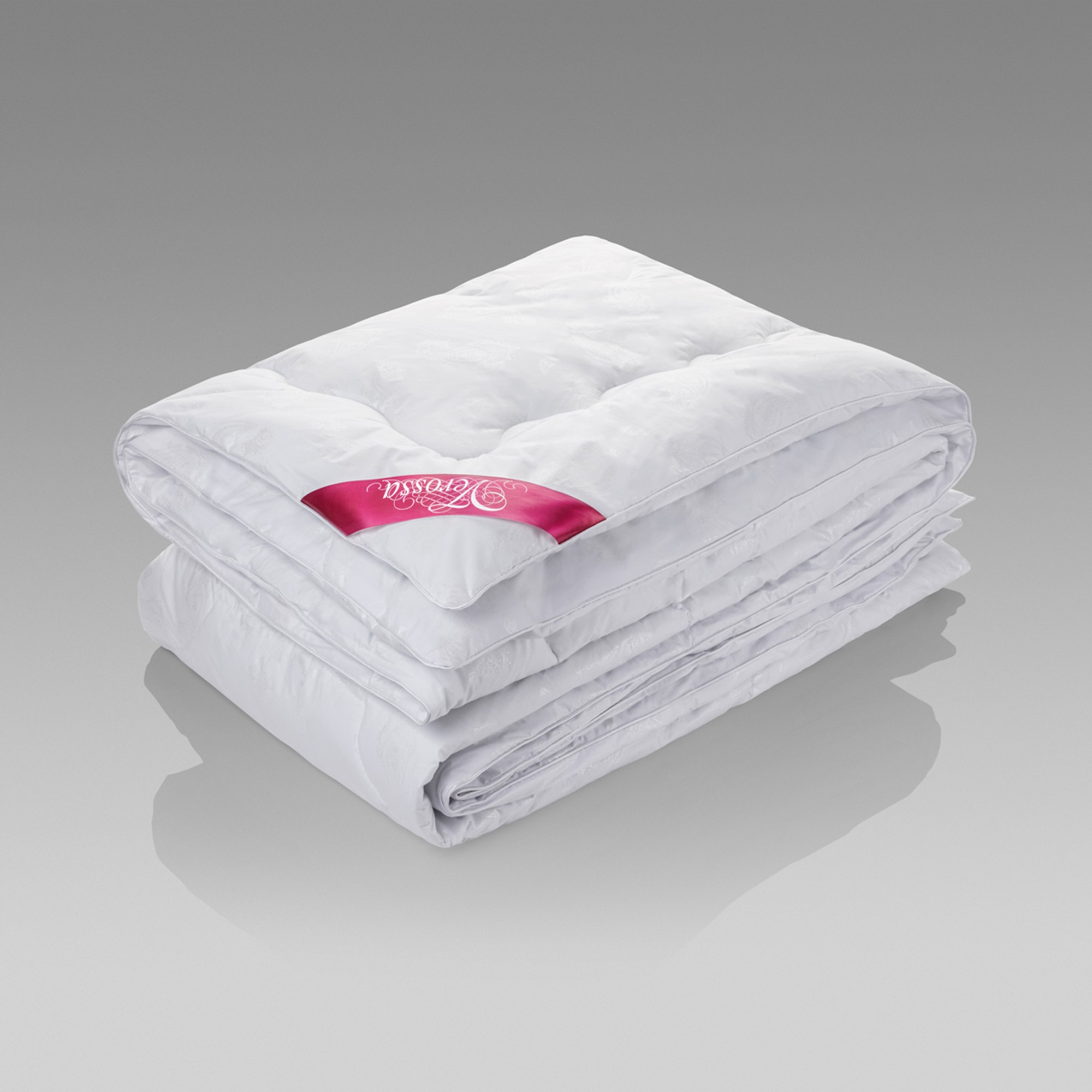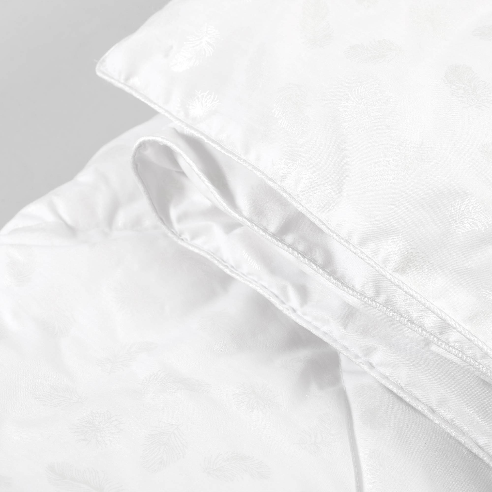 Наполнитель состоит из тончайшего волокна, структура которого повторяет структуру натурального лебяжьего пуха. Волокно в десять раз тоньше волоса человека, именно поэтому изделия из него такие пышные, невесомые и при этом упругие. Они отлично регулируют тепло, препятствуют возникновению бактерий и образованию пылевого клеща. Прочная натуральная ткань чехла с «перламутровым» узором приятна на ощупь, не требует особого ухода.