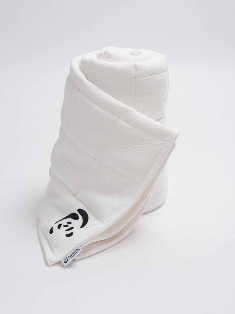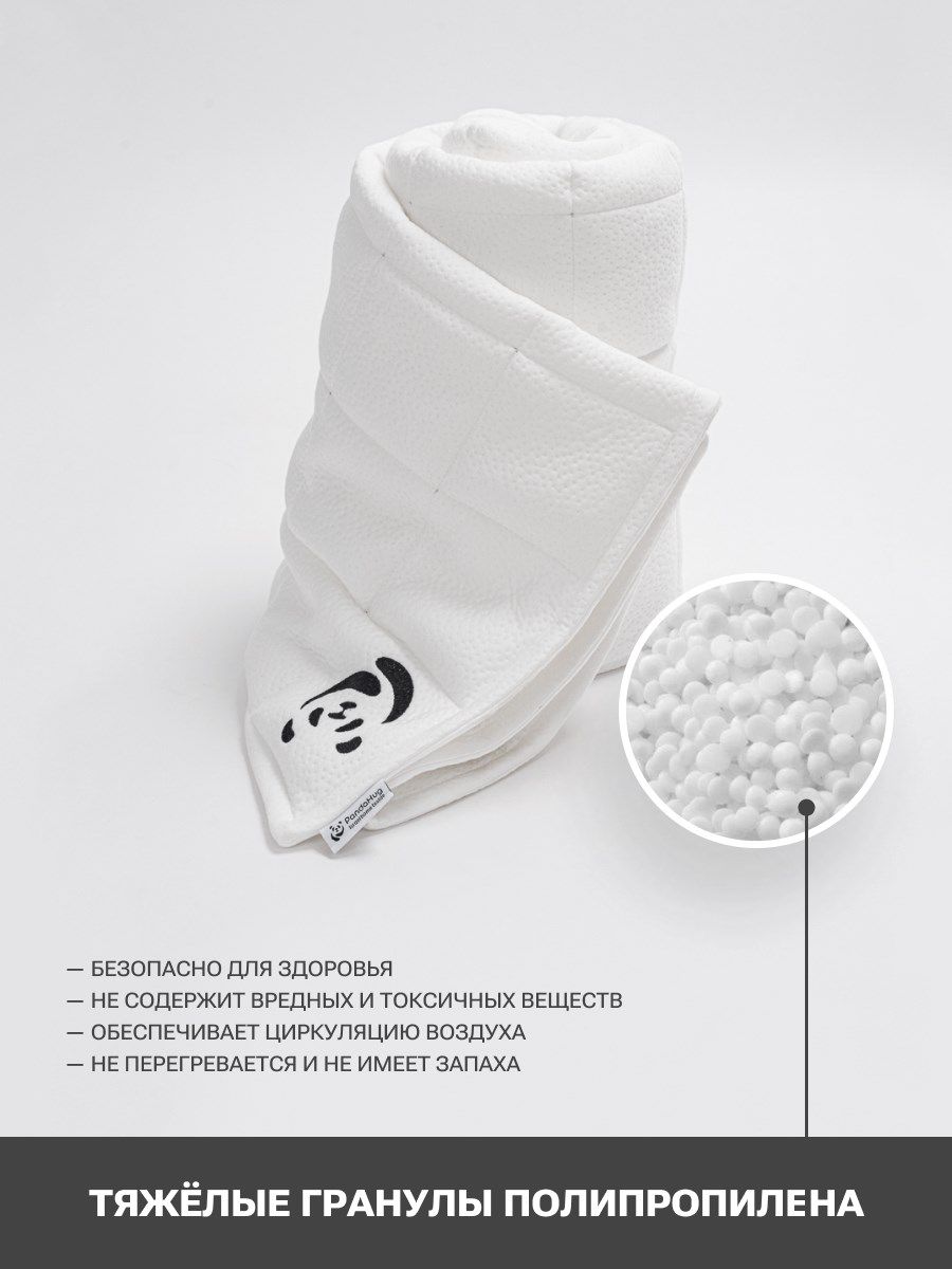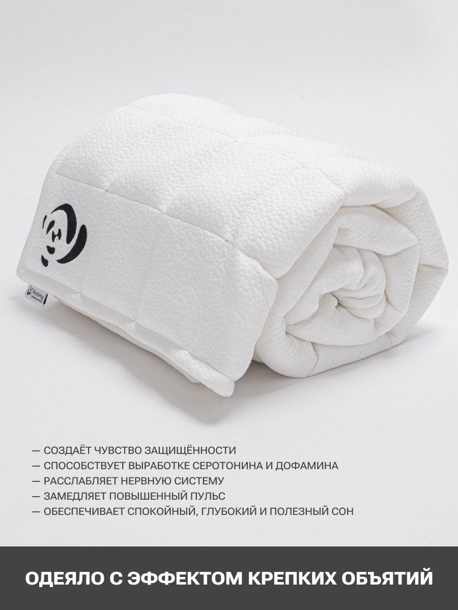 Одеяло выполнено из плотной трикотажной ткани и равномерно наполнено гранулами пропилена для утяжеления, чтобы создавать терапевтический эффект. Тяжелый вес оказывает давление на тело, имитируя крепкие объятия и создавая чувство защищенности. Вследствие этого у ребенка увеличивается выработка эндорфинов, серотонина и замедляется повышенный пульс. Последнее особенно важно для детей, которые, разыгравшись, не могут успокоиться и перейти ко сну.