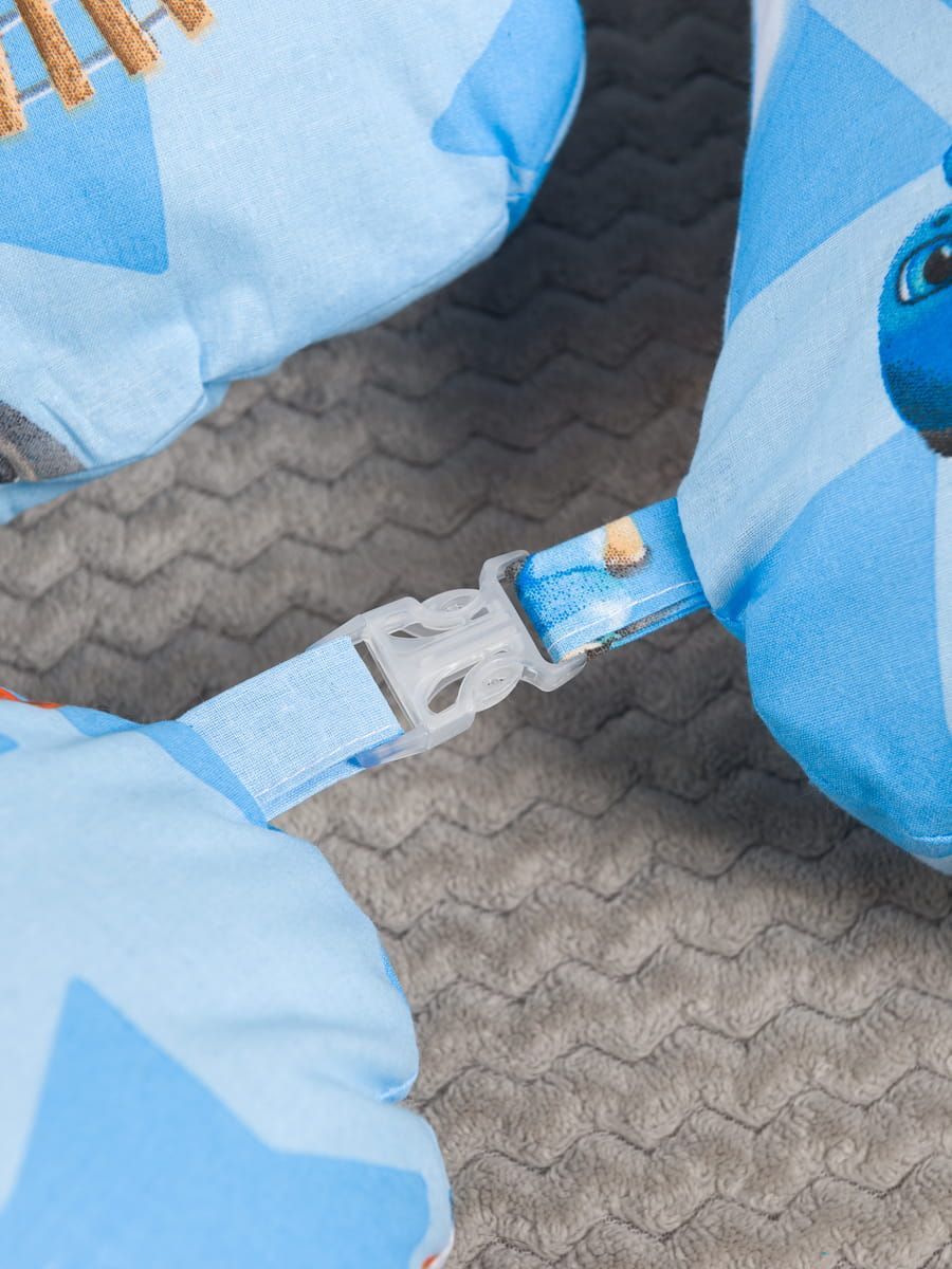 Подушка наполнена мягким воздушным холлофайбером. Все материалы гипоаллергенны и безопасны для новорожденных, изделие можно стирать.