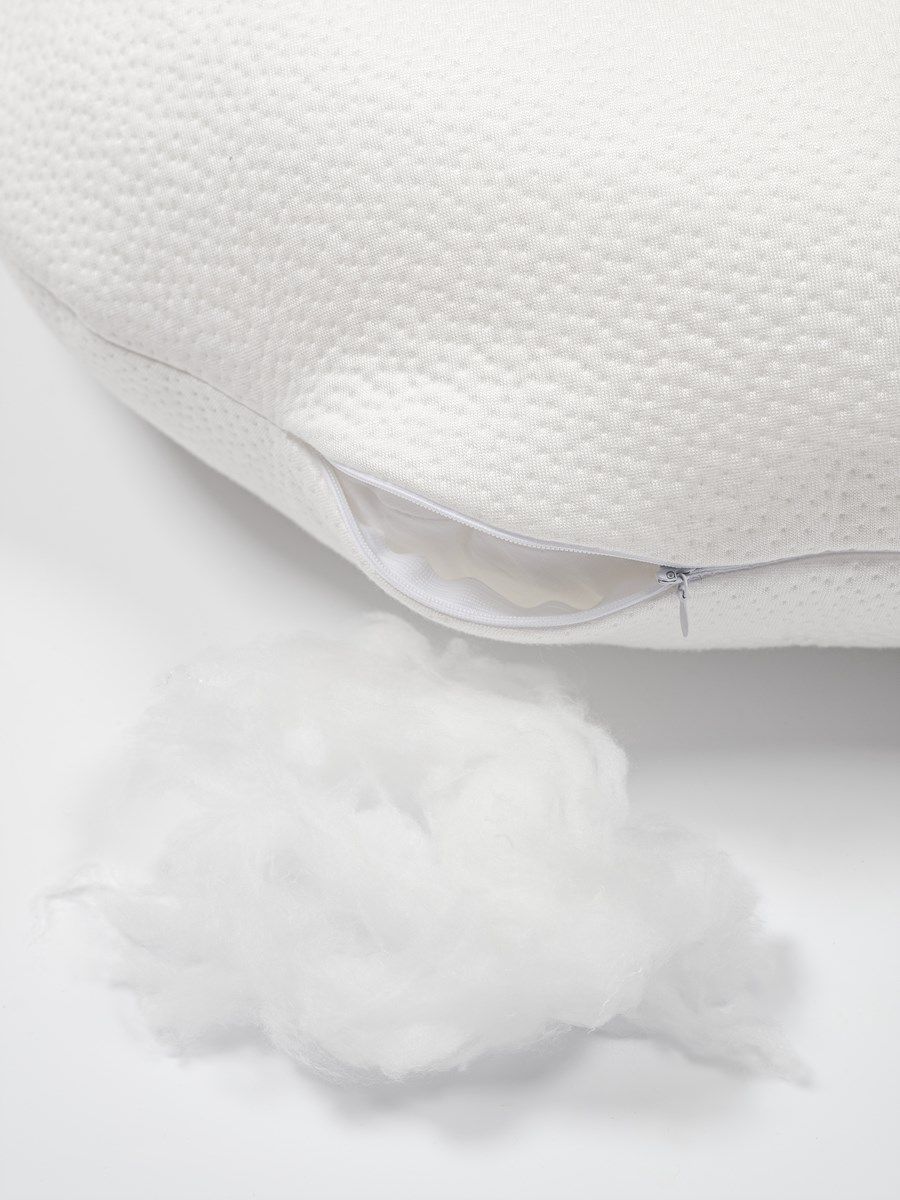 Подушка-подкова PandaHug наполнена гипоаллергенным материалом — искусственный лебяжий пух. Воздушный наполнитель не теряет со временем своей мягкости и пышности: его достаточно слегка взбить. Верхний чехол на молнии из бамбуковой ткани нежный и приятный на ощупь — спать на нем одно удовольствие!