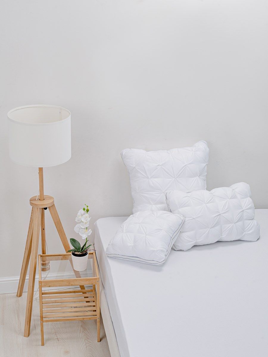 Верх пуховой подушки выполнен из натуральной хлопковой ткани, идеально подходящей для сна. Оригинальная стежка воссоздает на поверхности многочисленные секции с экопухом. Уникальная технология не только делает дизайн эксклюзивным, но и добавляет объёма и воздушности. Такой домашний текстиль можно использовать и в качестве декора!