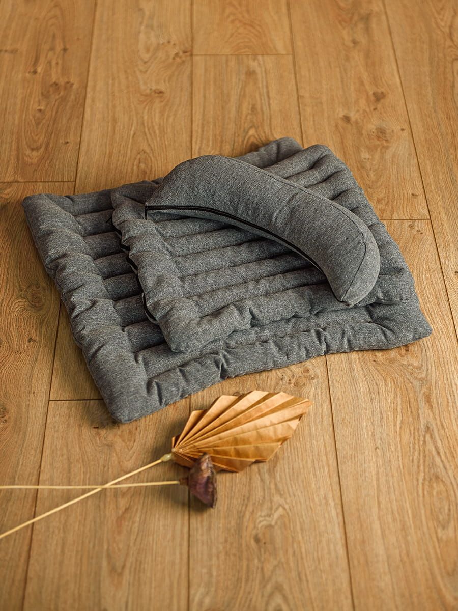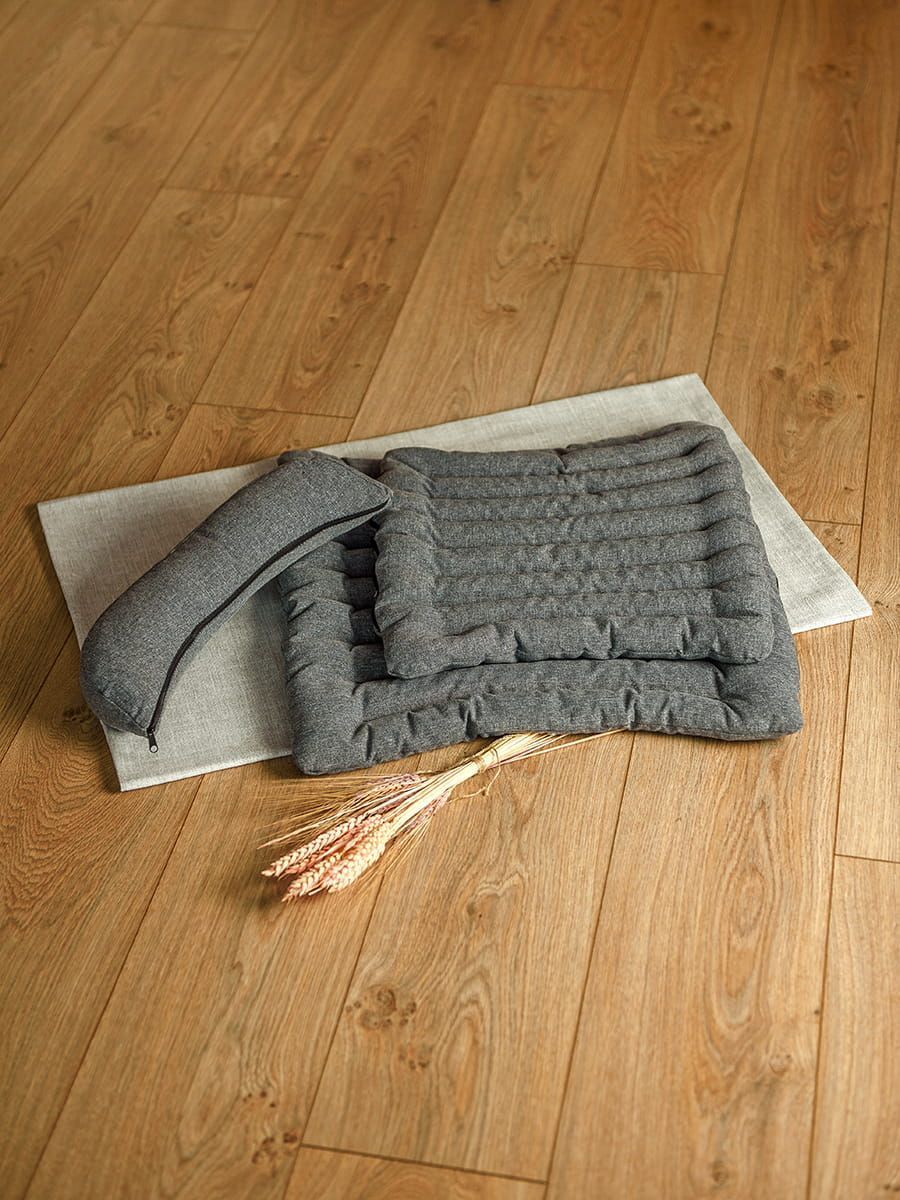 Квадратные подушки «ЭКО» с плотными продольными валиками используются для занятий йогой и выполнения самых разнообразных асан. Они представлены в двух размерах и отличаются жесткостью, достаточной для поддержания тела в нужном положении. Подушки «ЭКО» хороши и в повседневной жизни в качестве сидушек на стульях, креслах и автомобильных сидениях. С ними занятия йогой станут более эффективными, а жизнь – комфортной. Подушка «Полумесяц» поддерживает коленные и тазобедренные суставы, шею, поясницу, помогает раскрыть грудной отдел, выполнить прогибы вперед и назад. Благодаря форме полумесяца подушка хорошо разгружает позвоночник и облегчает выполнение сидячих асан, таких, как поза лотоса, сиддхасана и другие. Гречишная лузга в составе подушек обладает мягким массажным эффектом, улучшает кровообращение и снимает напряжение. Благодаря твердости наполнителя подушки полностью повторяют рельеф тела, оказывая ортопедическую поддержку во время занятий.