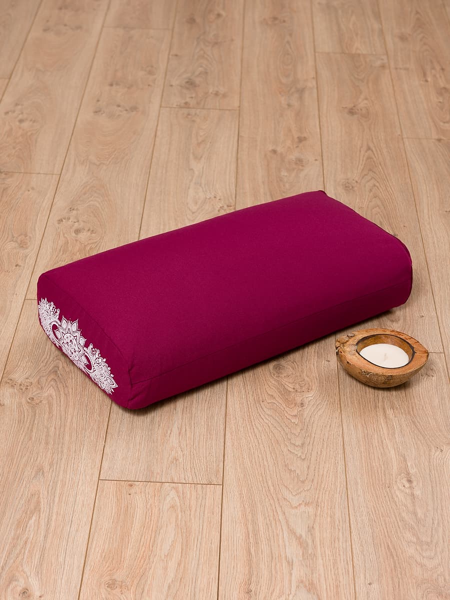 Болстер прямоугольный из гречихи незаменим в практике йоги, а также для домашних упражнений на мягкую растяжку мышц спины.