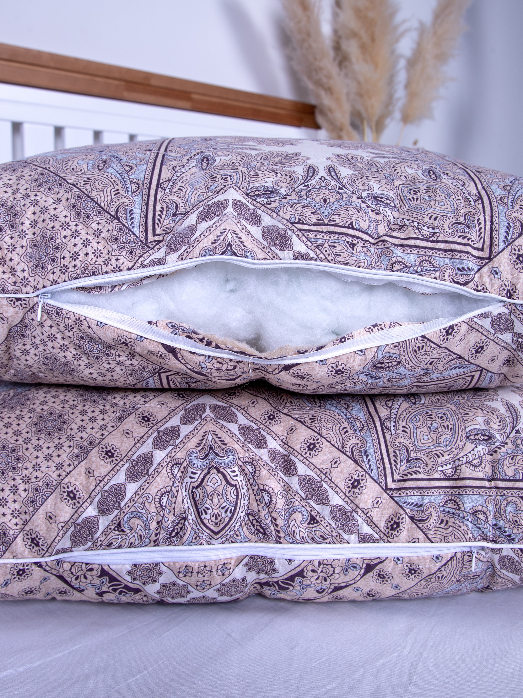 Ткань верха - поплин (хлопок 100%). Чехол простеган на многоигольной машине с термофиксированным полотном «Лён» плотностью 100г/кв.м Наполнитель - искусственный лебяжий пух (высокосиликонизированное микроволокно). Отделочный элемент - вшивной кант. Упаковка - сумка ПВХ