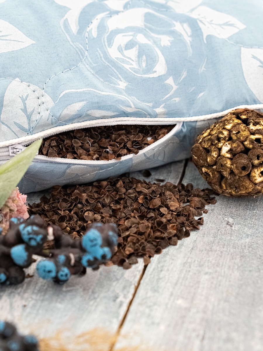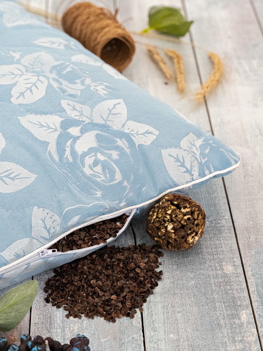 Эргономичная подушка для сна с наполнителем из гречихи оснащена молнией, поэтому можно легко регулировать высоту изделия, отсыпав нужное количество наполнителя из гречи. Подушка с лузгой гречихи это незаменимый помощник для людей, страдающих от храпа, аллергии или бессонницы. Спальная подушка с гречкой оказывает эффект микромассажа, что благотворно влияет на кровообращение, нормализует давление и улучшает качество сна. Благодаря уникальному наполнителю из гречневой лузги, массажная подушка подстраивается под контуры тела, позволяя принимать максимально удобную позу для сна. Наполнитель из гречки обеспылен, путем антибактериальной обработки паром, что является плюсом при выборе аналогичных изделий. Гипоаллергенная гречневая подушка в меру жесткая 50х70 и 40х60 станет находкой для тех, кто хочет избавиться от головных и суставных болей в теле. Подушка с гречневой лузгой ортопедическая, обладает эффектом памяти и подстраивается индивидуально под удобство каждого, обладает ортопедическим эффектом, избавляя от болевых ощущений во время и после сна. Анатомическая подушка для шеи с гречневой шелухой в дополнительном уходе не нуждается. Такая гречишная подушка с натуральным наполнителем при длительном использовании заметно улучшает регенерацию клеток, что способствует эффекту омоложения. Подушка с гречихой станет лучшей заменой пуховой подушке чтобы сон был полноценным и комфортным!