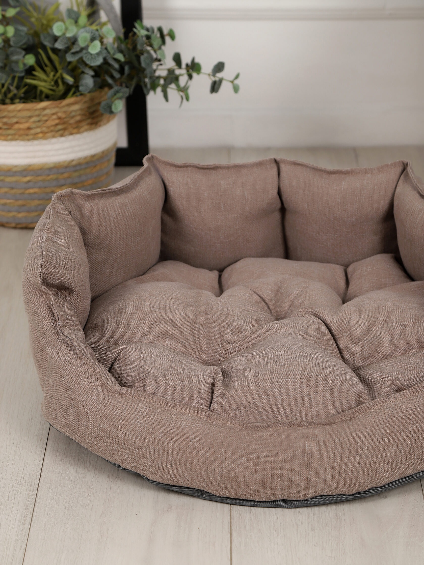 Подарите вашему питомцу максимальный комфорт с нашей уютной лежанкой с бортиками, идеально подходящей как для кошек, так и для собак. Лежанка - домик овальной формы с подстилкой изготовлена из рогожки - натуральной ткани с плотным плетением нитей. Внутренняя подушка, вытаскивается. Верх изготовлен из рогожки, гладкая приятная ткань, низ из ткани оксфорд с водоотталкивающей пропиткой. Лежанка обеспечивает идеальную поддержку для суставов вашего питомца, помогая предотвратить усталость. Идеальный размер лежанки 50х60 см легко разместить в любом уголке дома. По виду напоминает маленький диванчик. Кроватка подойдет не только для больших котов типа мейнкун, но и для собак мелких и средних пород - шпица, корги или чихуахуа. У неё высокие борта, которые животные могут использовать вместо подушек. Высокие, мягкие стенки создают ощущение защищённости вашего питомца. Собачья или кошачья кровать представляет собой удобное спальное место, которое можно брать с собой в машину. Однотонный мягкий лежак для кошек идеально подходит для сна и отдыха домашних питомцев. Можно стирать в машине, что делает уход за лежанкой простым и удобным.