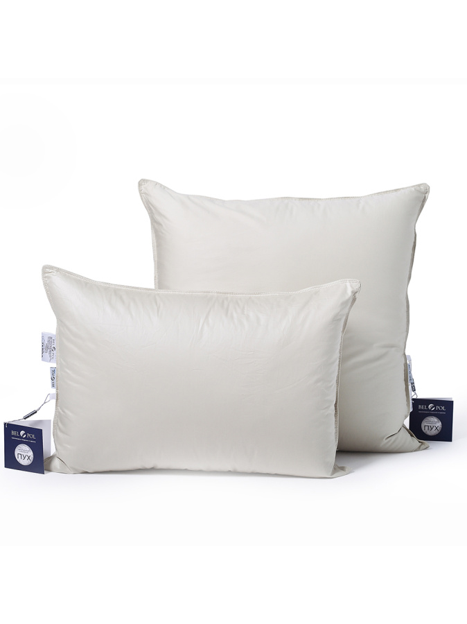 Внешние камеры наполнены мягким пухом, а внутренняя камера наполнена плотным пухо-перовым составом, благодаря чему подушка приобретает упругие свойства.