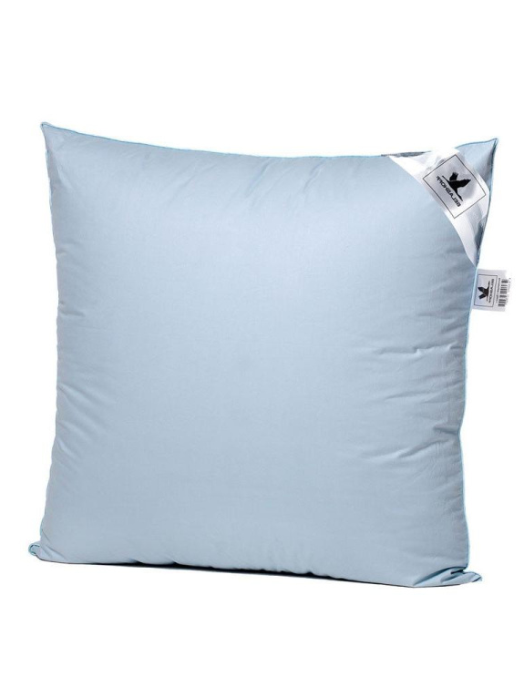 Наполнены серым гусиным пухом, легко взбиваются, не теряют объем. Выполнены в ткани тик (хлопок 100%) приглушенного голубого оттенка.