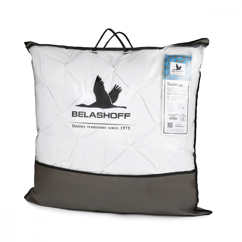 Коллекция «Бьянко» – это изделия из белого гусиного пуха в белом тике (100% хлопок). Первый вариант: одеяла и подушки с оригинальными буфами, напоминающими облачка. Буфы придают дополнительную пышность и мягкость изделиям. Второй вариант: более легкие подушки и одеяла в гладком классическом исполнении.