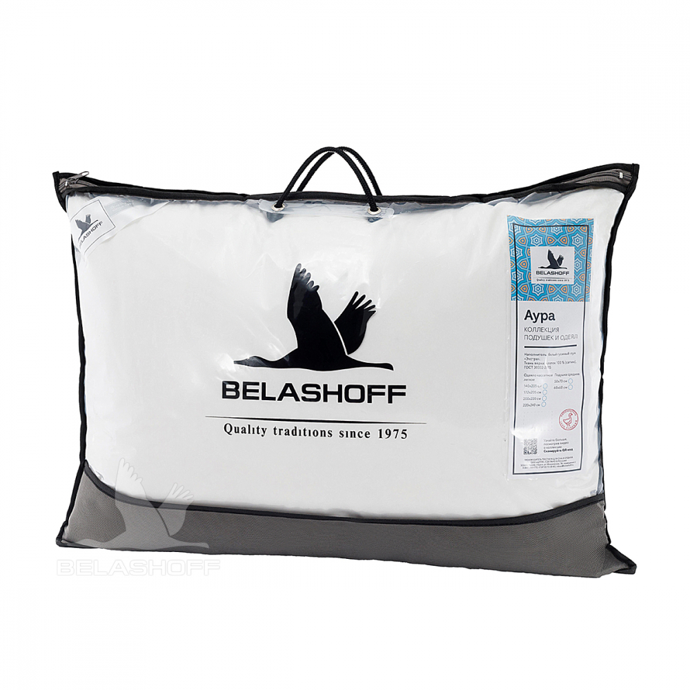Подушка из коллекции «Аура» создана из 100% белого гусиного пуха класса «Экстра». Пух "Экстра" всегда имеет белый цвет, это именно тот пух, который собирается с самой дорогой породы сибирского гуся. Замечено, что пух белого цвета лучше сохраняет и держит тепло. Мягкая, легкая подушка подойдет людям, предпочитающим невысокие подушки, и людям, которые любят спать на спине.