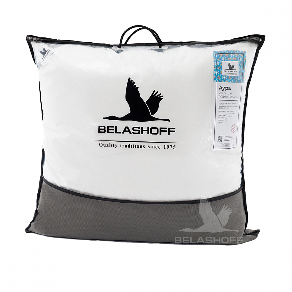 Коллекция «Аура» создана из 100% белого гусиного пуха класса «Экстра». Пух "Экстра" всегда имеет белый цвет, это именно тот пух, который собирается с самой дорогой породы сибирского гуся. Замечено, что пух белого цвета лучше сохраняет и держит тепло. Коллекция «Аура» из белого пуха в белоснежном гладком сатине из 100% хлопка, с элегантным черным атласным кантом, подчеркнет изысканную атмосферу Вашего сна.