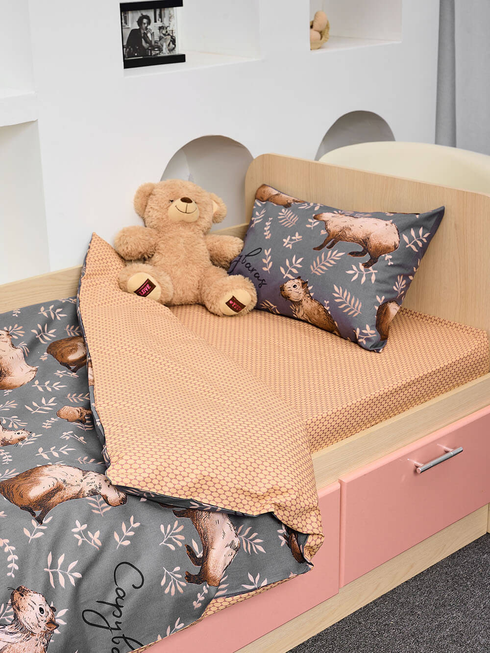 Постельное белье из поплина с ярким детским рисунком создаст уютную и дружелюбную атмосферу в детской спальне. Изготовленное из качественного поплина - это белье отличается мягкостью и прочностью, что гарантирует комфортный сон вашему малышу. В комплект входит простыня на резинке размером 80х160х20 см, идеально подходящая для детских кроваток.