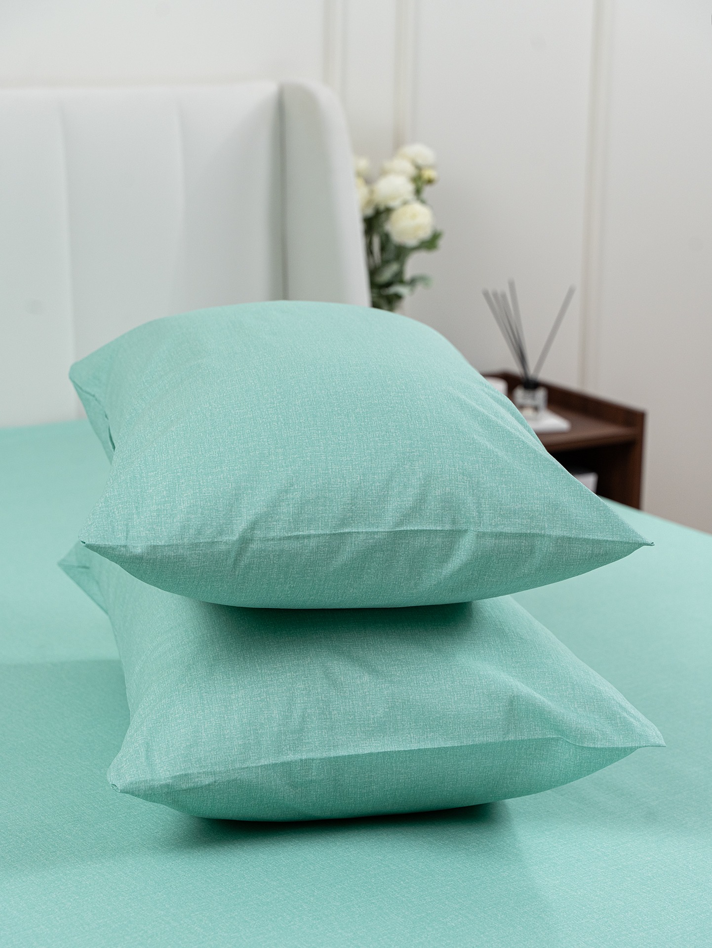 Однотонная простыня и наволочки 50х70 см на молнии - выбор для тех, кто любит минимализм в интерьере спальни. Мы подобрали универсальные цвета, которые отлично гармонируют между собой.